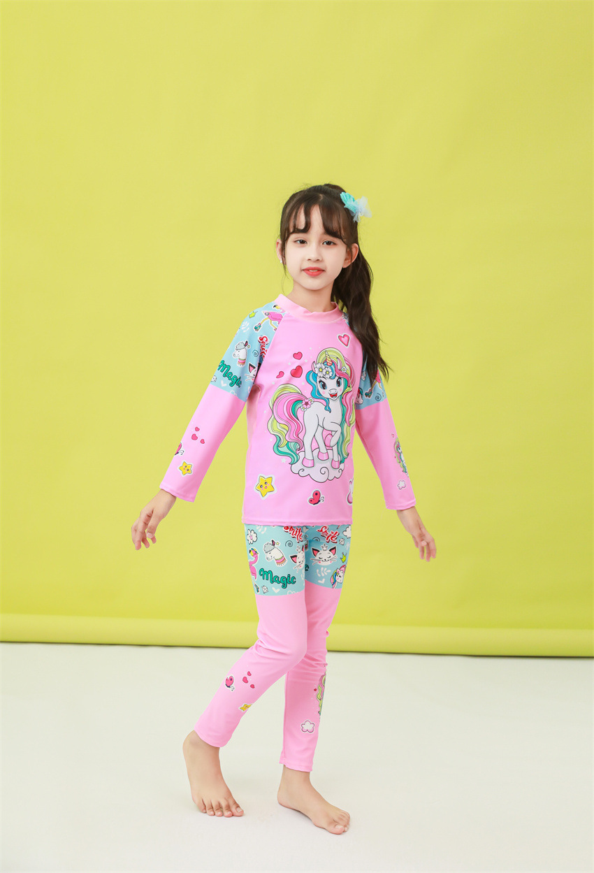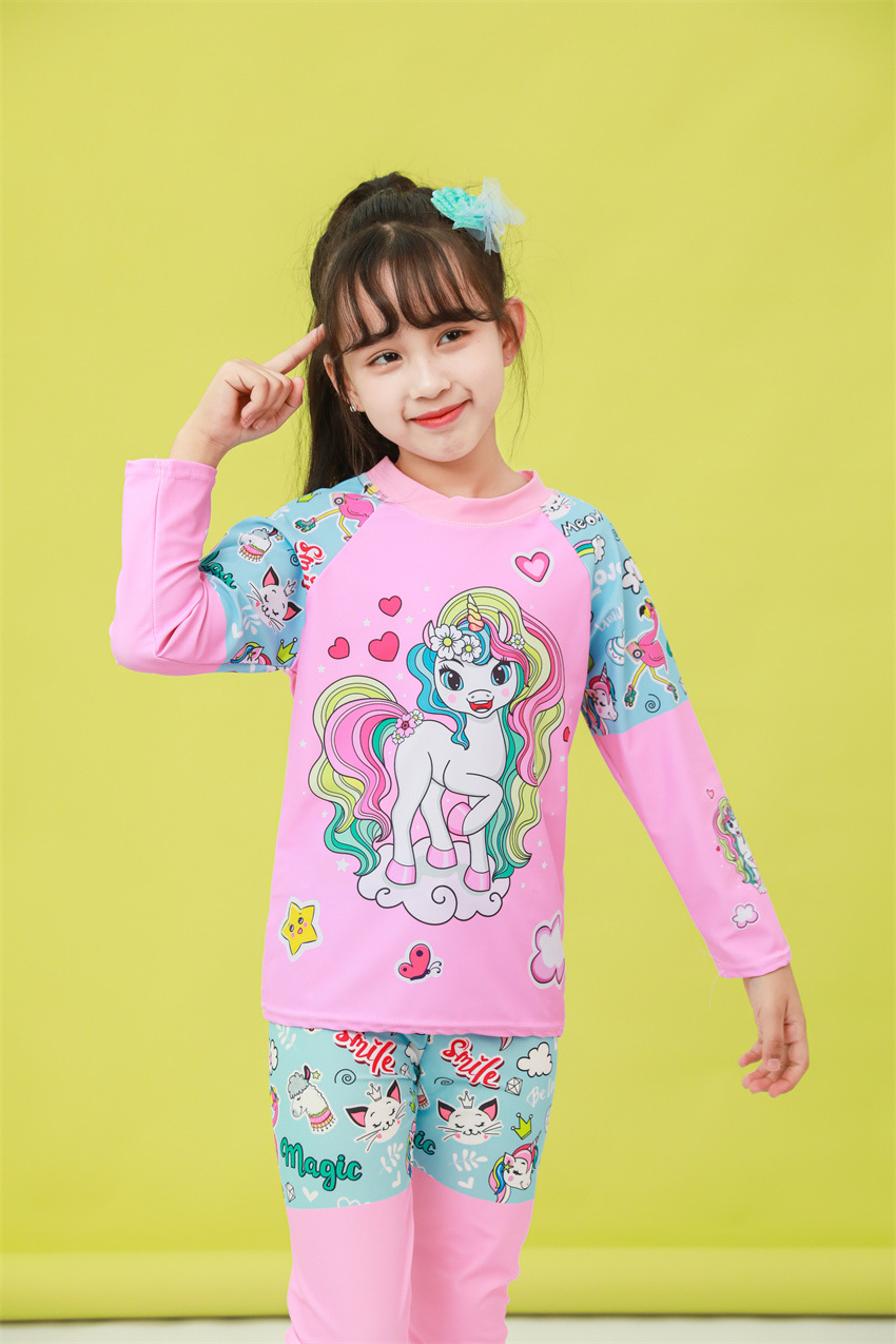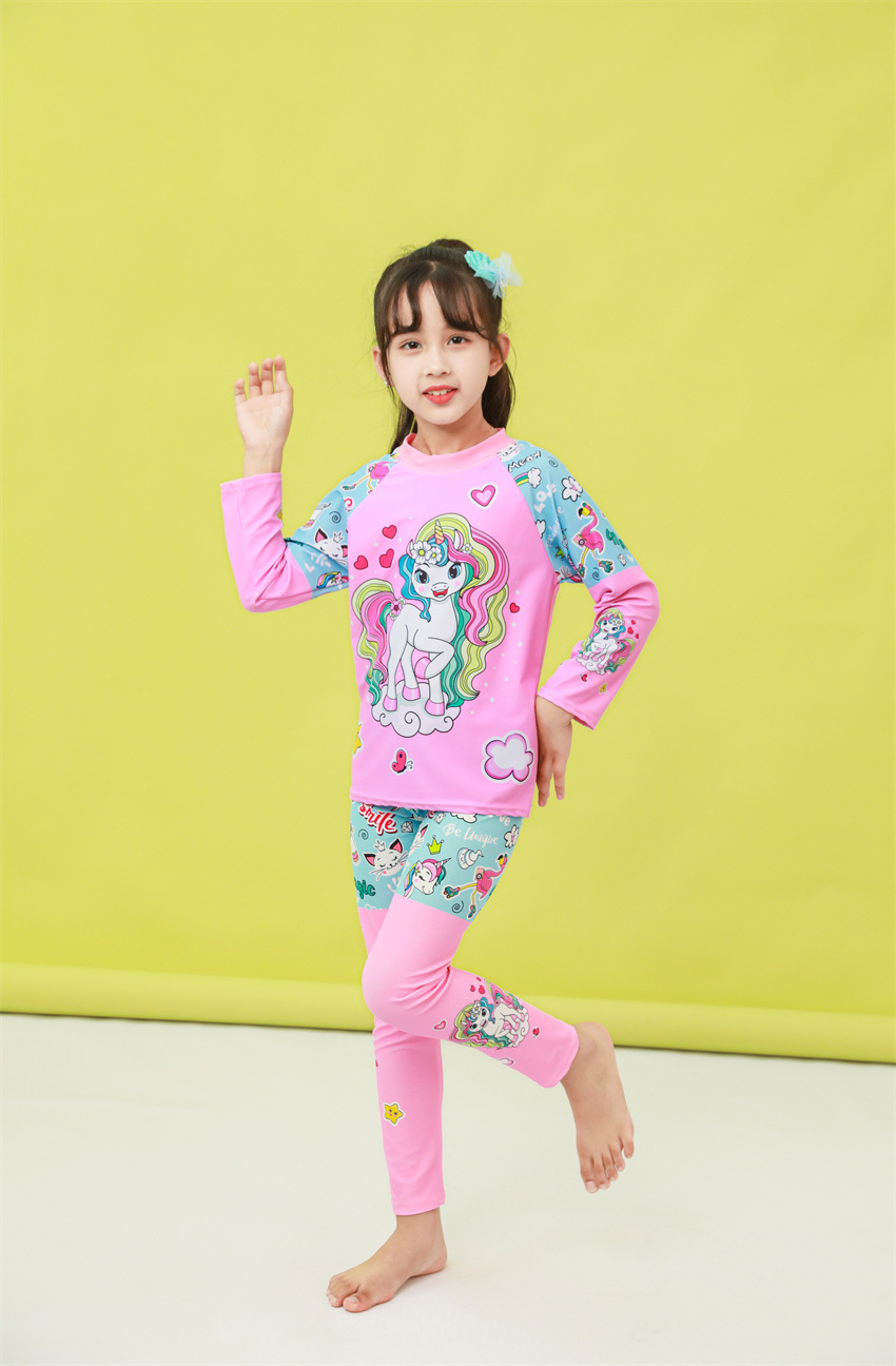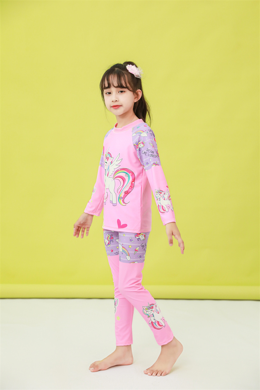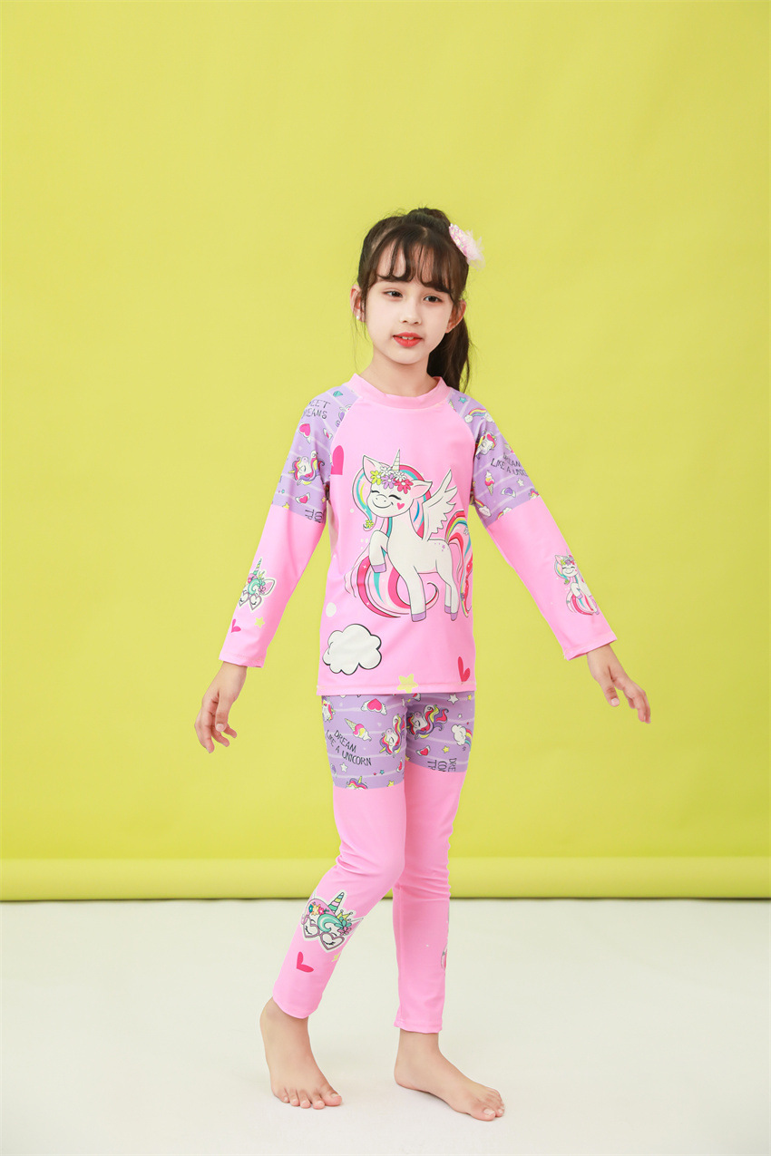 긴팔 아동 수영복 소녀 소형 큰 원피스 선 스크린 만화 수영 트렁크 학생 온천 속건 수영복 도매스토어 가기