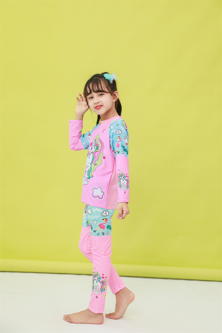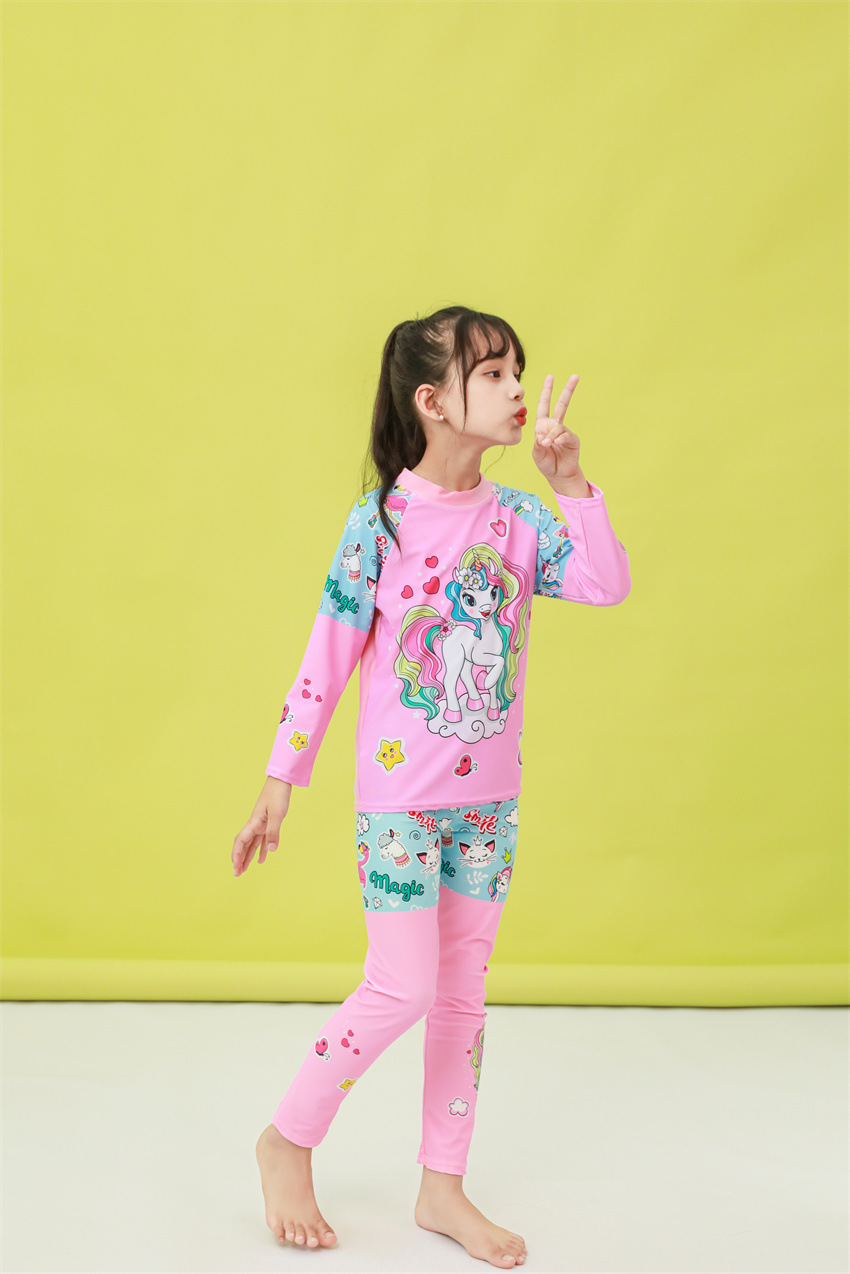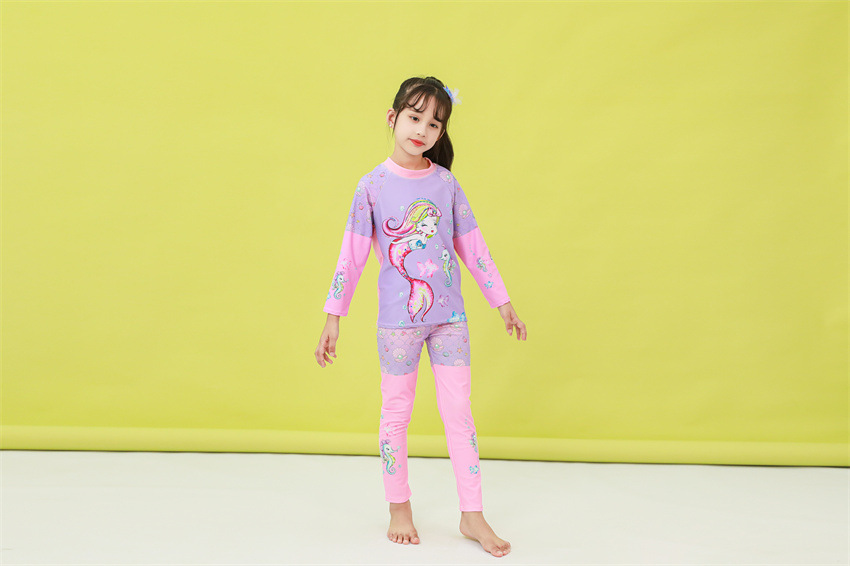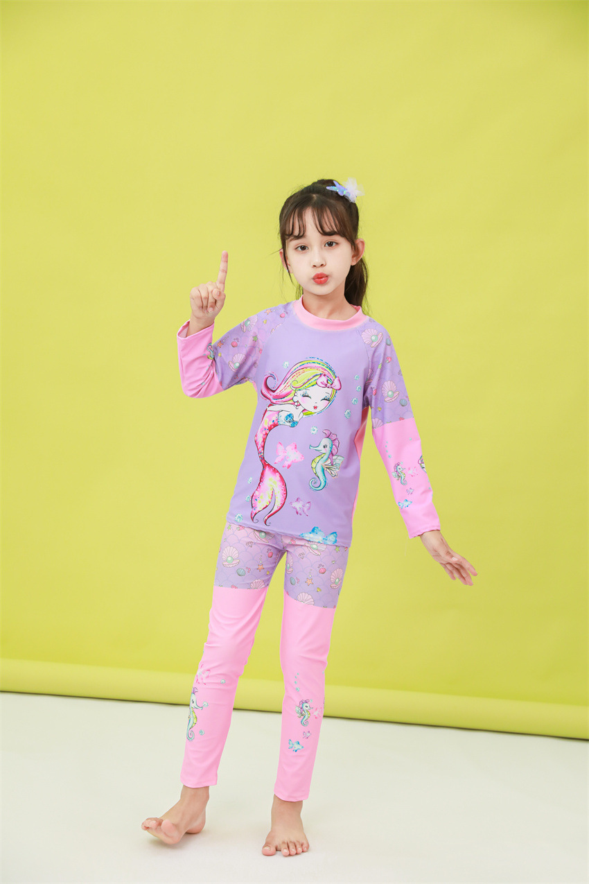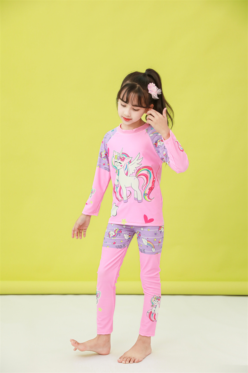 긴팔 아동 수영복 소녀 소형 큰 원피스 선 스크린 만화 수영 트렁크 학생 온천 속건 수영복 도매스토어 가기