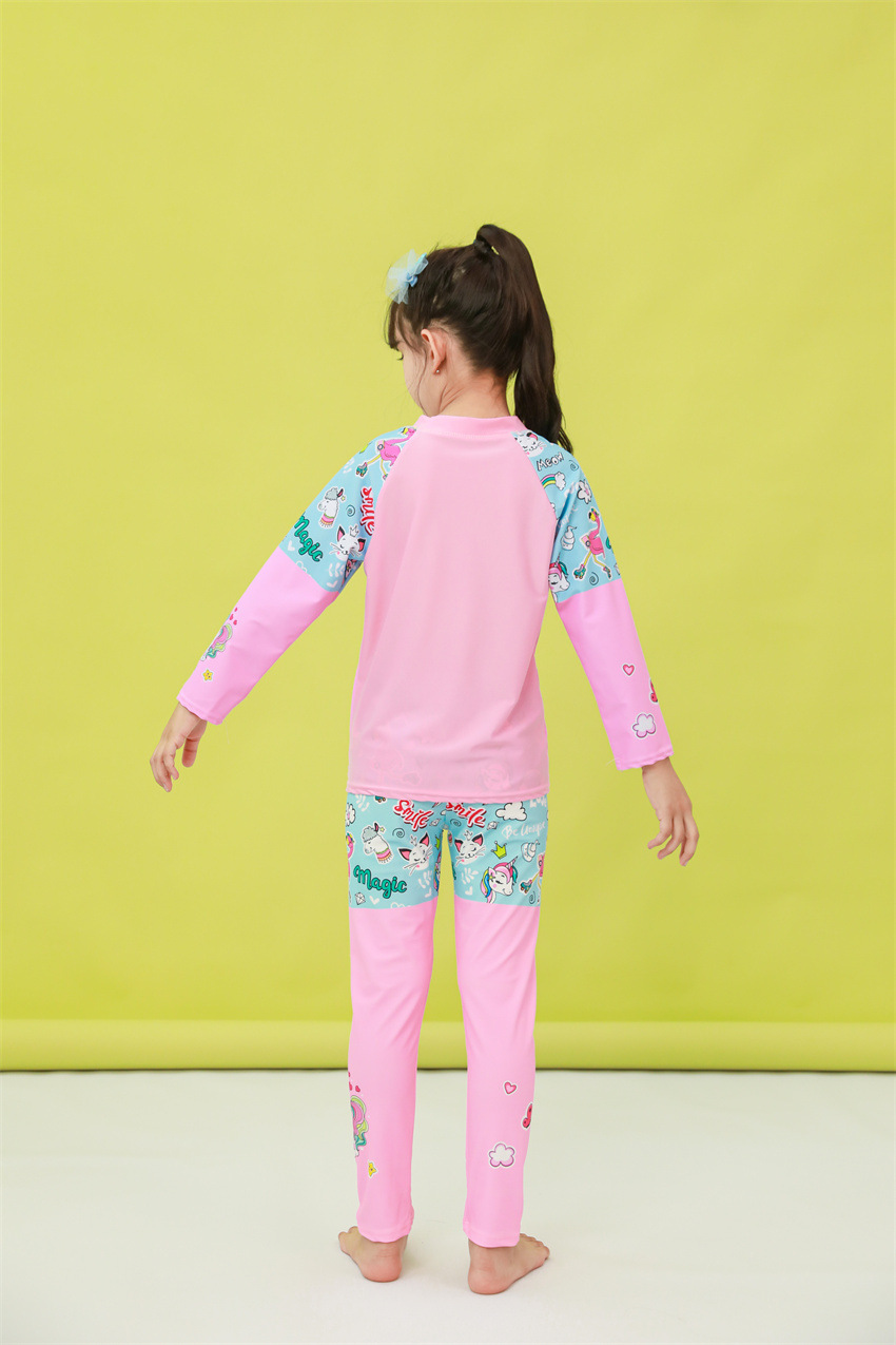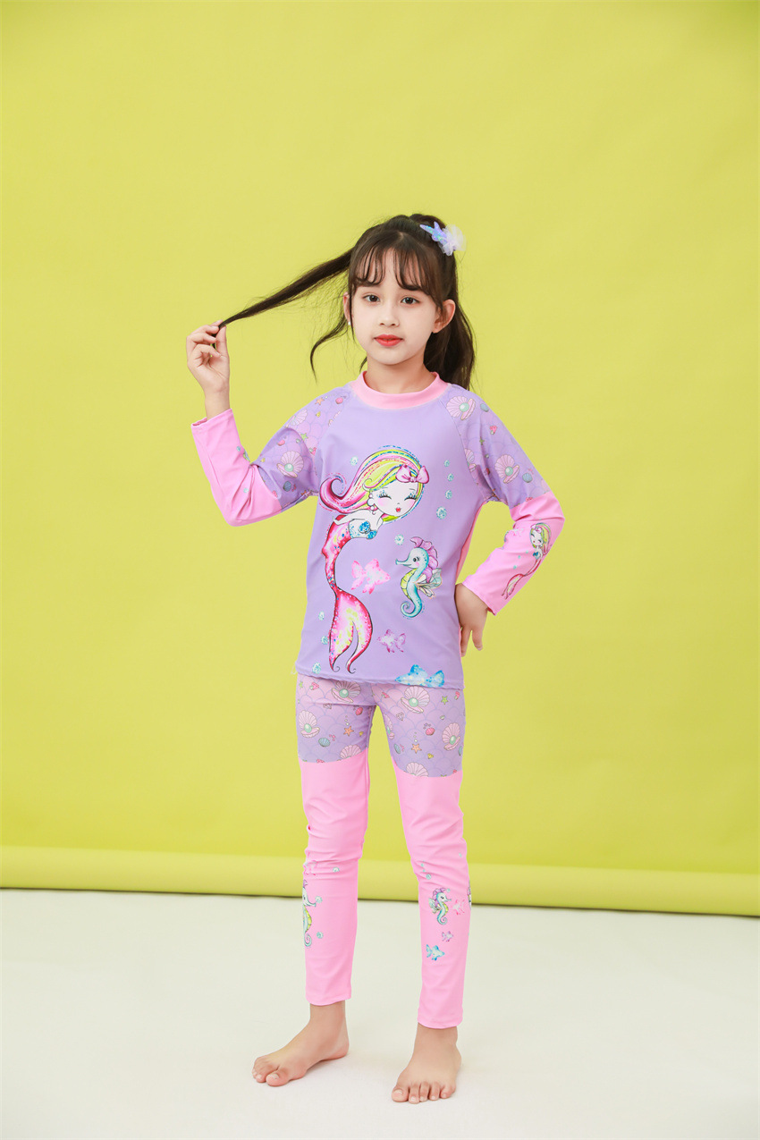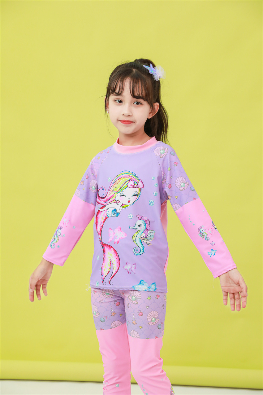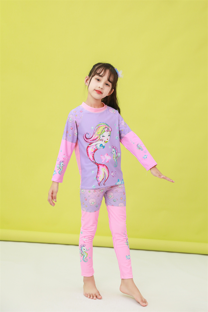 긴팔 아동 수영복 소녀 소형 큰 원피스 선 스크린 만화 수영 트렁크 학생 온천 속건 수영복 도매스토어 가기