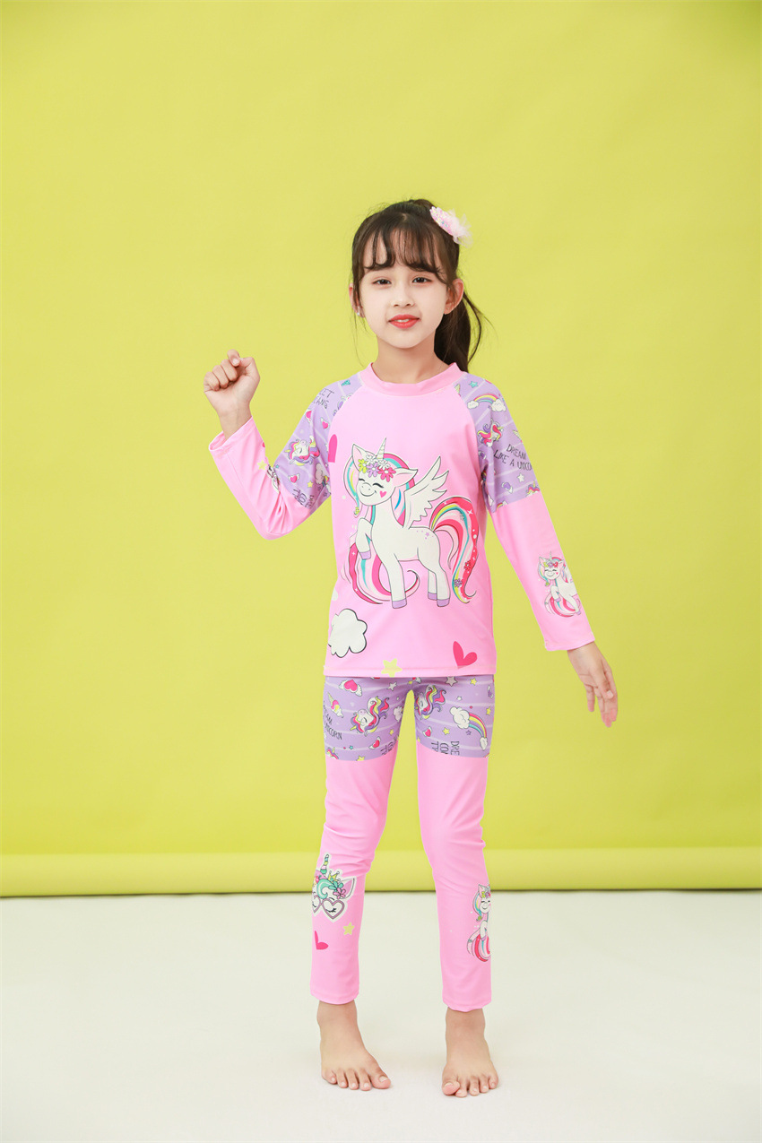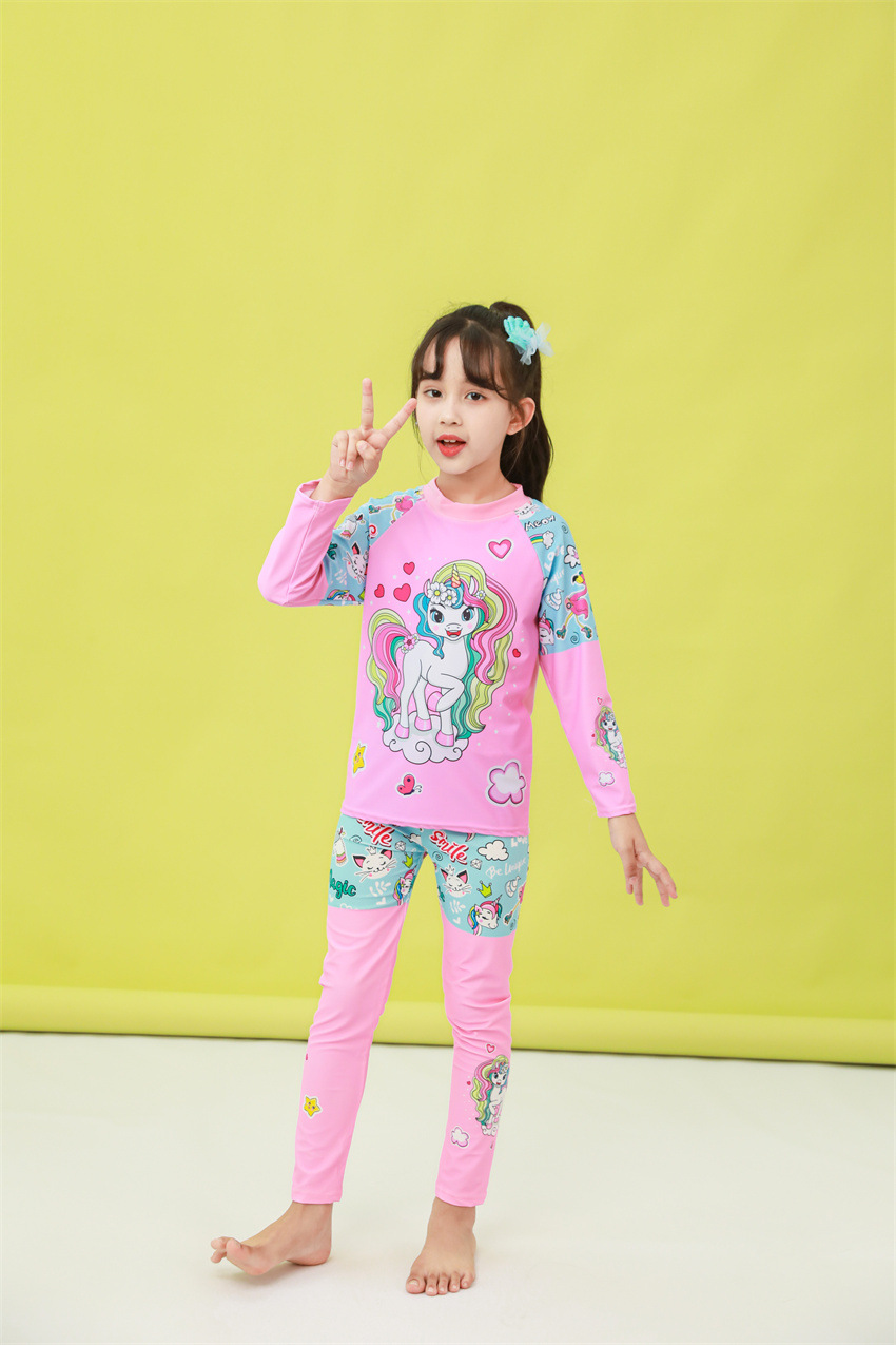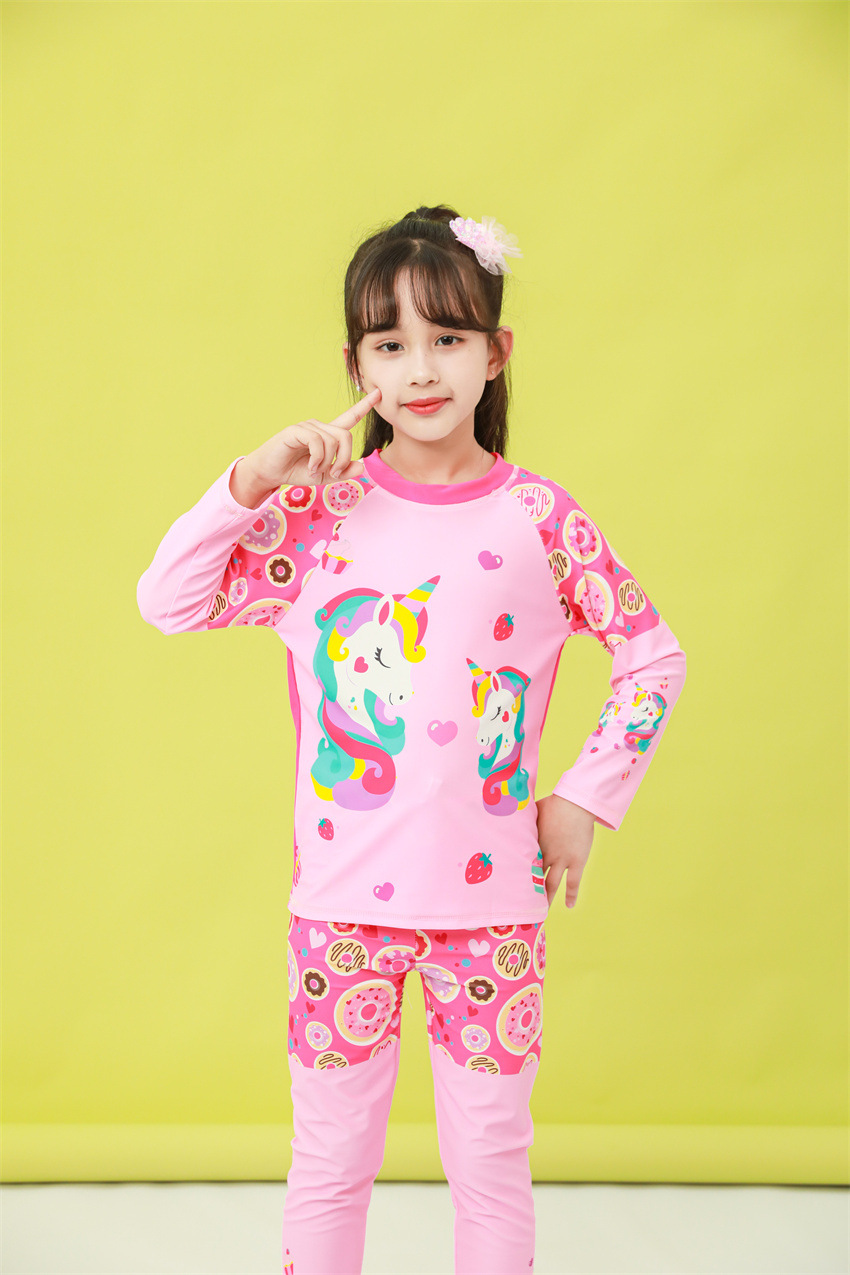 긴팔 아동 수영복 소녀 소형 큰 원피스 선 스크린 만화 수영 트렁크 학생 온천 속건 수영복 도매