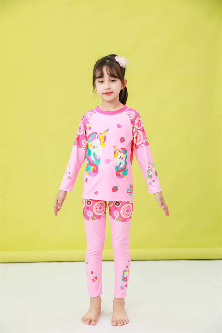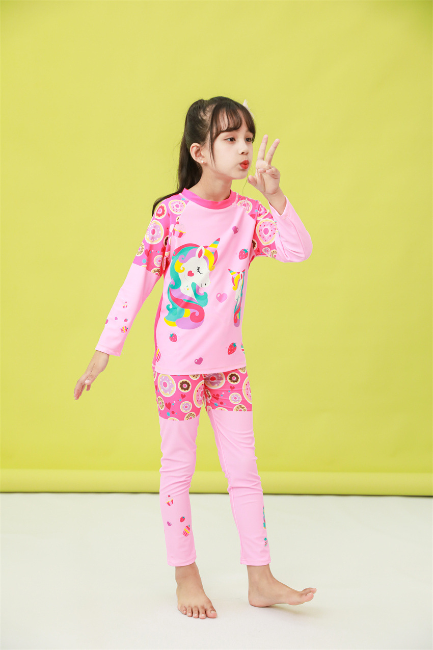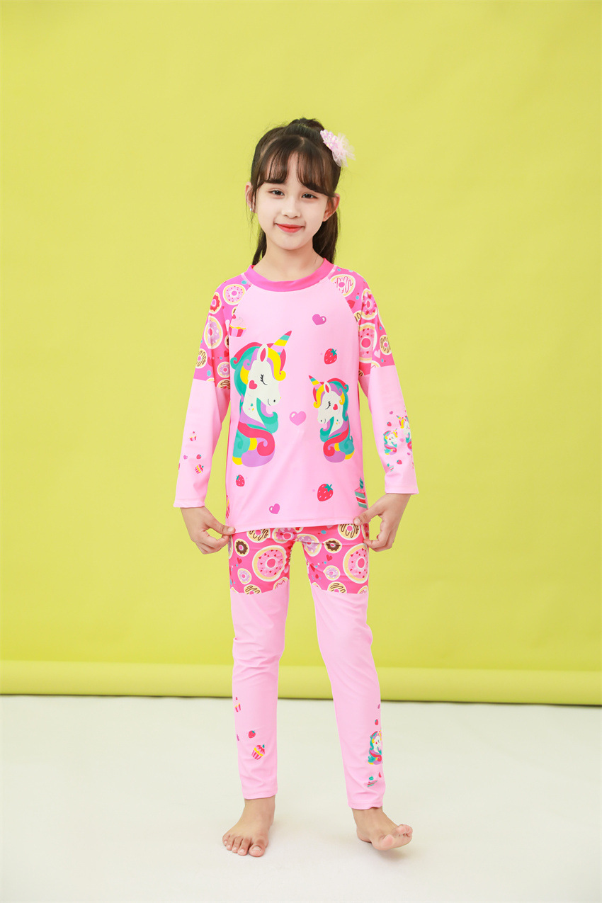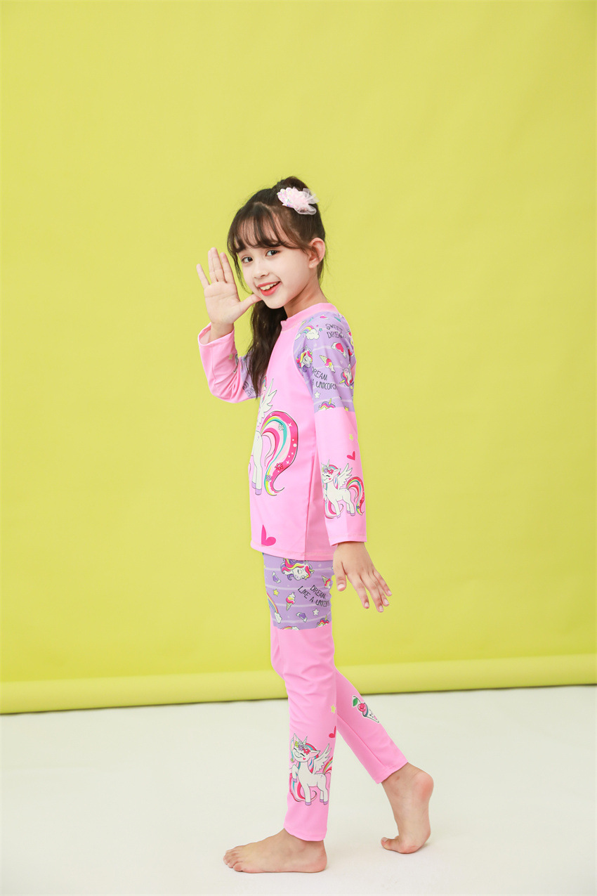 긴팔 아동 수영복 소녀 소형 큰 원피스 선 스크린 만화 수영 트렁크 학생 온천 속건 수영복 도매