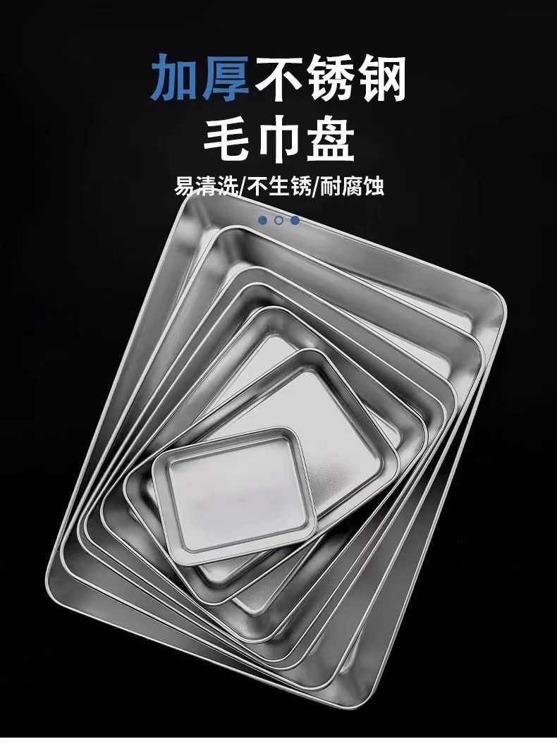 여분의 두꺼운 스테인레스 스틸 타월 트레이 비 자기 다중 사용 직사각형 트레이 스퀘어 트레이 플랫 바닥 트레이 스팀 트레이 베이킹 트레이스토어 가기
