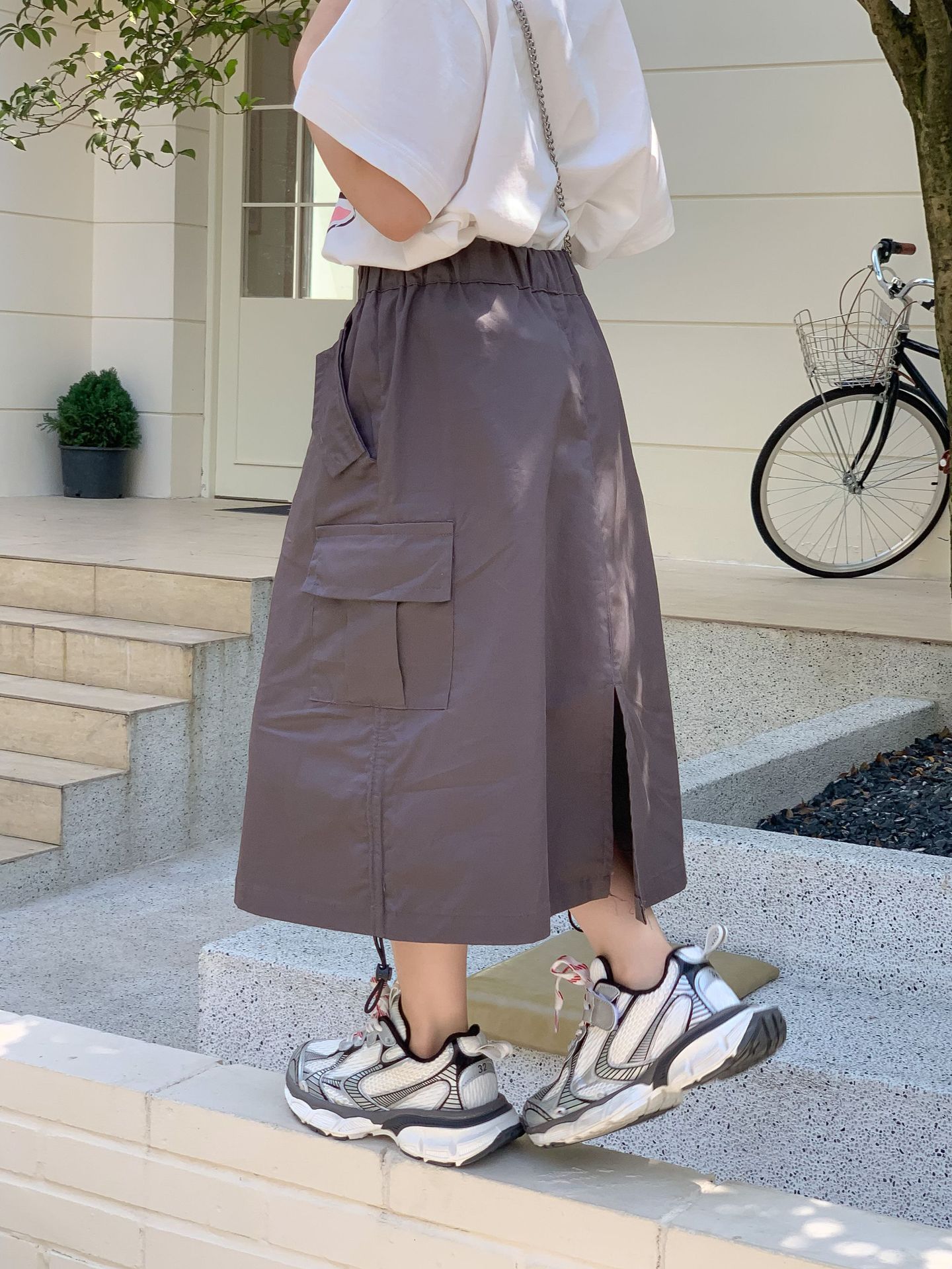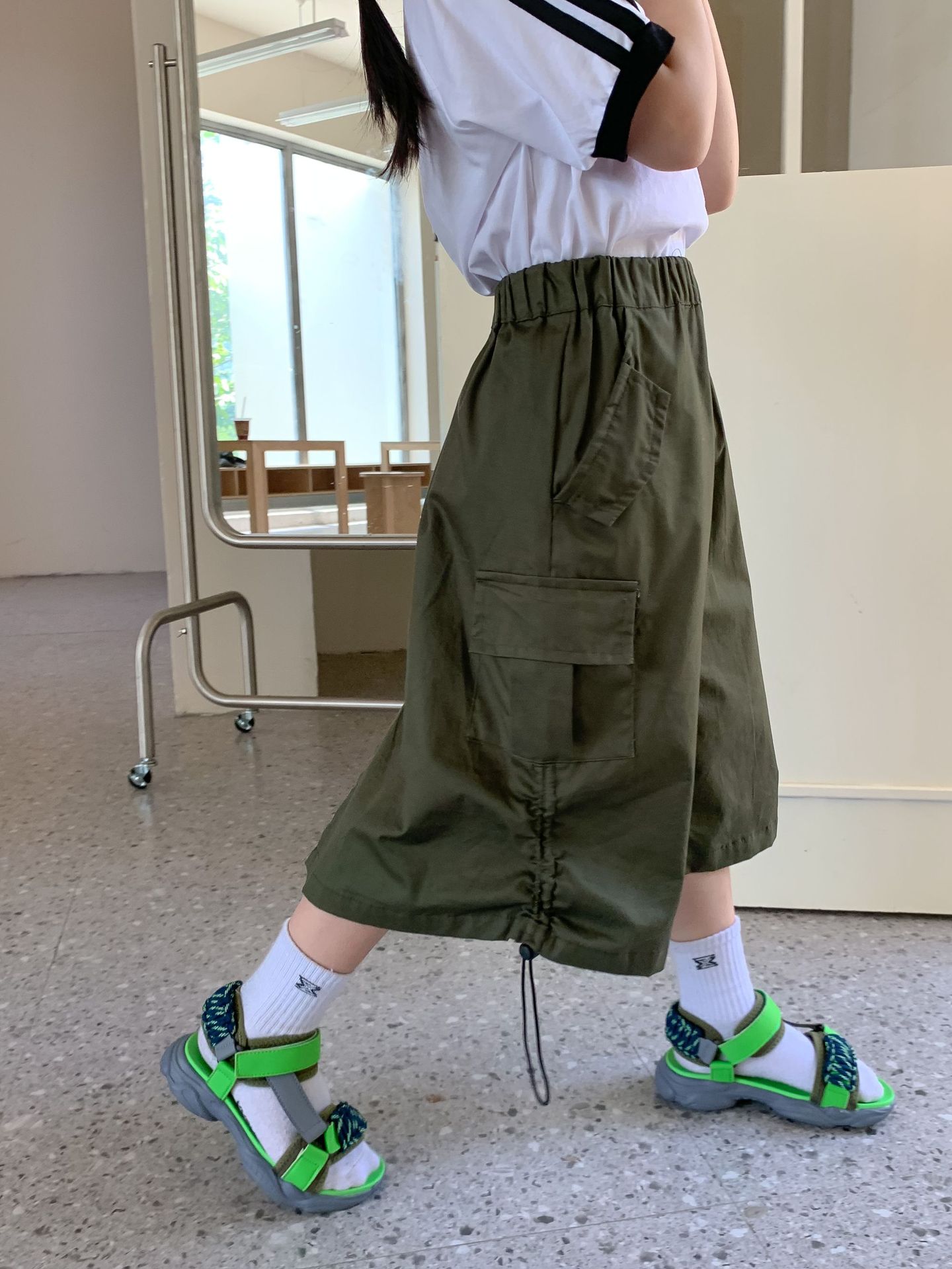 TCkids2024S 여름 여아 작업복 캠핑 스타일 육군 녹색 작업복 스커트
