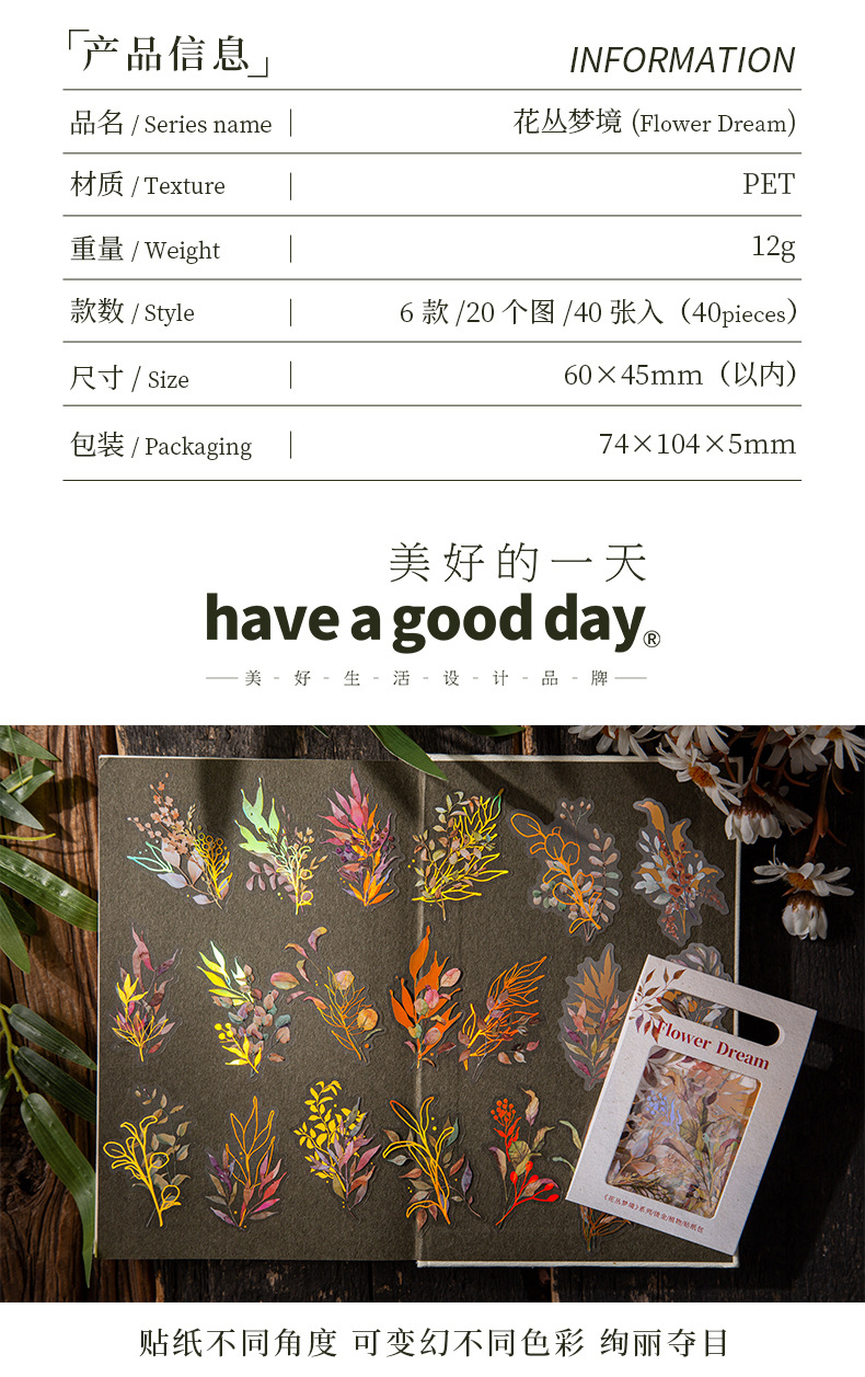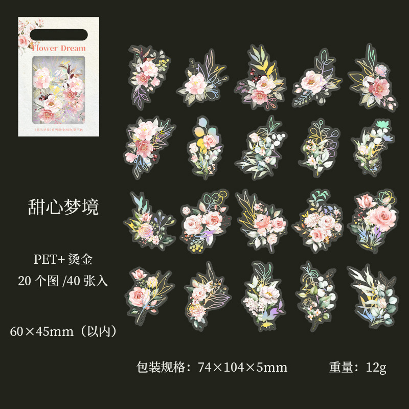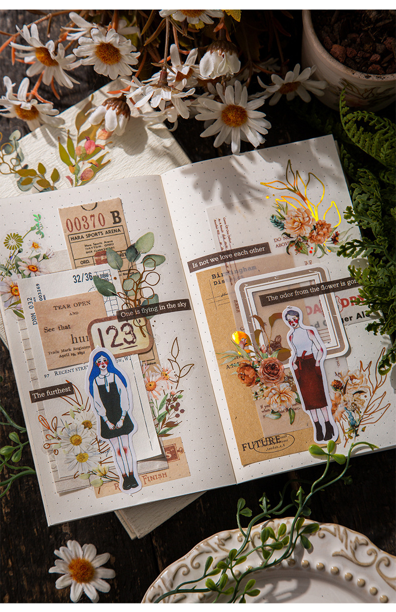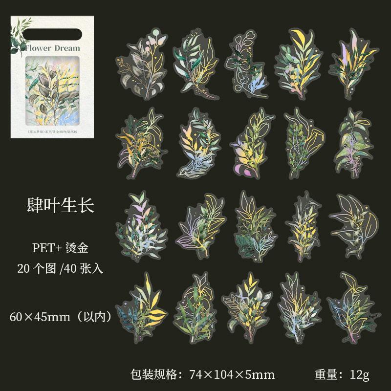아름다운 날 꽃 덤불 꿈 시리즈 스티커 복고풍 청동 식물 손 계정 재료 장식 스티커 40