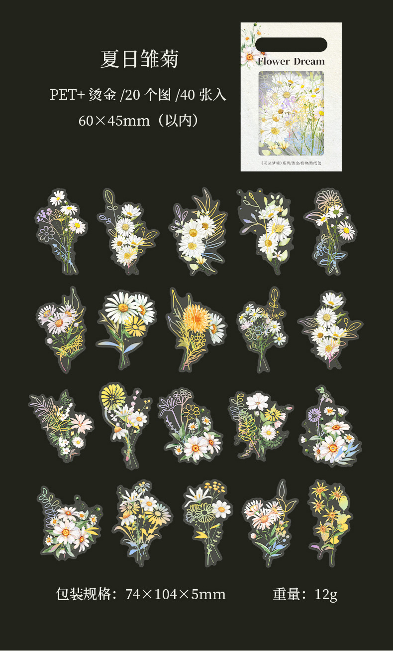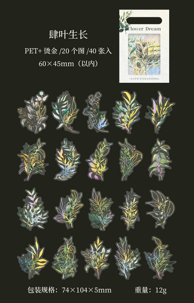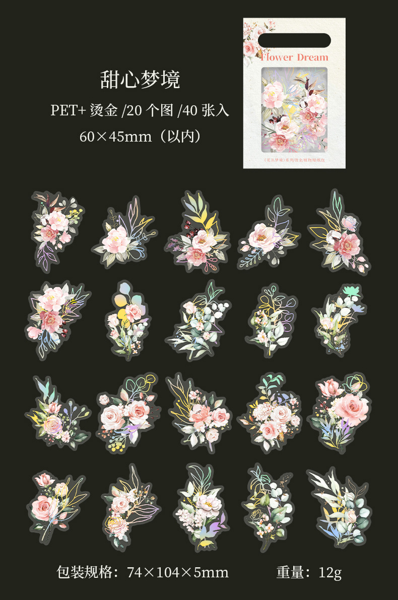 아름다운 날 꽃 덤불 꿈 시리즈 스티커 복고풍 청동 식물 손 계정 재료 장식 스티커 40