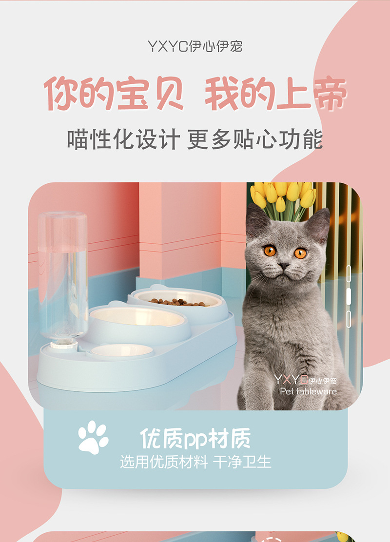 • 새로운 고양이 머리 세 그릇 플라스틱 그릇 핑크