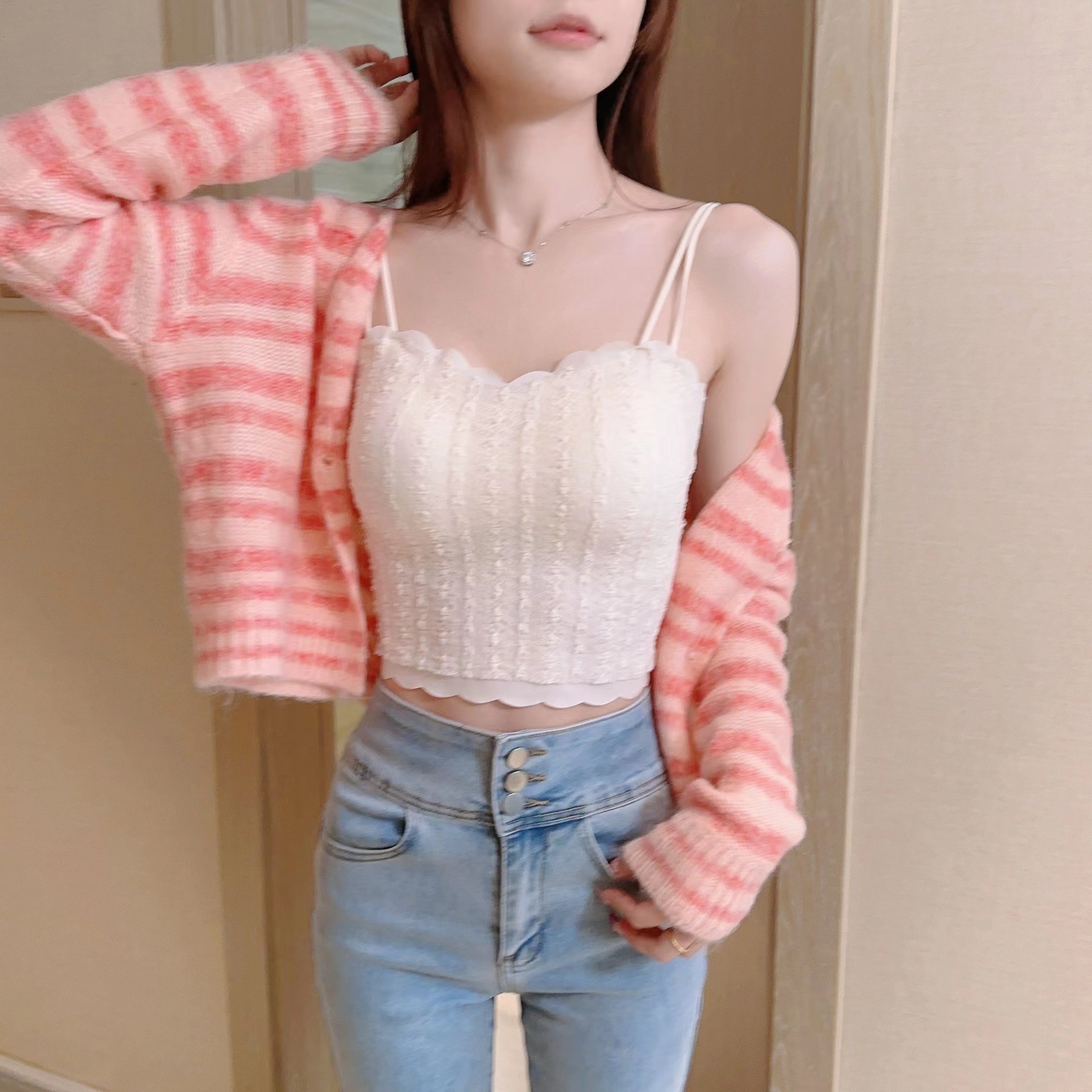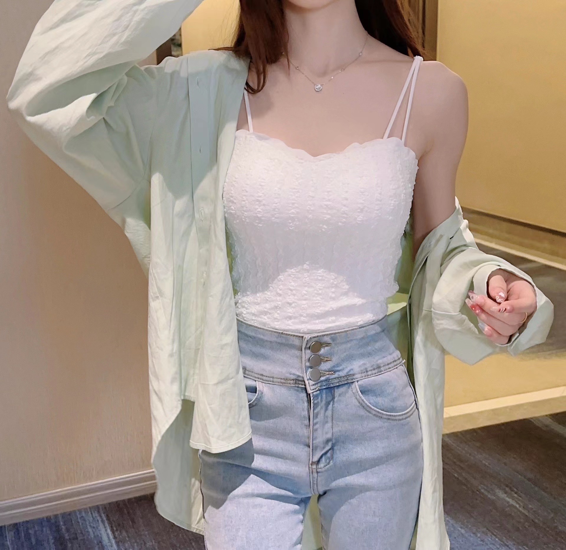 가슴 패드와 플러스 사이즈 여름 조끼 슬링 원피스 랩 가슴 아름다움 다시 속옷 베이스 화이트 원활한 레이스스토어 가기