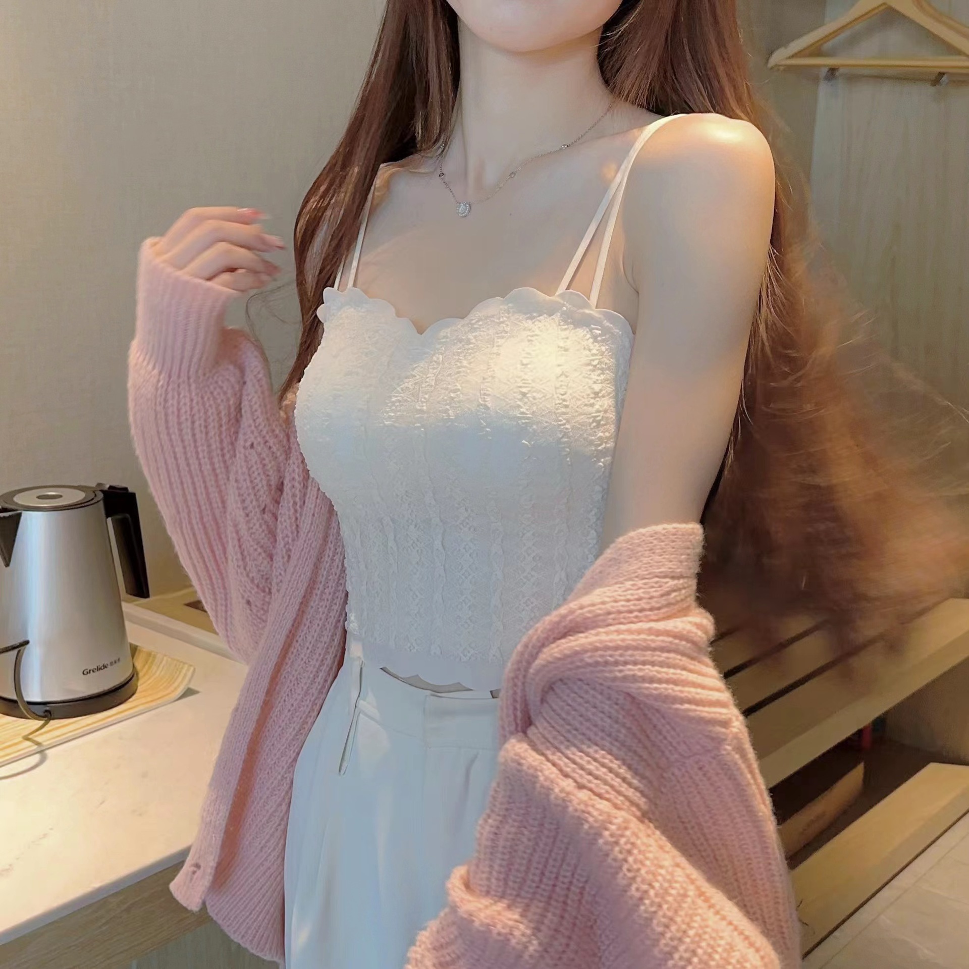 가슴 패드와 플러스 사이즈 여름 조끼 슬링 원피스 랩 가슴 아름다움 다시 속옷 베이스 화이트 원활한 레이스