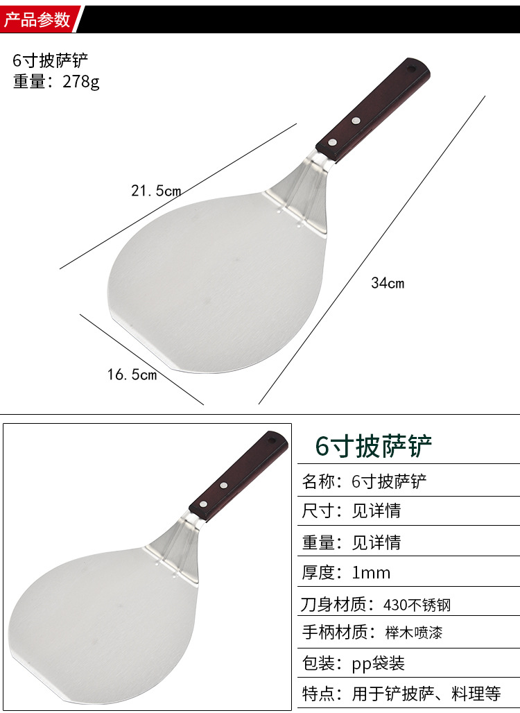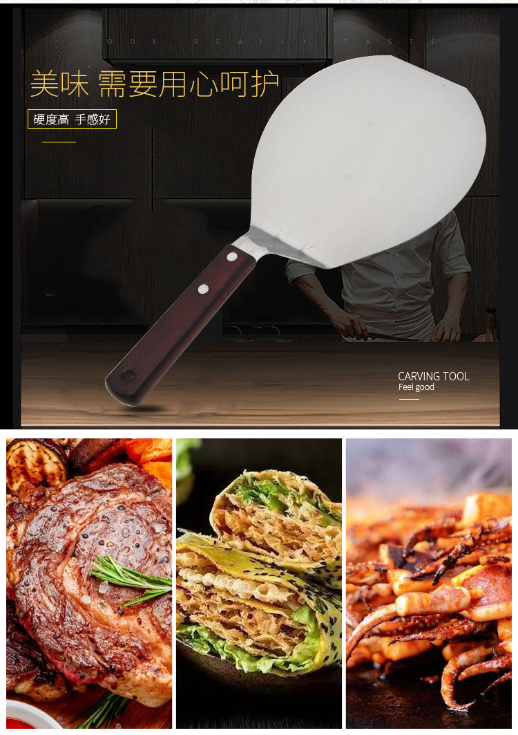 430 스테인리스 피자 주걱 대형 곡면 피자 스테이크 팬케이크 바베큐 플레이트 케이크 이동식 주걱 재고 있음