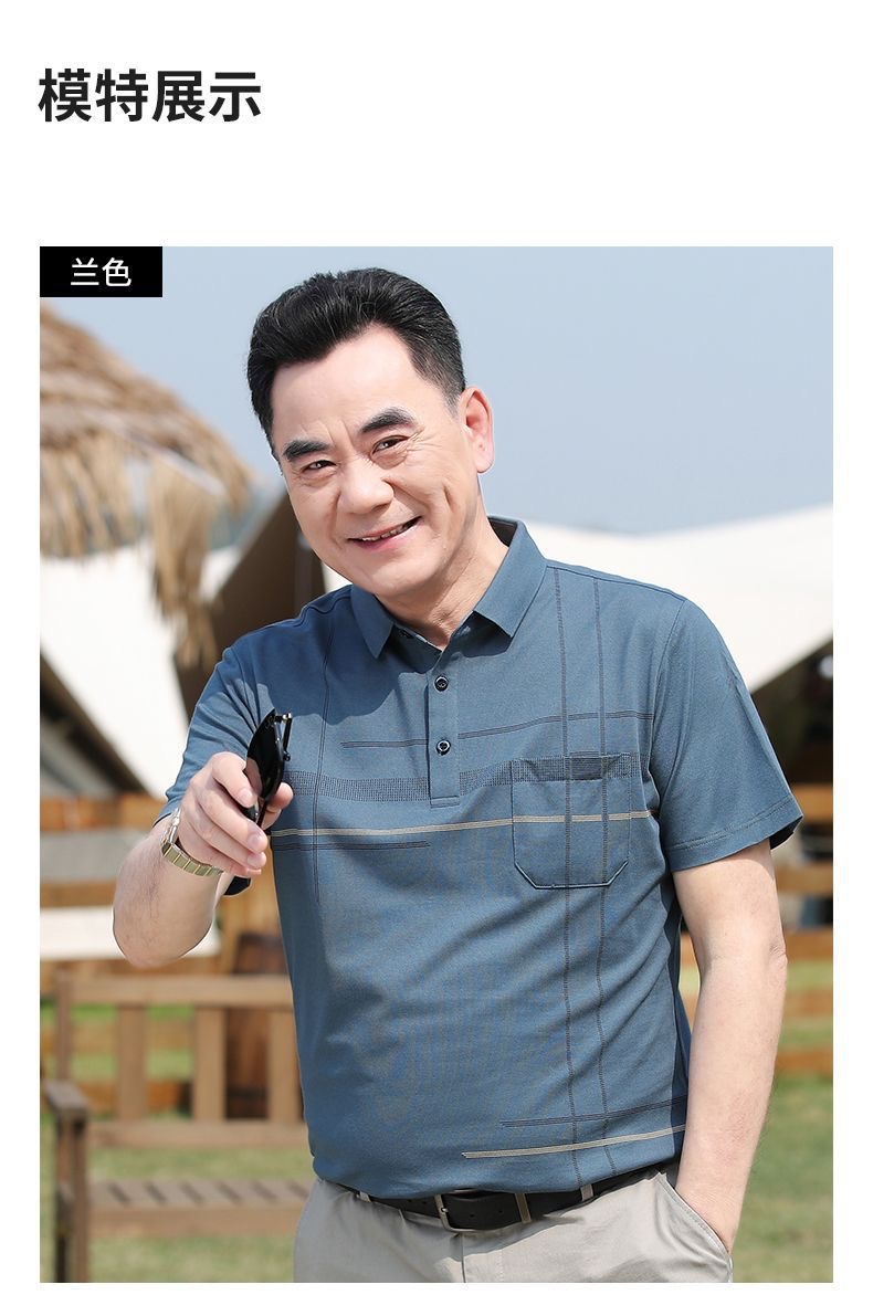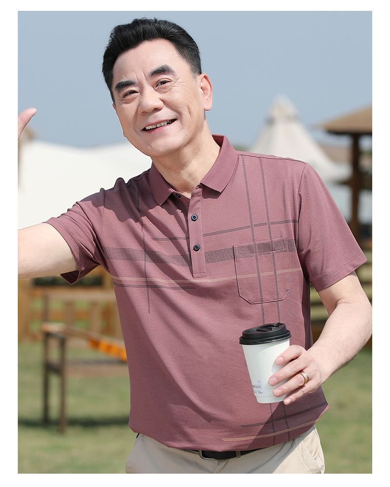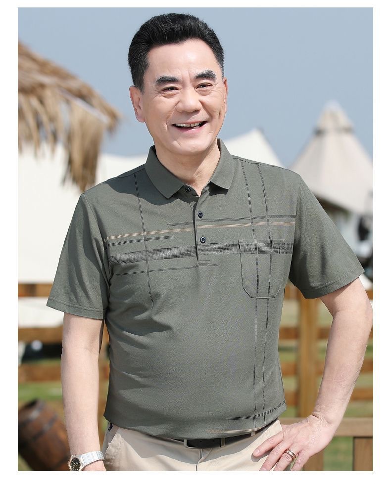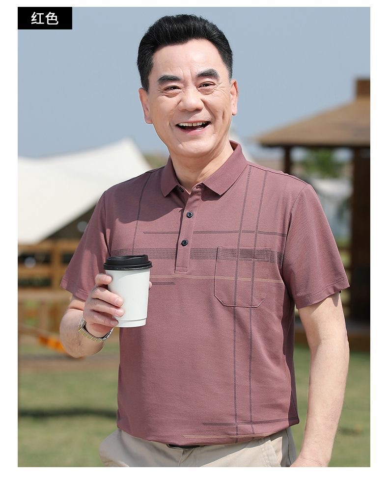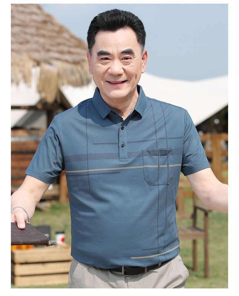 아빠의 여름 티셔츠 중년 남성용 반팔 티셔츠 머서화 코튼 라펠 탑 중년 및 노인 의류 할아버지 남성 의류스토어 가기