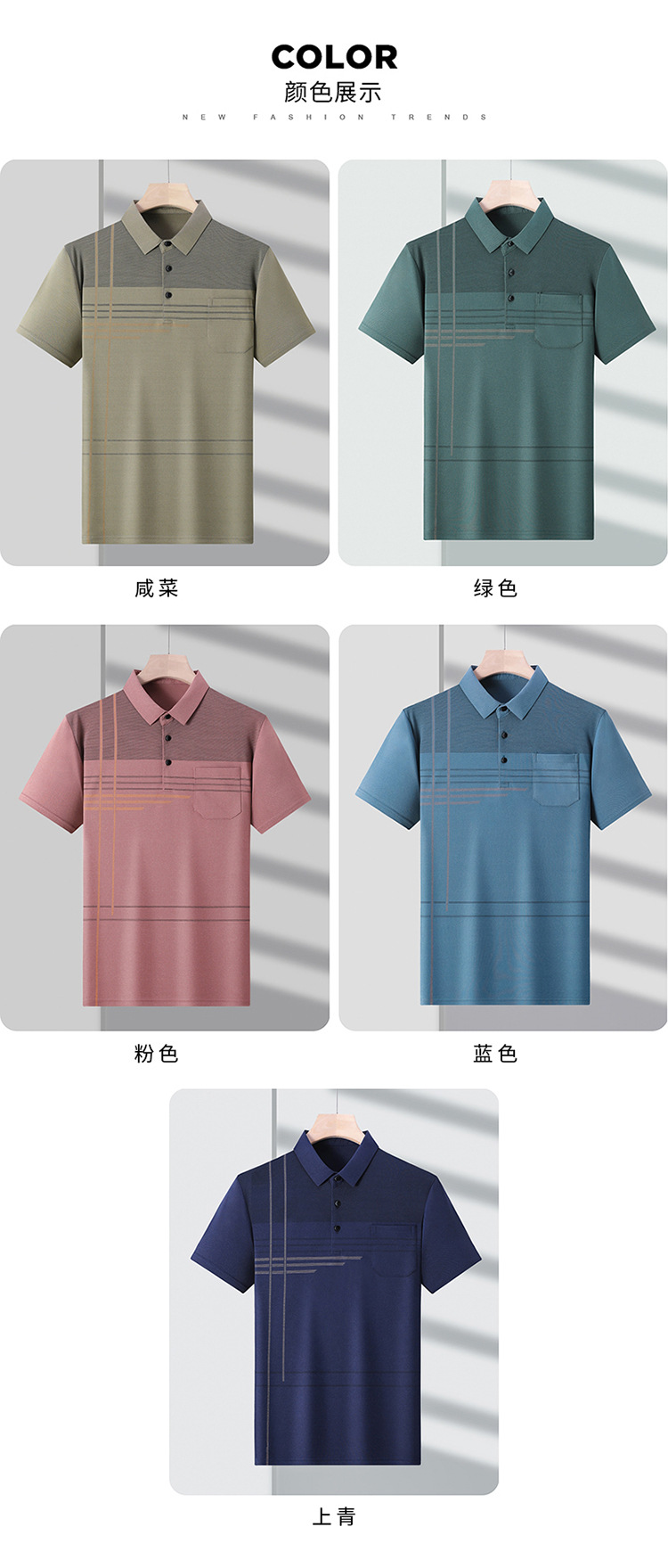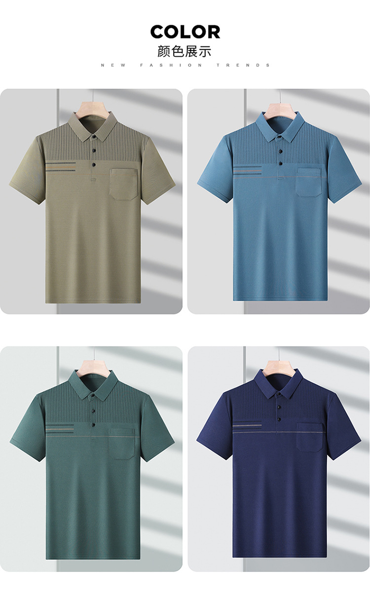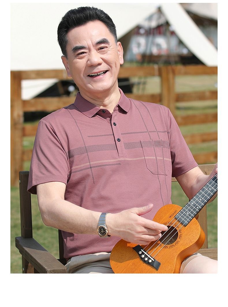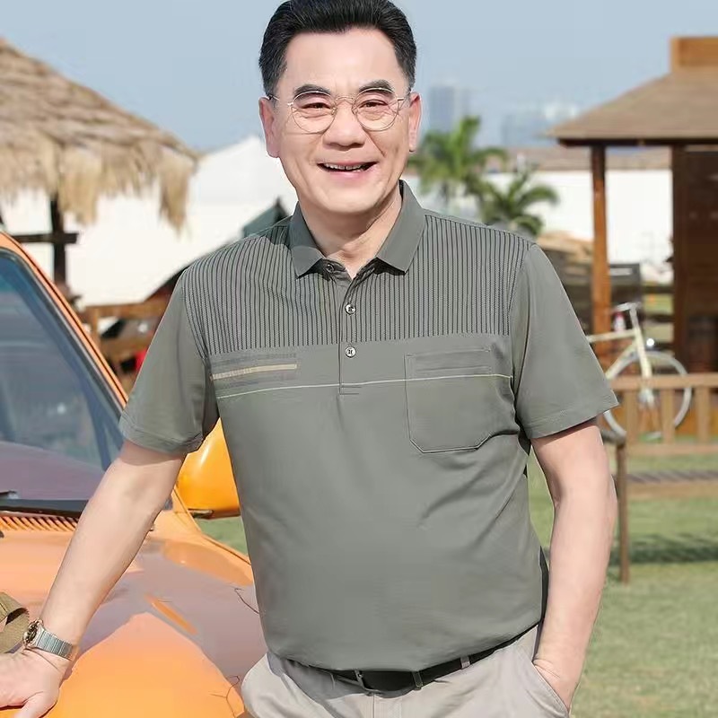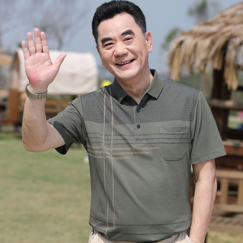 아빠의 여름 티셔츠 중년 남성용 반팔 티셔츠 머서화 코튼 라펠 탑 중년 및 노인 의류 할아버지 남성 의류스토어 가기