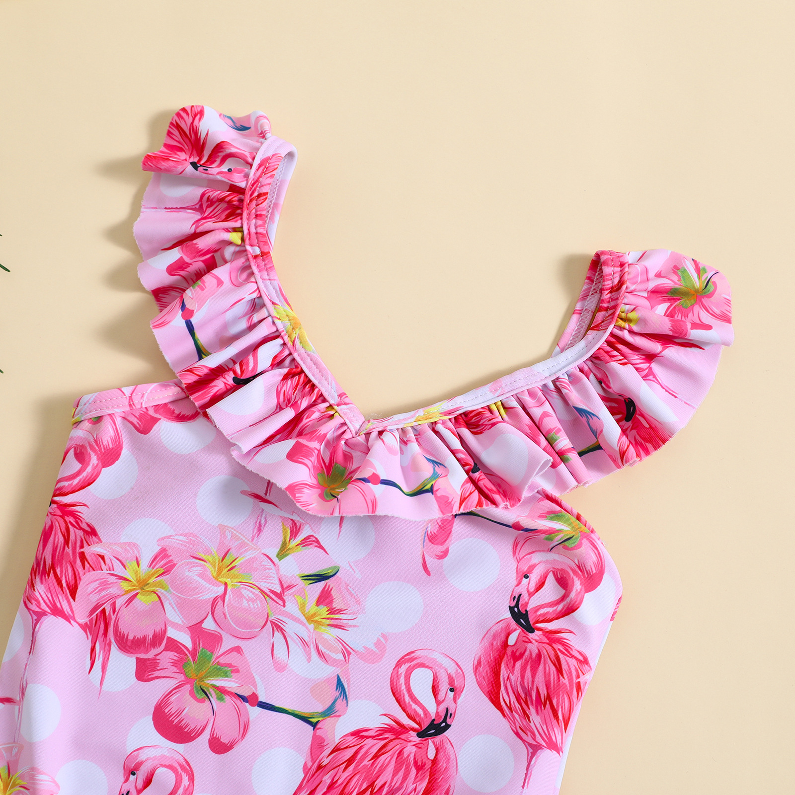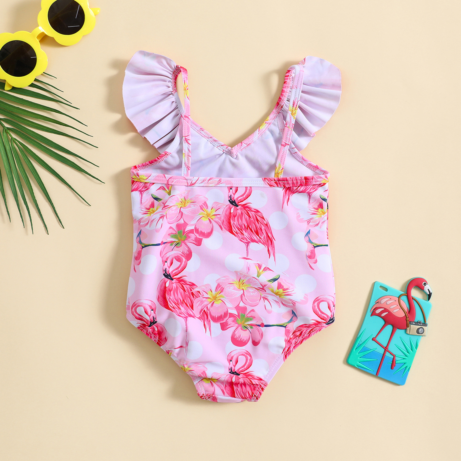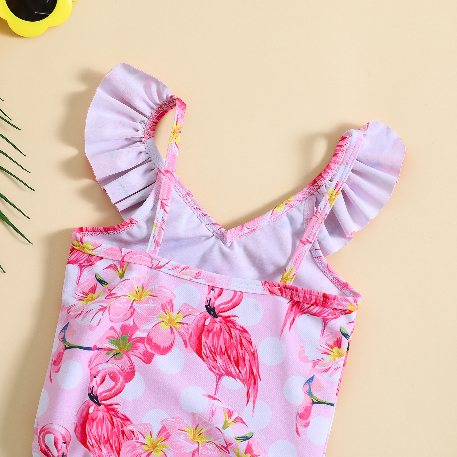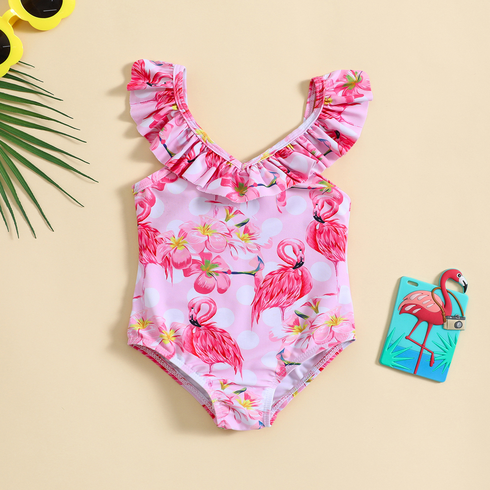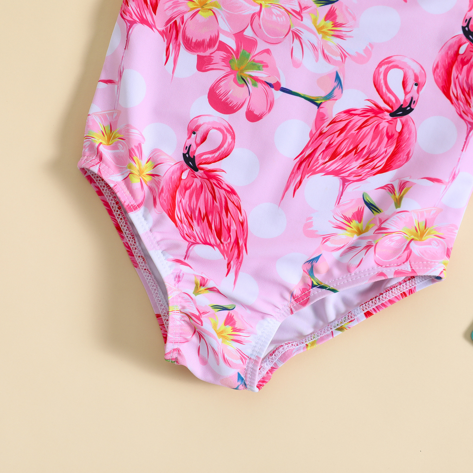 어린이 수영복 플라밍고 프린트 슬링 원피스 브이넥 원피스 귀여운 여아 온천 비치 수영복