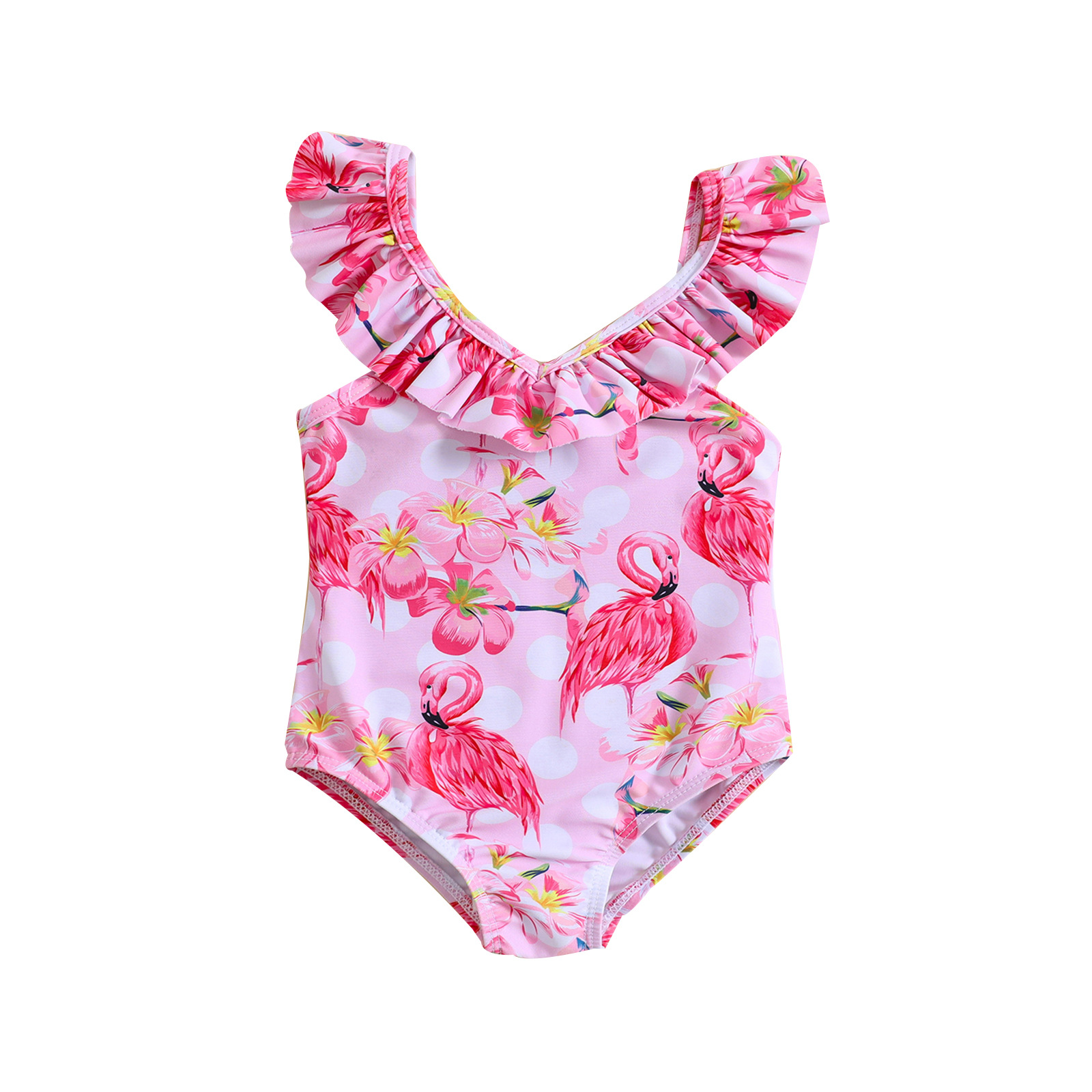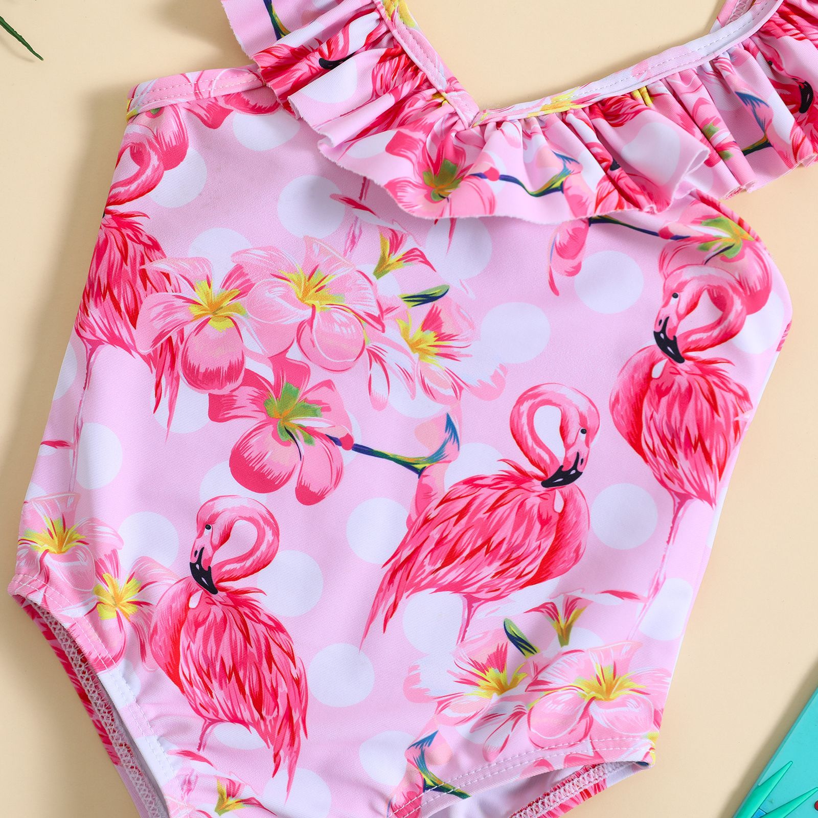 어린이 수영복 플라밍고 프린트 슬링 원피스 브이넥 원피스 귀여운 여아 온천 비치 수영복스토어 가기