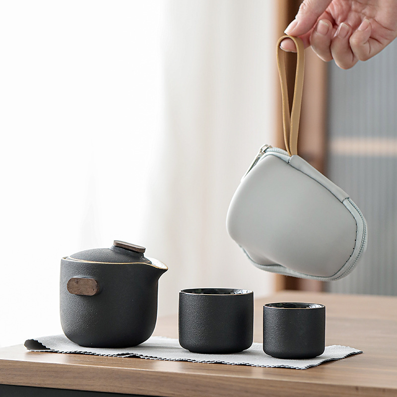 동반 선물 한 냄비 두 컵 익스프레스 컵 여행 쿵푸 차 세트 야외 휴대용 세라믹 차 컵 인쇄 로고