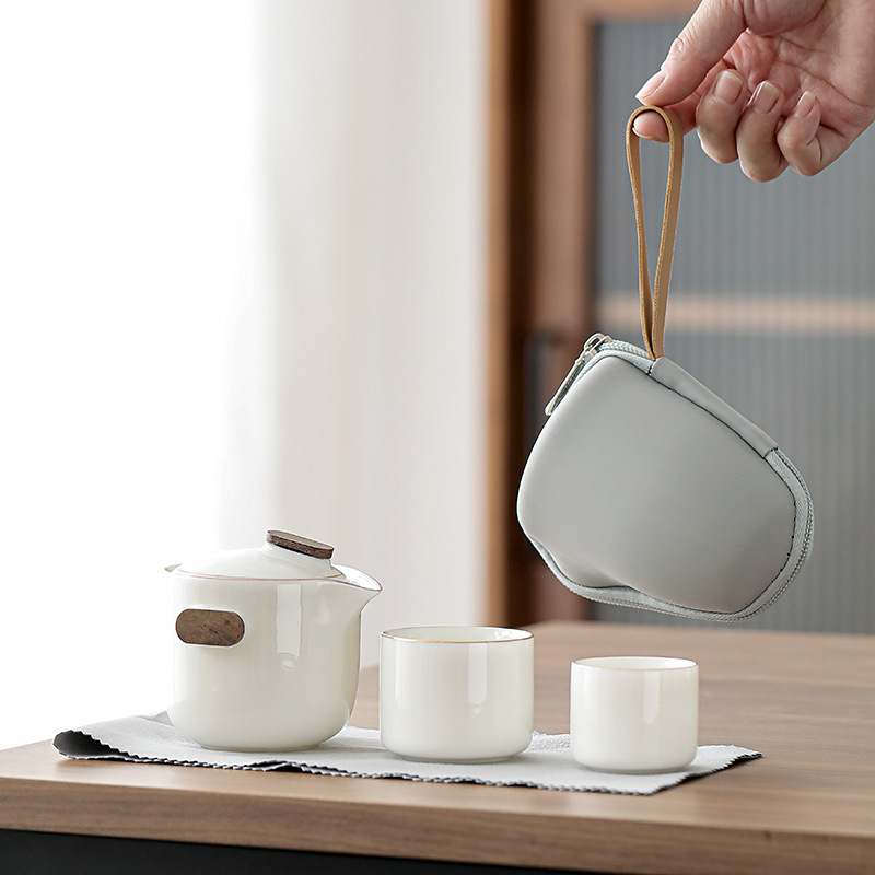 동반 선물 한 냄비 두 컵 익스프레스 컵 여행 쿵푸 차 세트 야외 휴대용 세라믹 차 컵 인쇄 로고스토어 가기