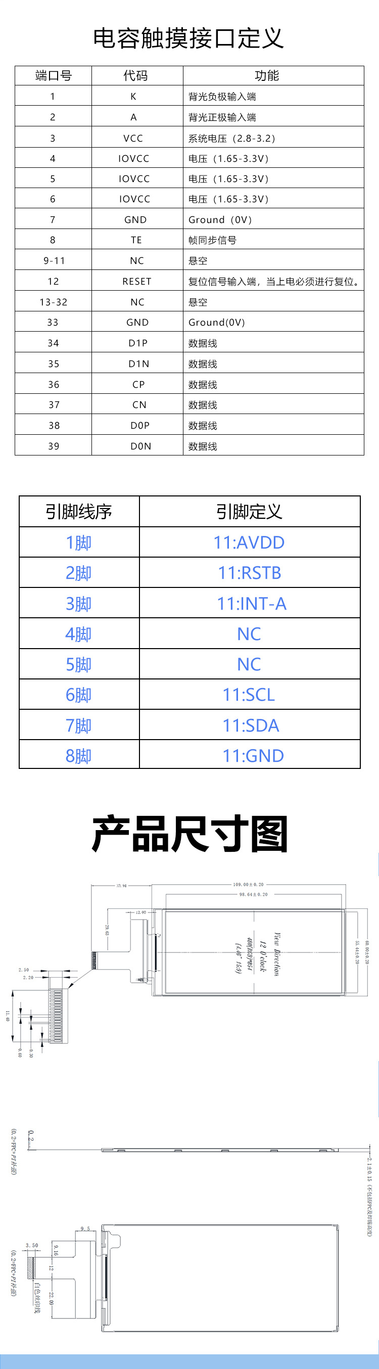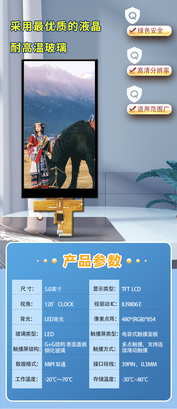 5.0 인치 TFT LCD 화면 LCD 디스플레이 IPS 화면 MIPI 듀얼 채널 480*854 용량 성 터치 스크린 GT911스토어 가기