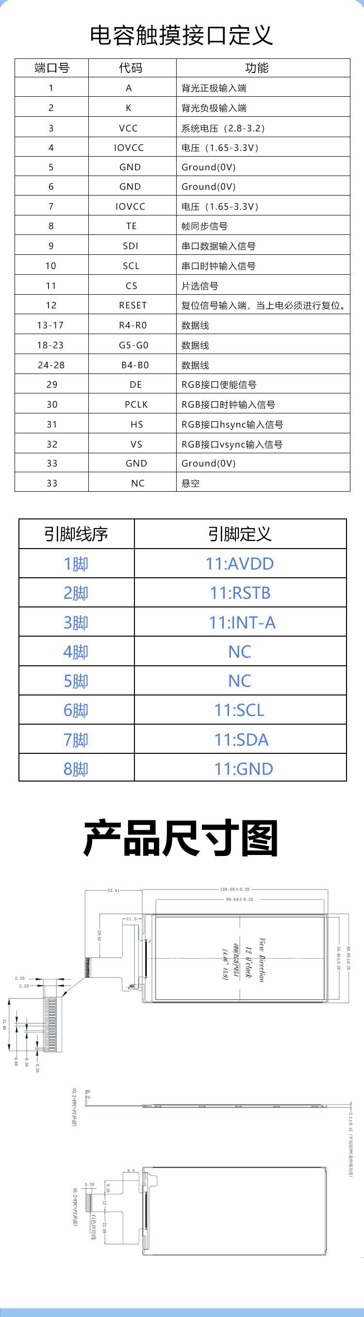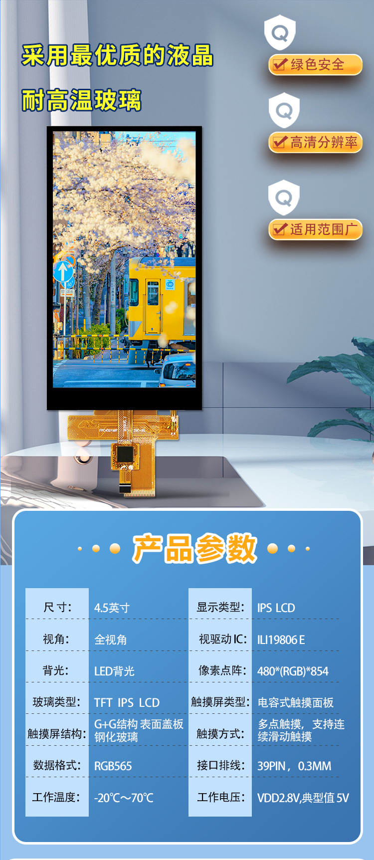 4.5 인치 TFT LCD 화면 인터페이스 RGB565 16 비트 LCD 컬러 스크린 풀 앵글 용량 성 터치