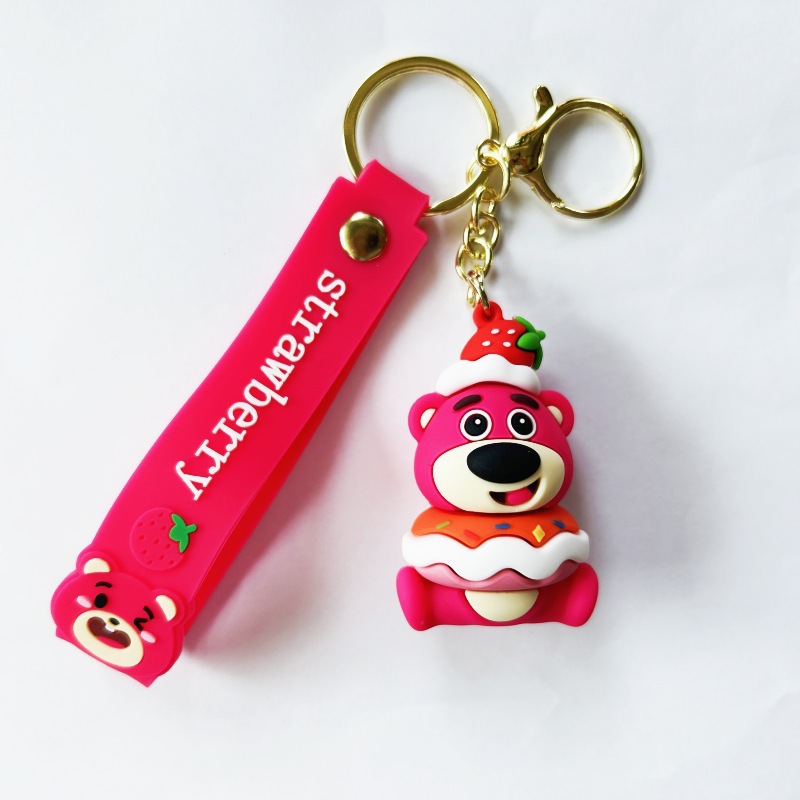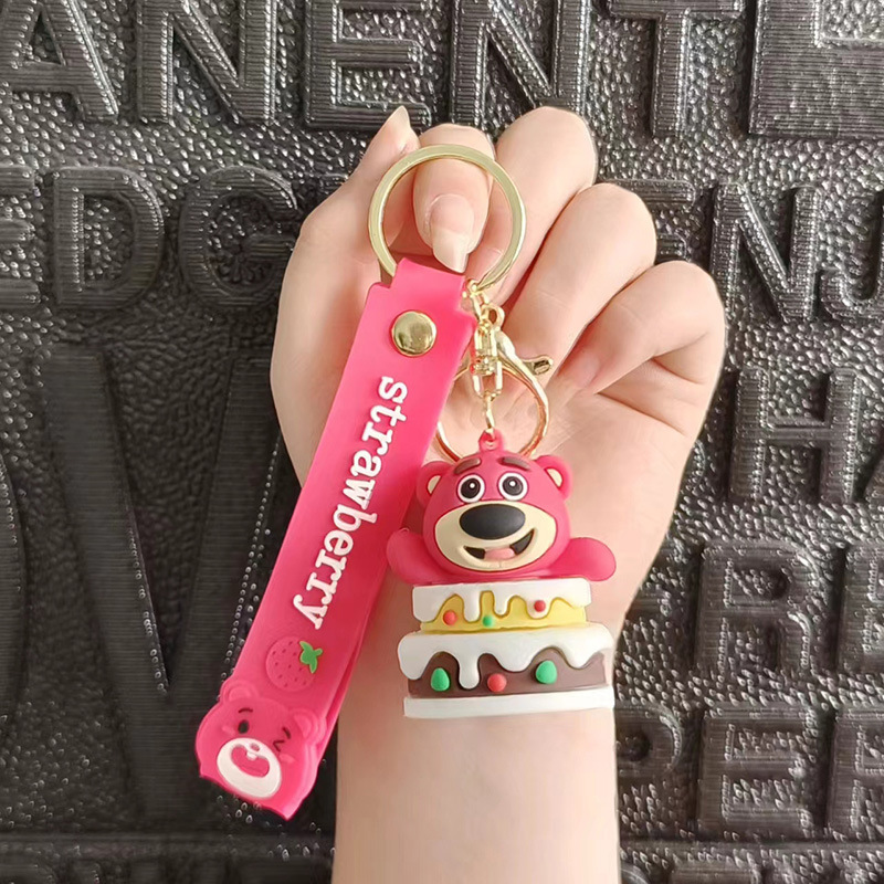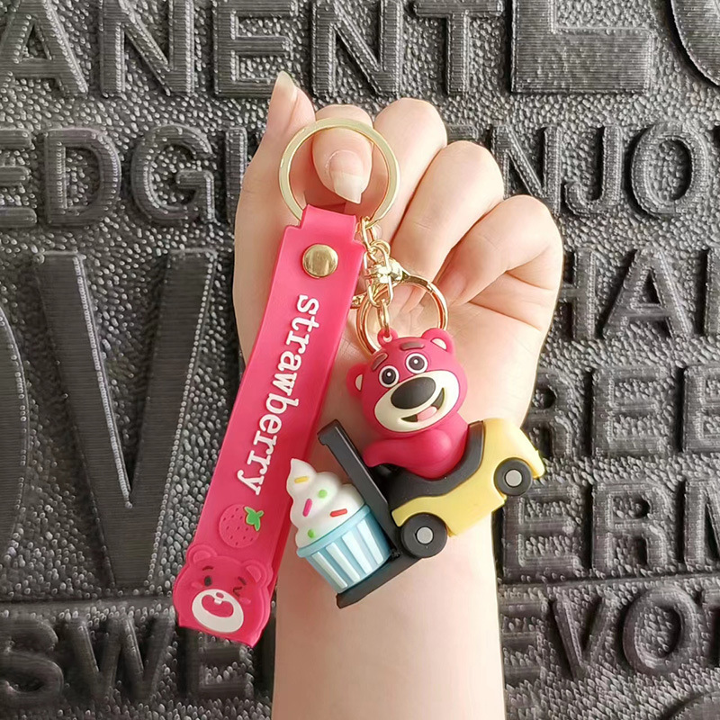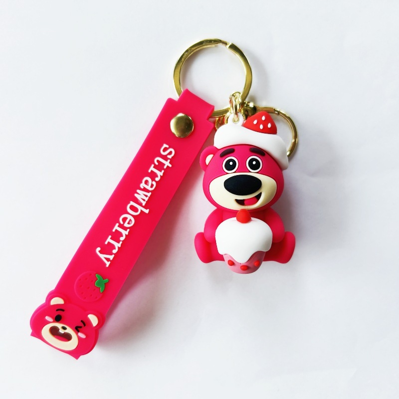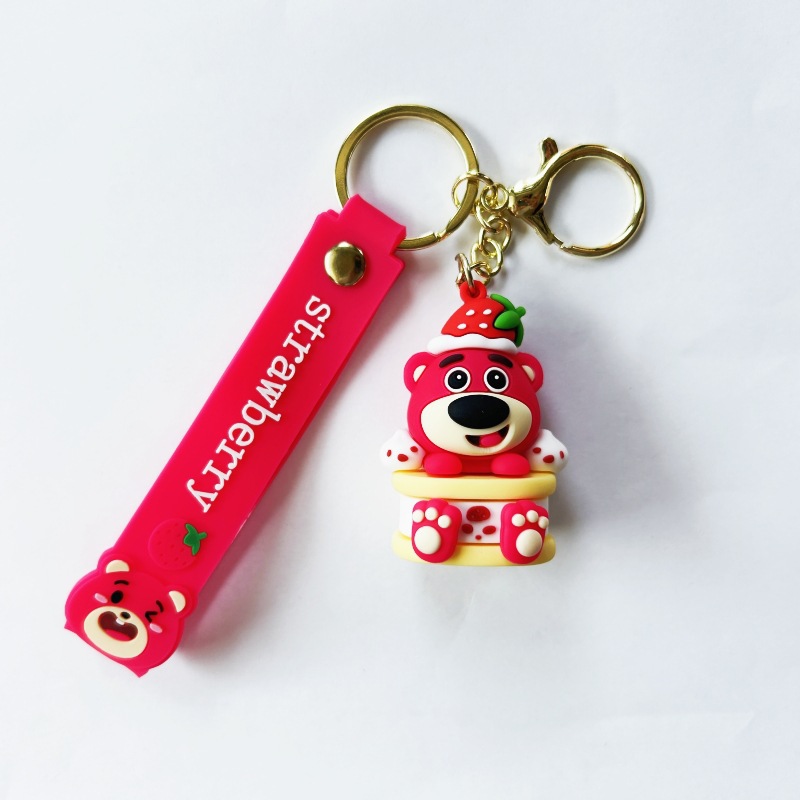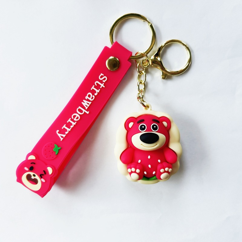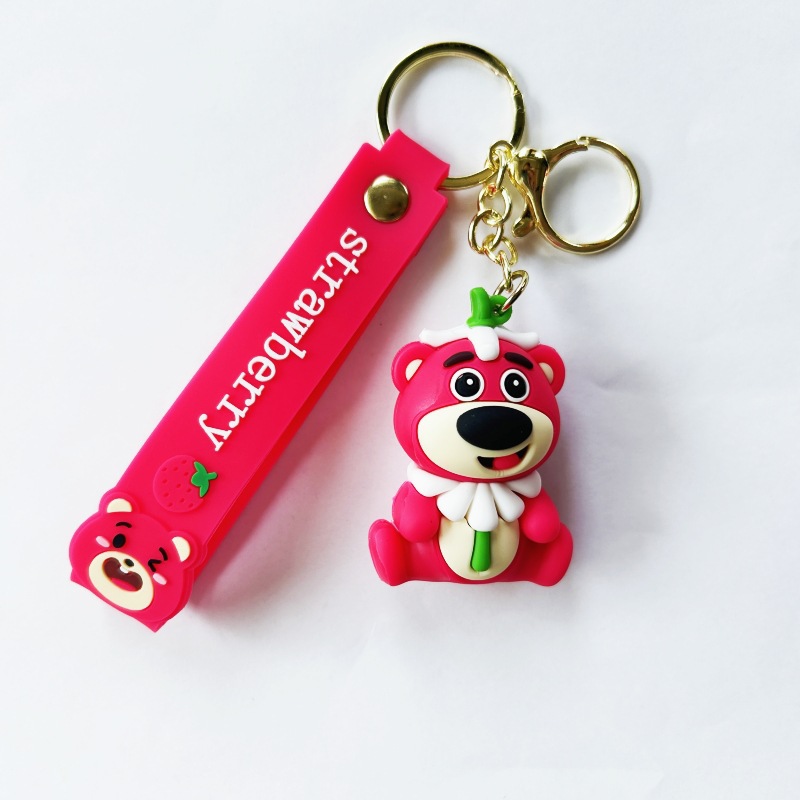 사이버 연예인 딸기 곰 열쇠 고리 만화 딸기 곰 열쇠 펜던트 자동차 키 펜던트 인형 기계 작은 선물