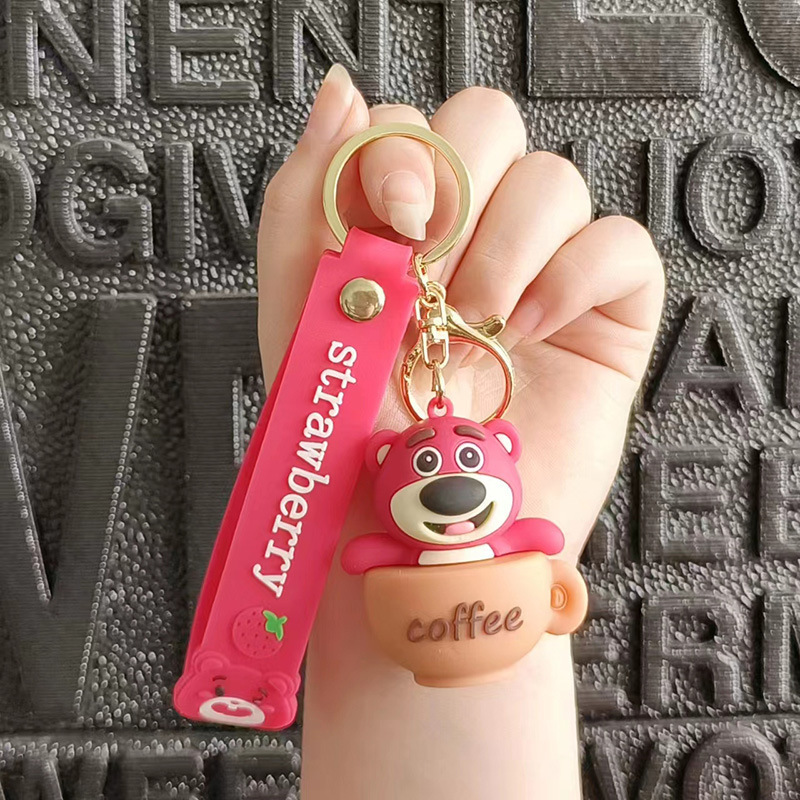 사이버 연예인 딸기 곰 열쇠 고리 만화 딸기 곰 열쇠 펜던트 자동차 키 펜던트 인형 기계 작은 선물스토어 가기