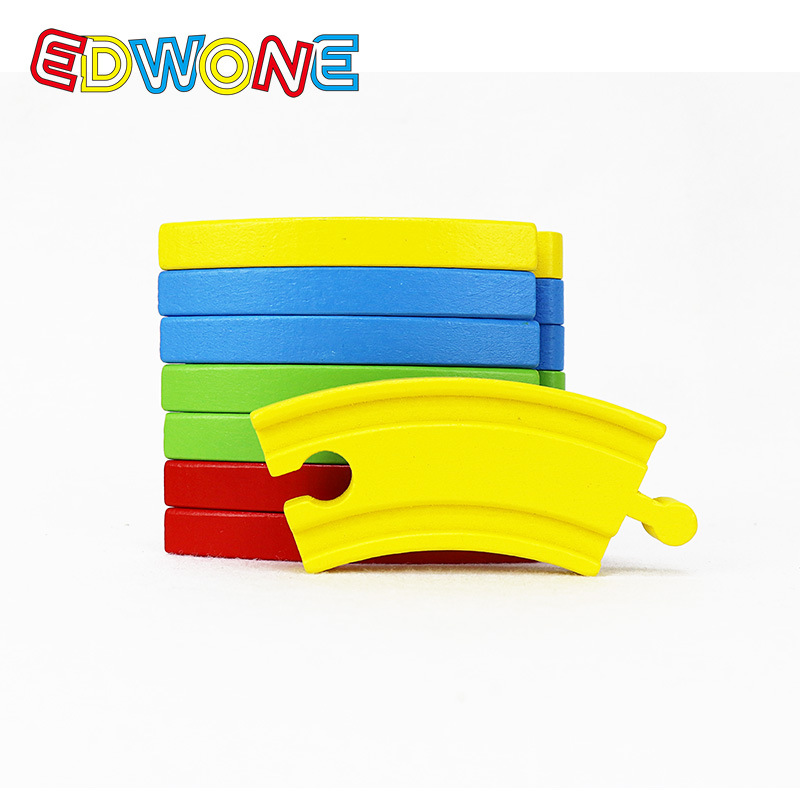 아마존 핫 세일 EDWONE 귀여운 다채로운 곡선 나무 기차 트랙 장난감 아이들을위한 조립 장난감스토어 가기