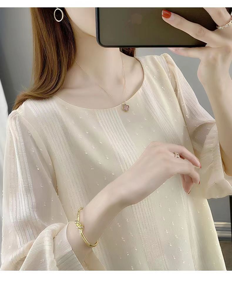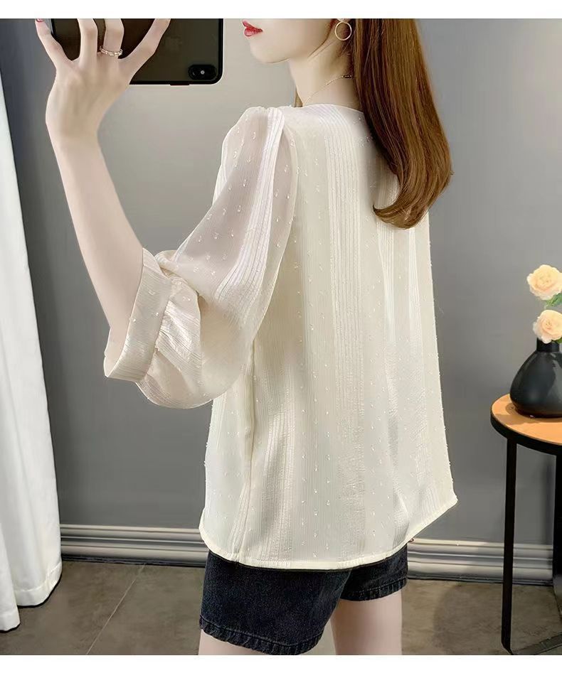 얇은 쉬폰 셔츠 여성용 2023 여름 새로운 단색 프랑스 작은 셔츠 느슨한 캐주얼 웨스턴 스타일 셔츠 탑