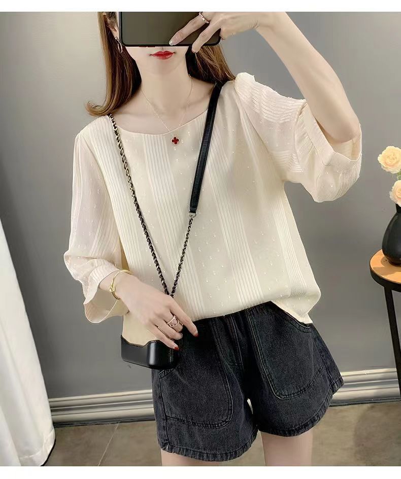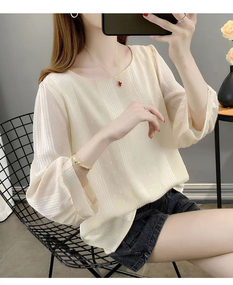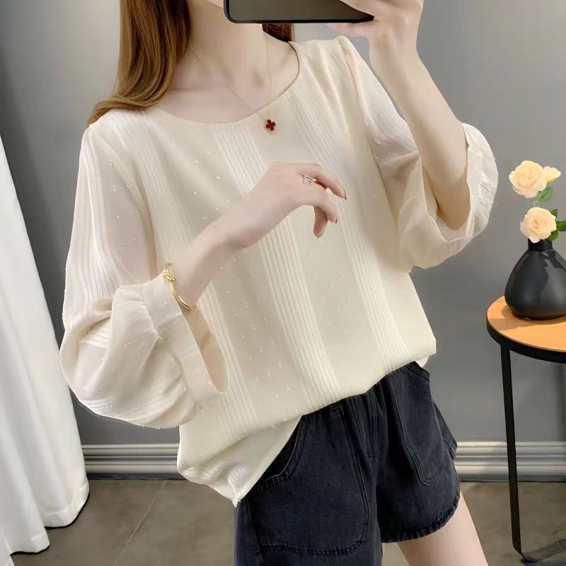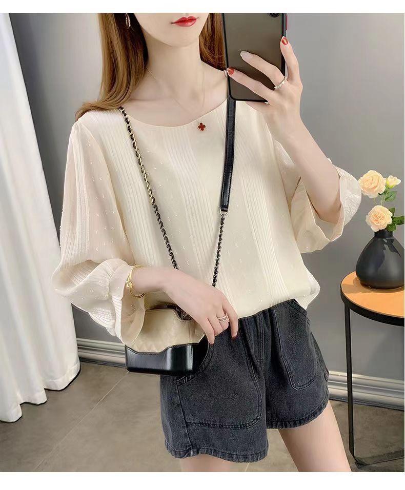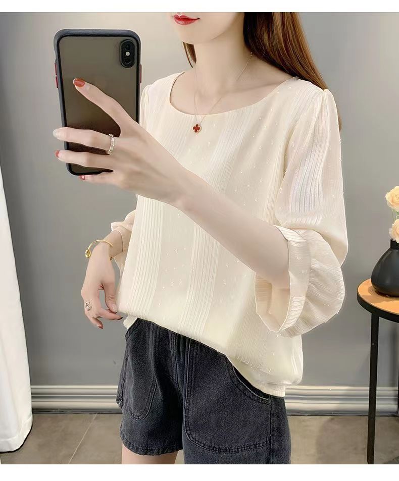 얇은 쉬폰 셔츠 여성용 2023 여름 새로운 단색 프랑스 작은 셔츠 느슨한 캐주얼 웨스턴 스타일 셔츠 탑스토어 가기