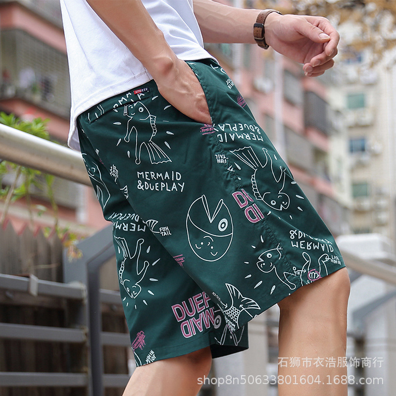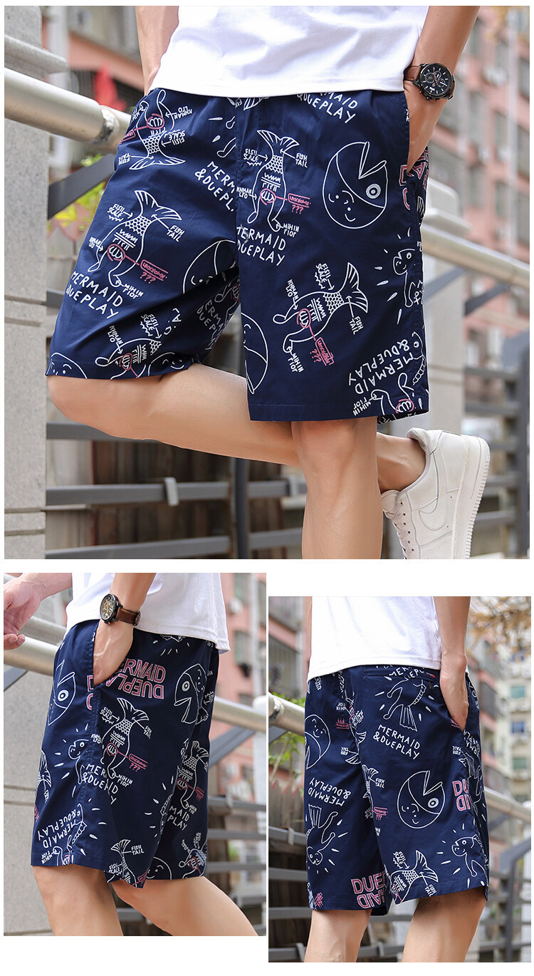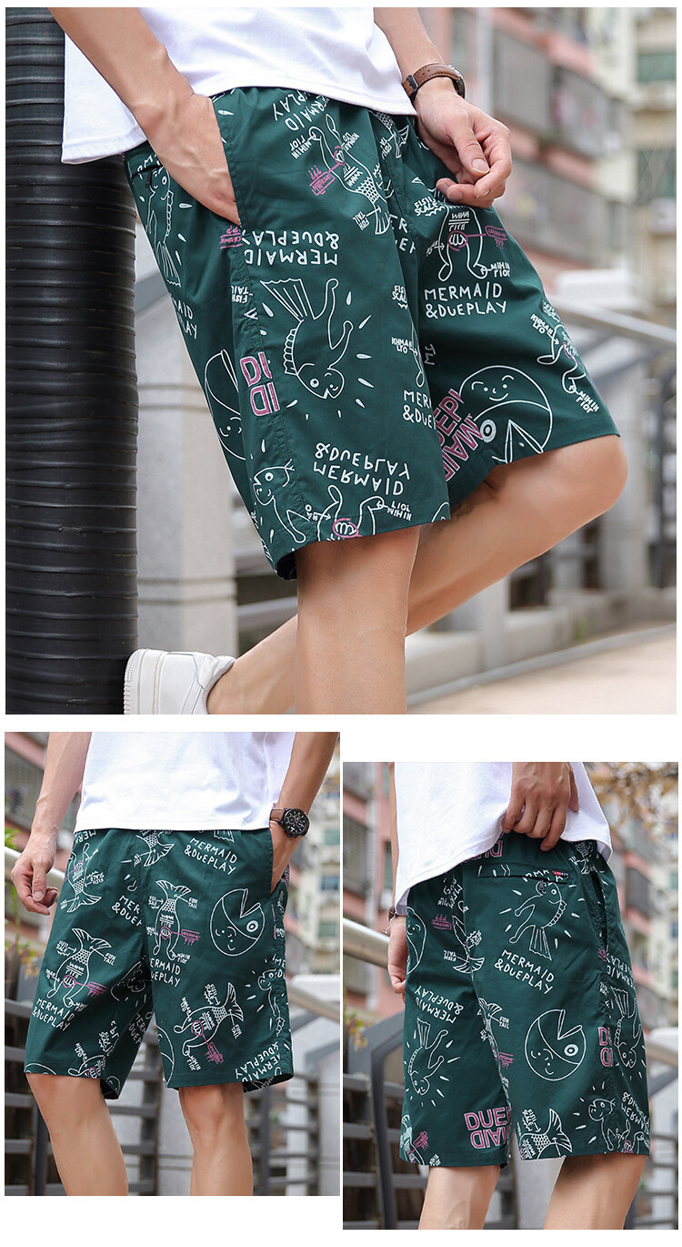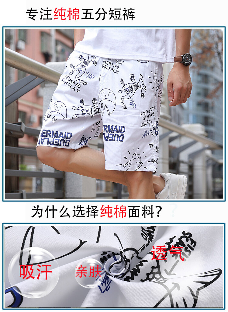 남자의 느슨한 캐주얼 바지 여름 얇은 비치 바지 유행 면 인쇄 크롭 반바지 느슨한 홈 바지