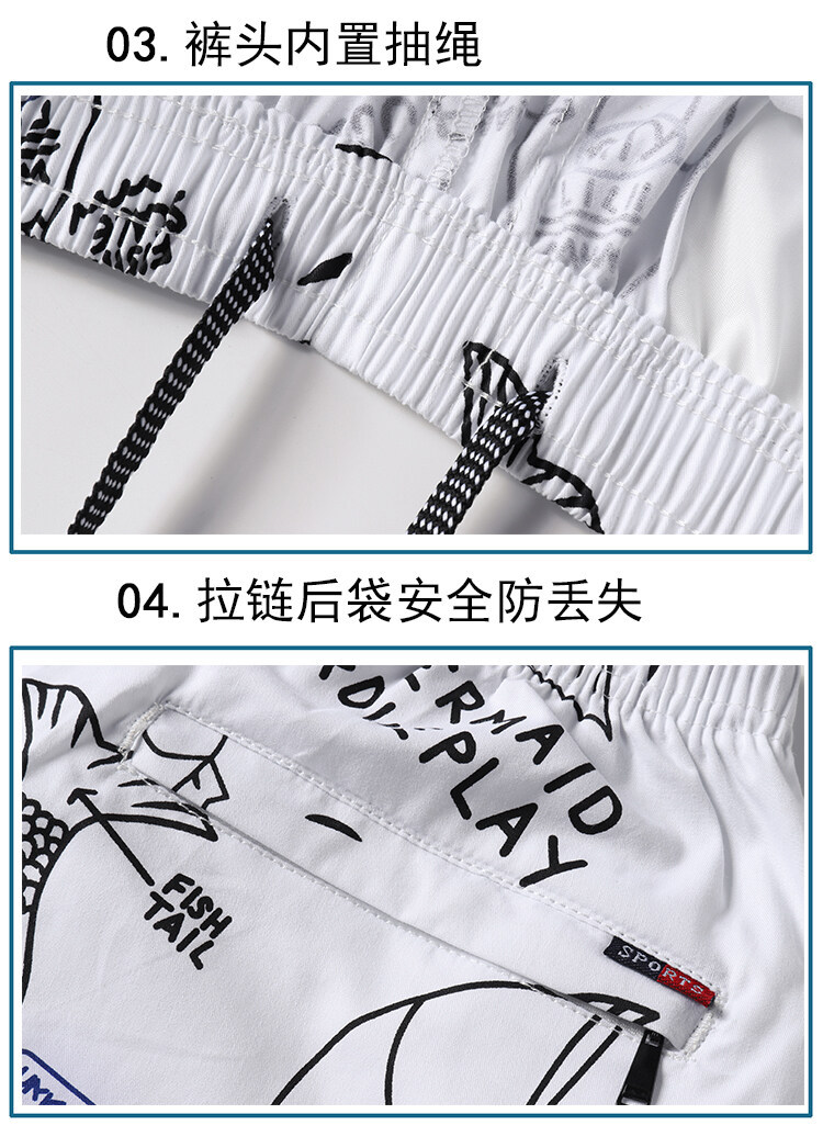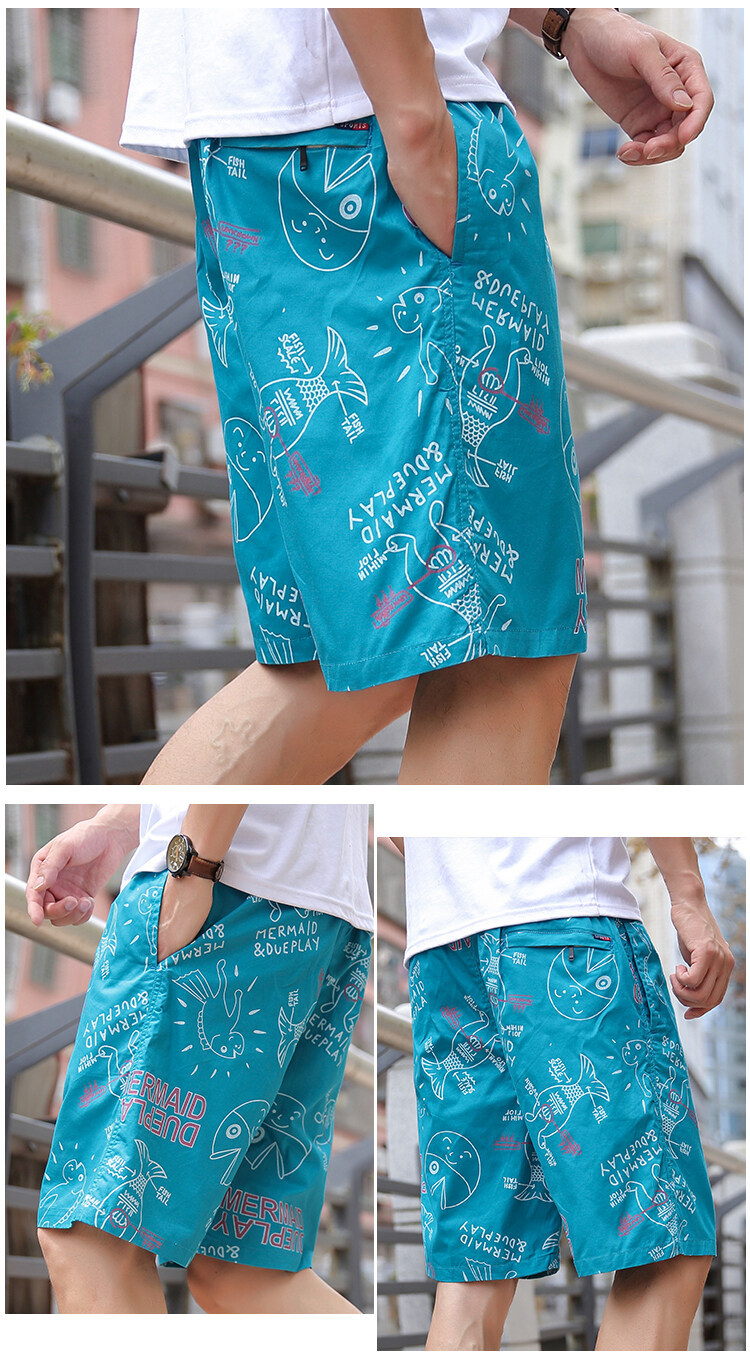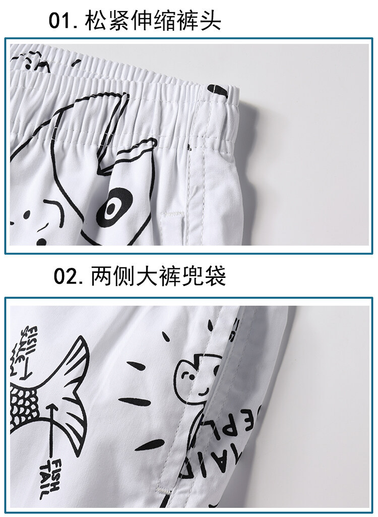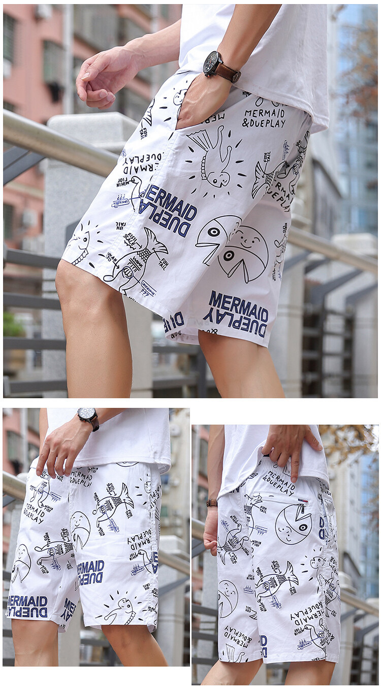 남자의 느슨한 캐주얼 바지 여름 얇은 비치 바지 유행 면 인쇄 크롭 반바지 느슨한 홈 바지