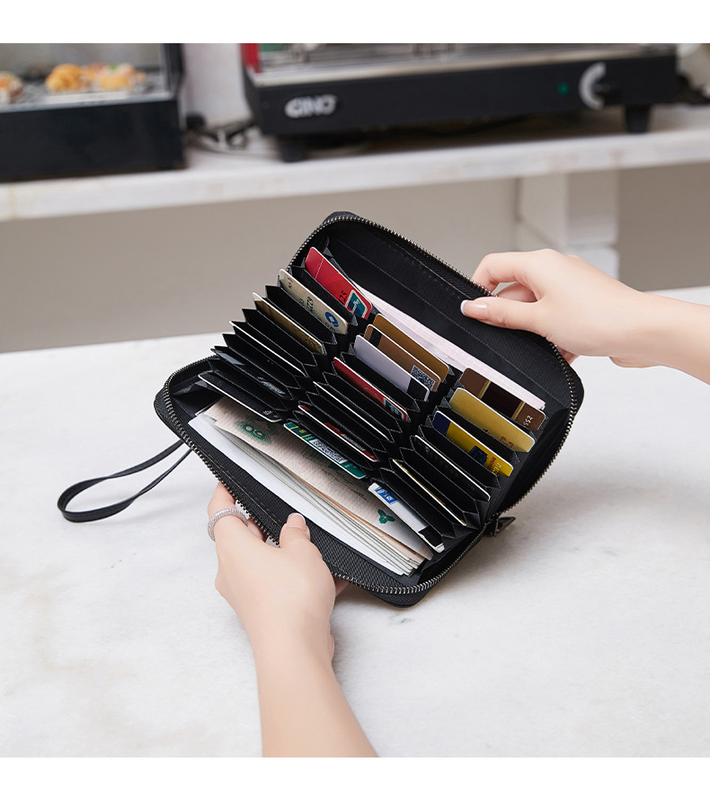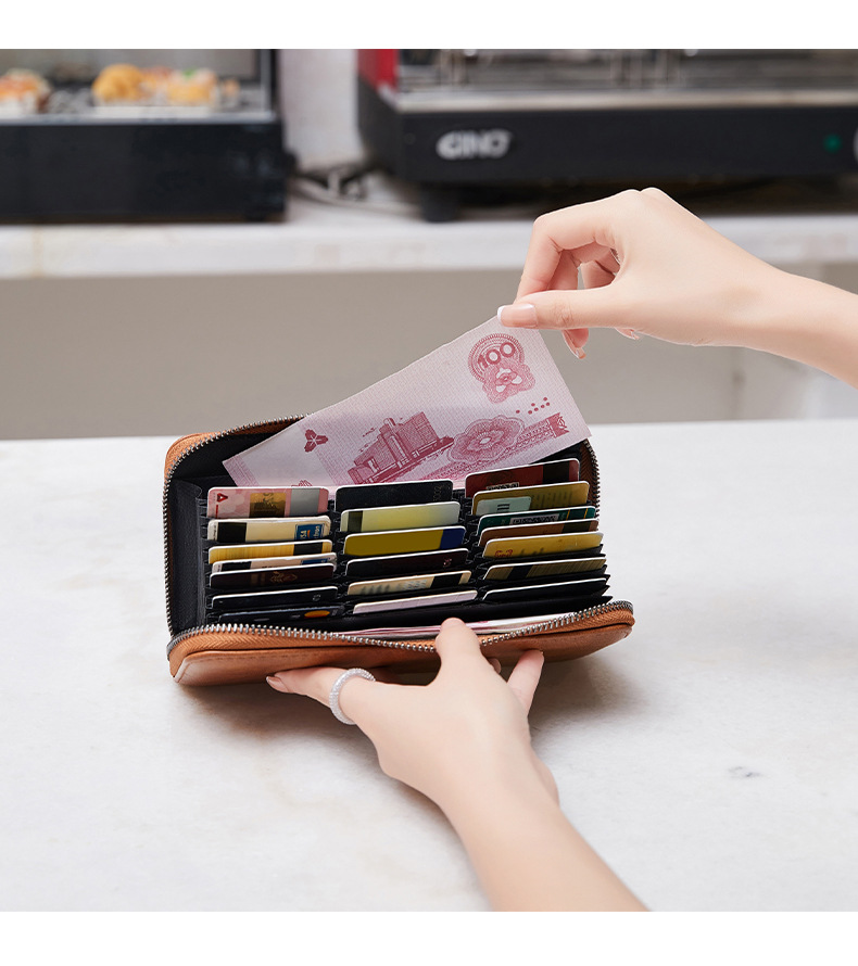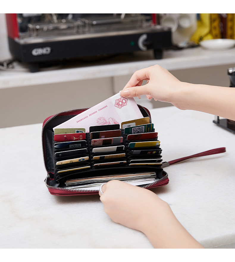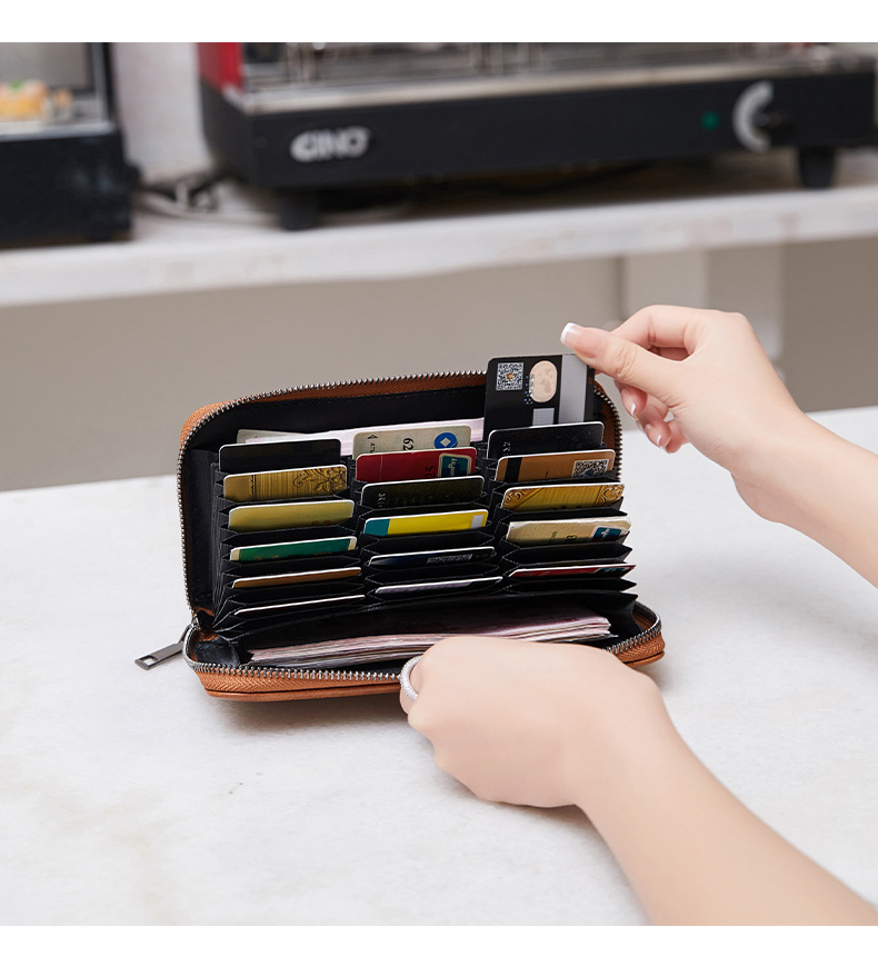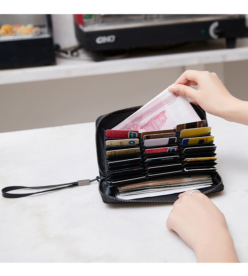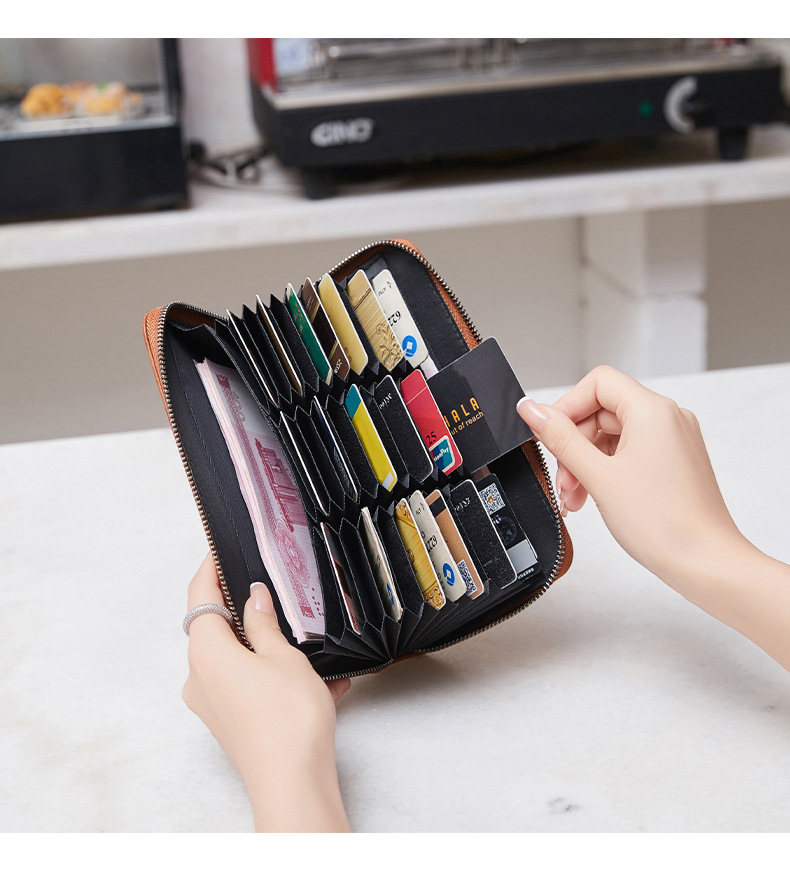 2024 다기능 오르간 카드 지갑 심플한 단색 롱 지갑 도난 방지 RFID 남녀 공용 신용카드 명함 지갑스토어 가기