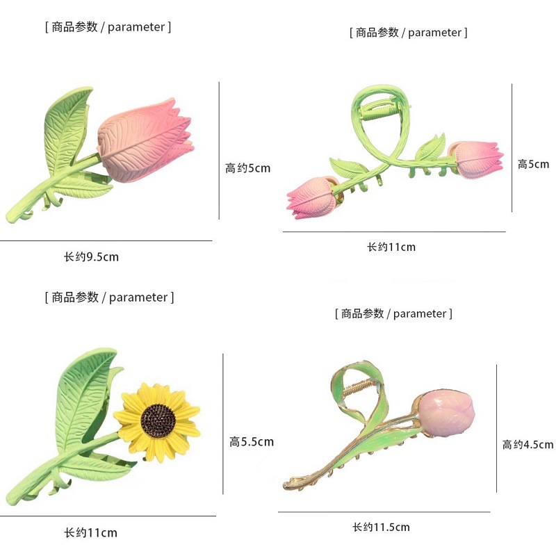 대형 튤립 클립 도매 해바라기 합금 헤드 클립 머리 장식 헤어 클립 여성 기질 머리카락스토어 가기