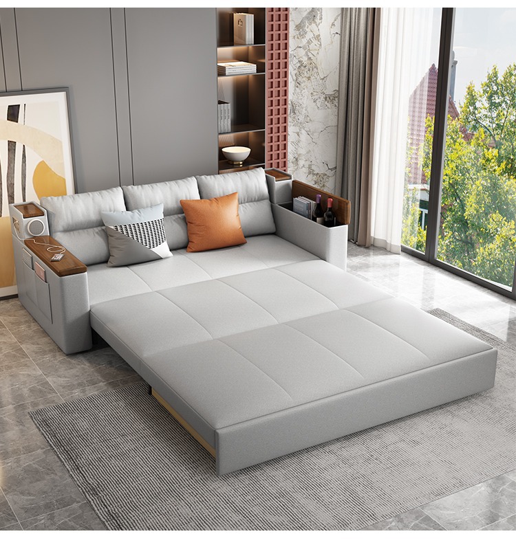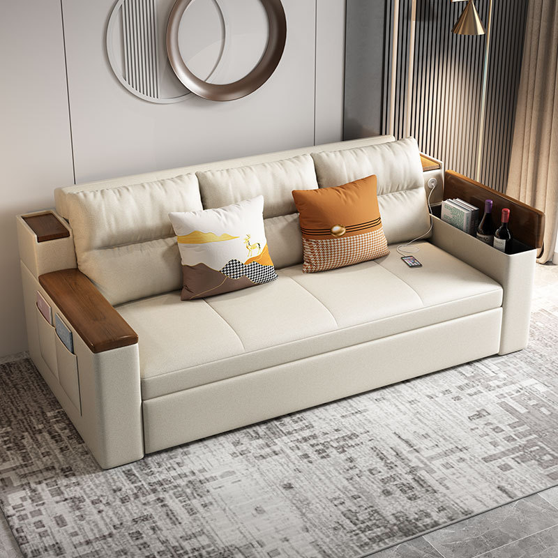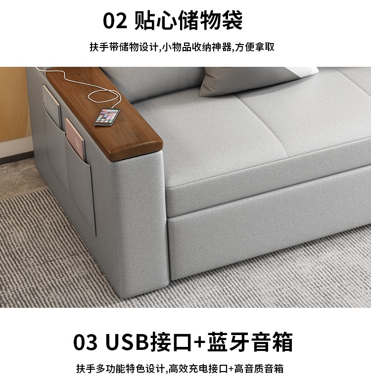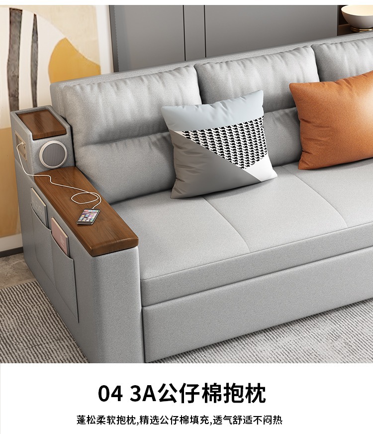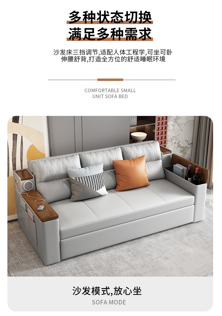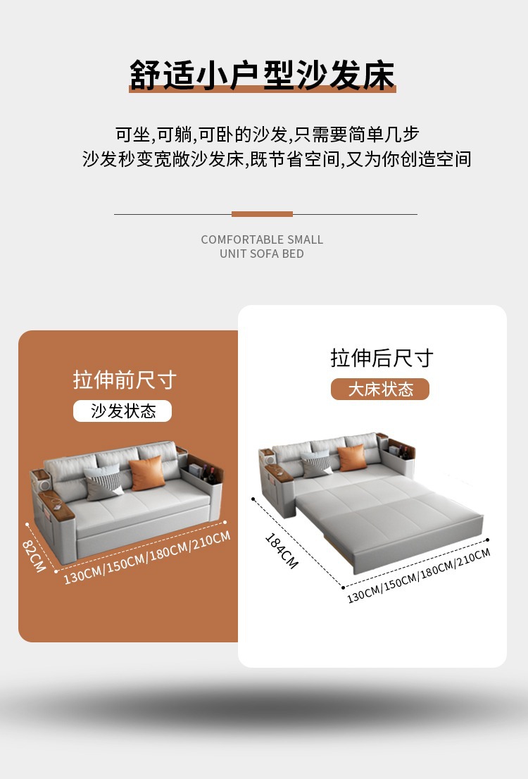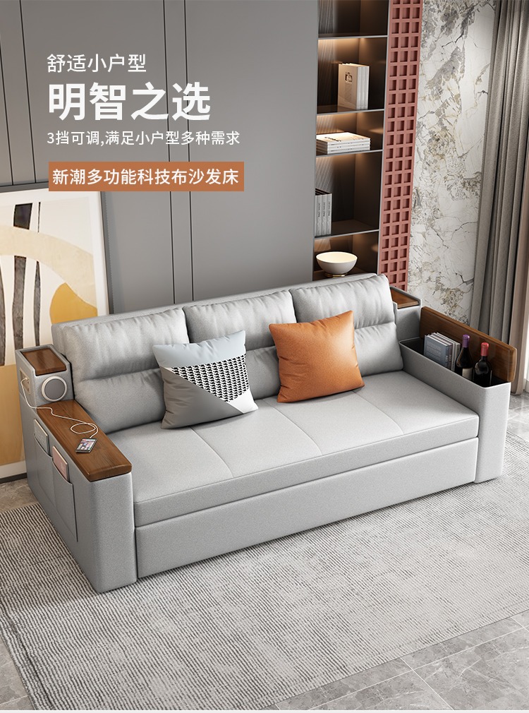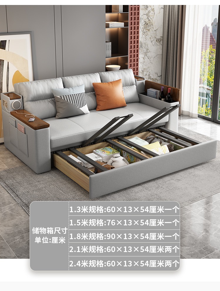 2인용 패브릭 소파 베드, 1.5m 접이식 다기능 수납 공간, 작은 아파트 거실, 앉고 누울 수 있음