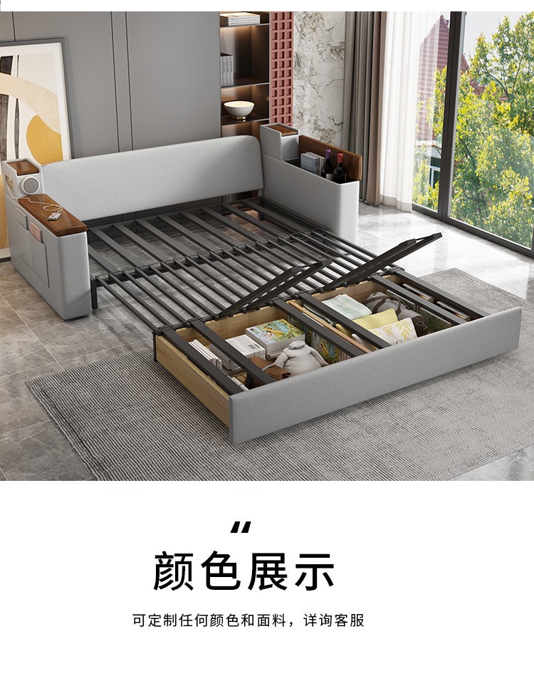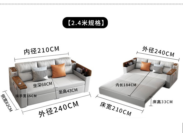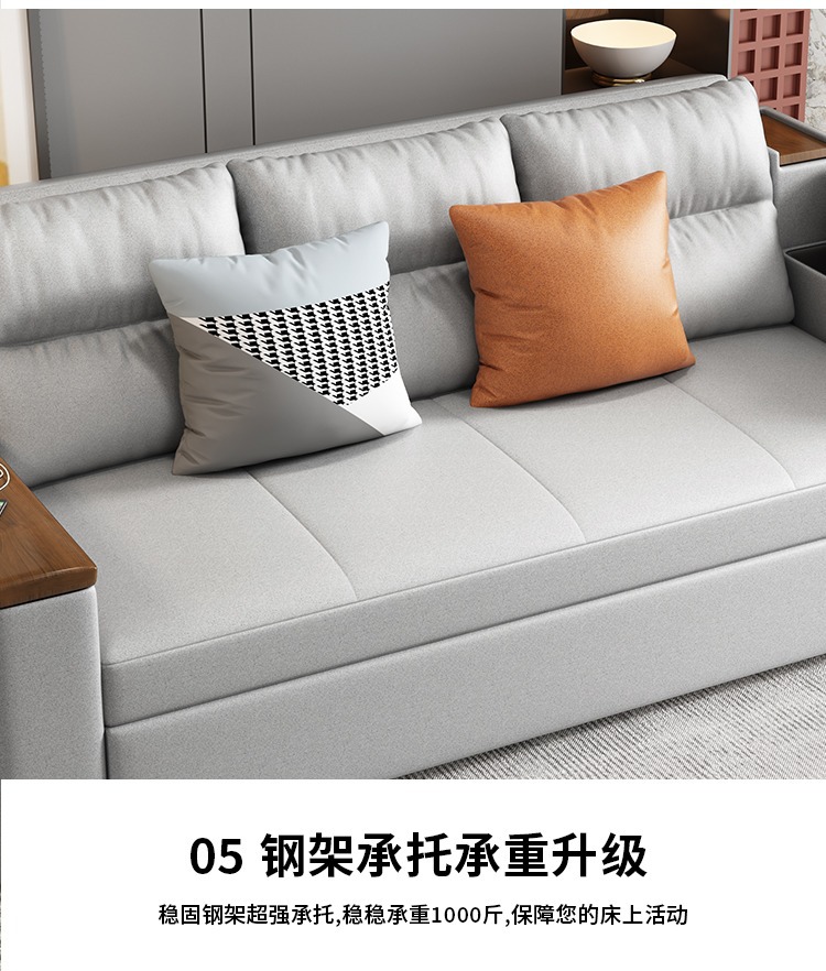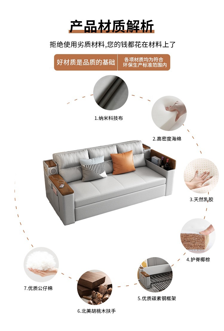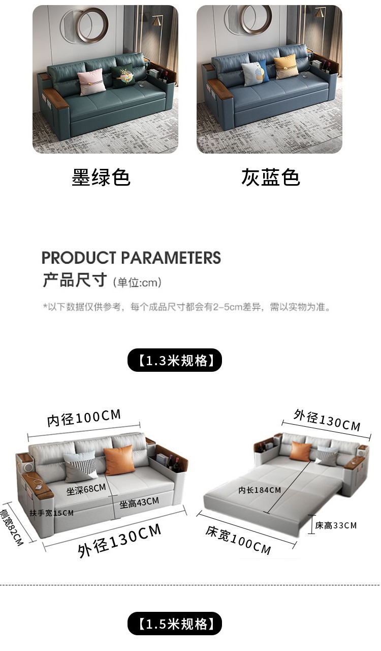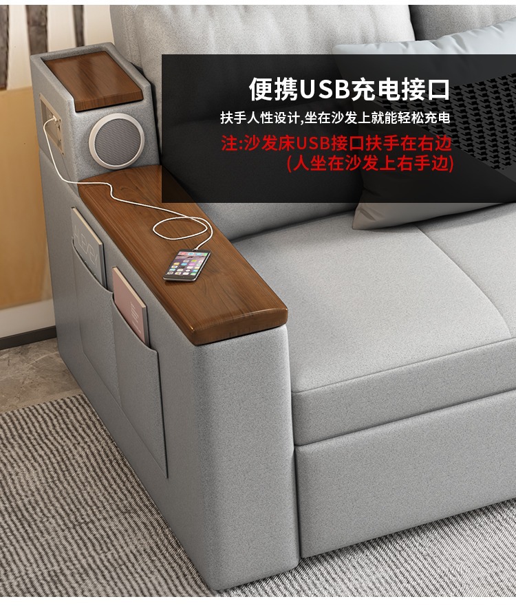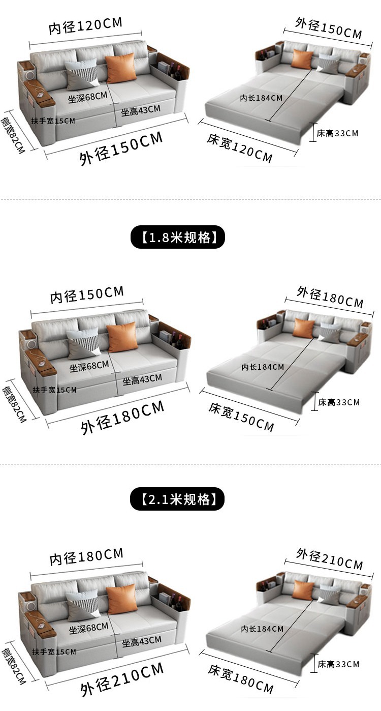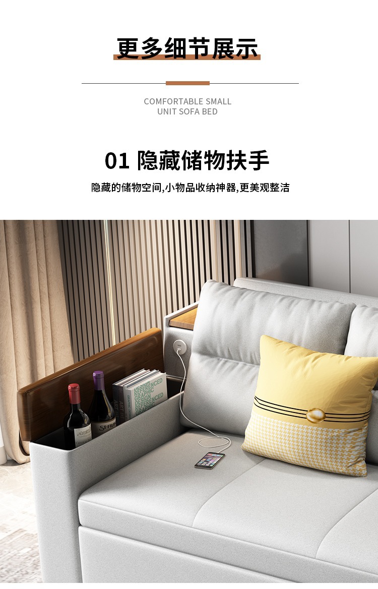 2인용 패브릭 소파 베드, 1.5m 접이식 다기능 수납 공간, 작은 아파트 거실, 앉고 누울 수 있음