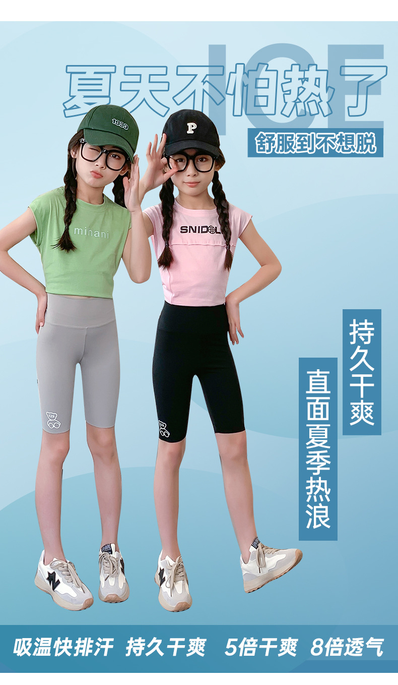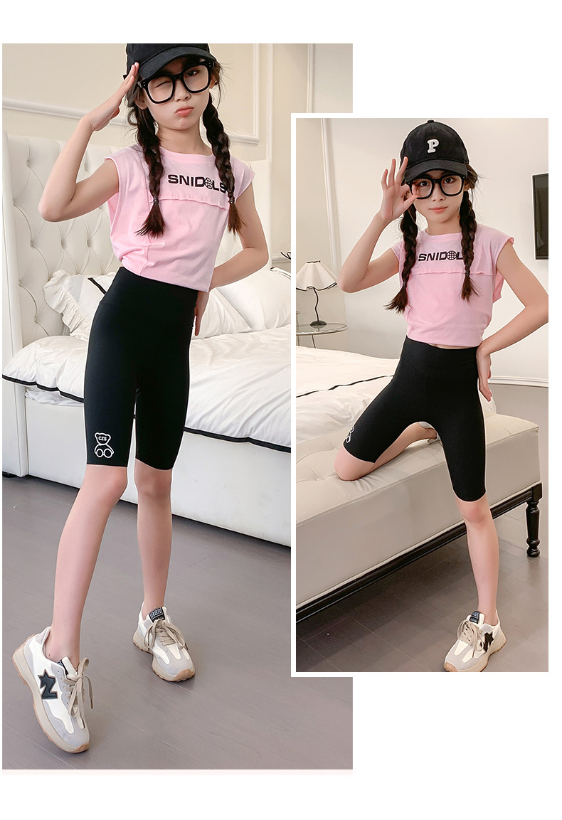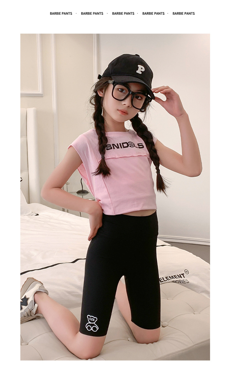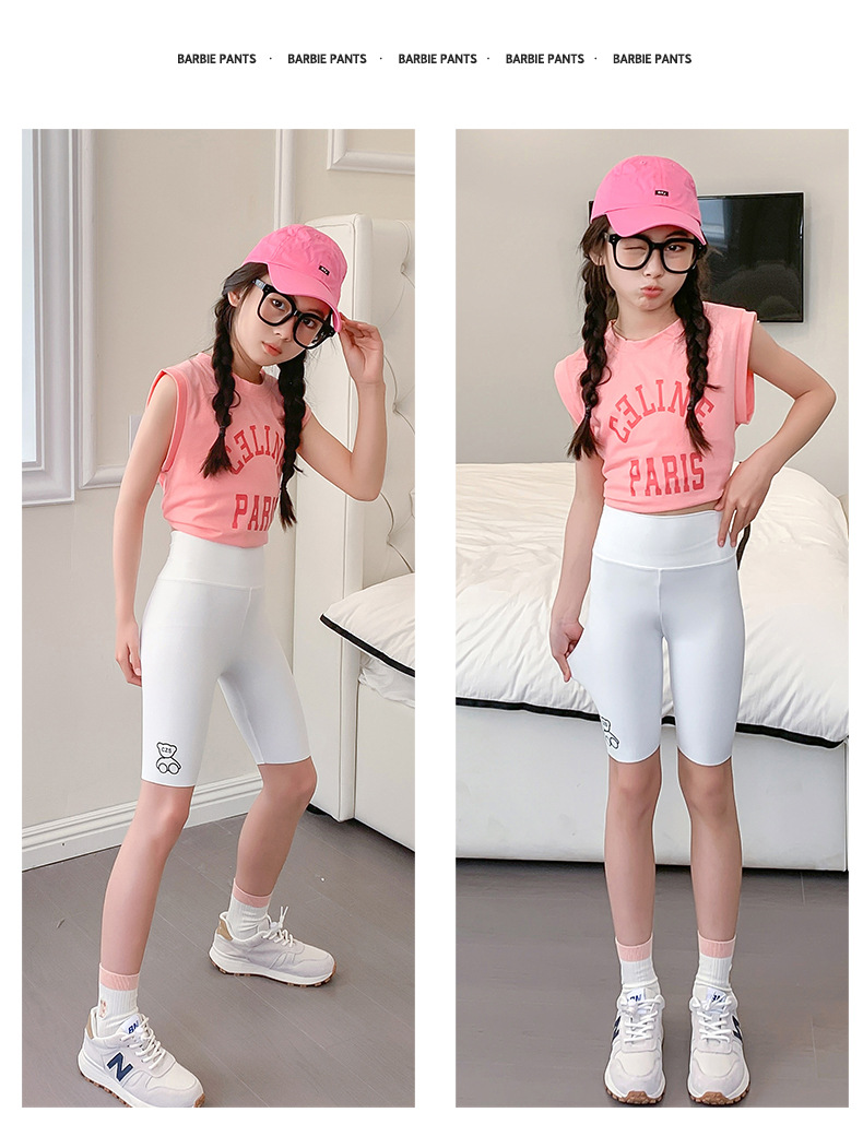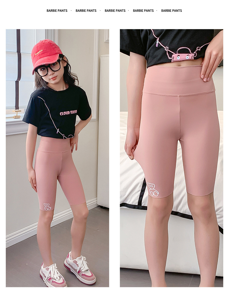 중대형 어린이를위한 새로운 여름 여아 하이 웨이스트 아이스 실크 바비 상어 바지