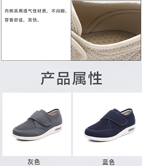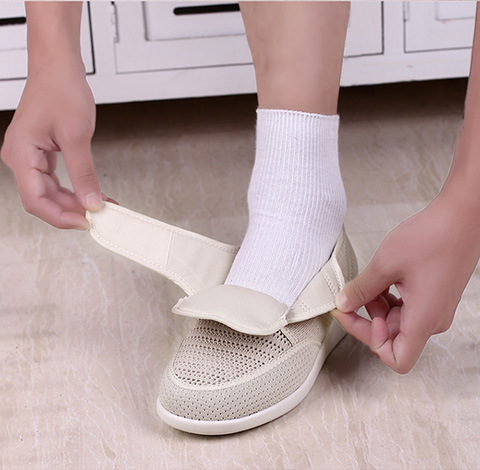 Yoyun 봄과 여름 노년 신발 부어 오른 발 신발 살 확대 수술 후 조정 가능한 벨크로 노인 미끄럼 방지 신발