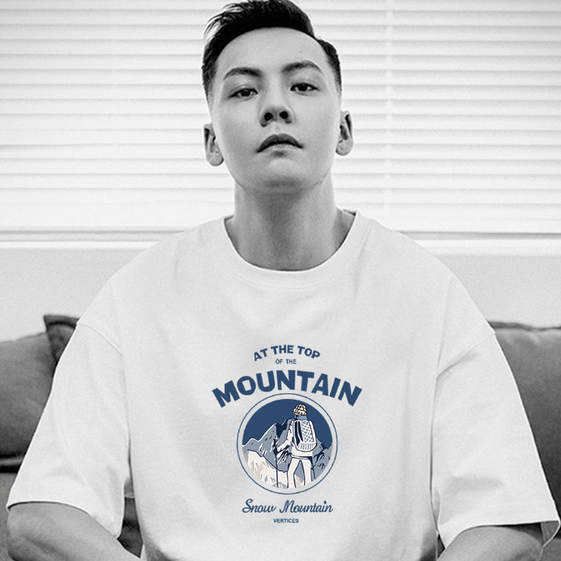 순수 코튼 반팔 티셔츠 남성 2025 여름 새로운 디자인 캐주얼 루즈 반팔 티셔츠 남성 탑 화이트스토어 가기