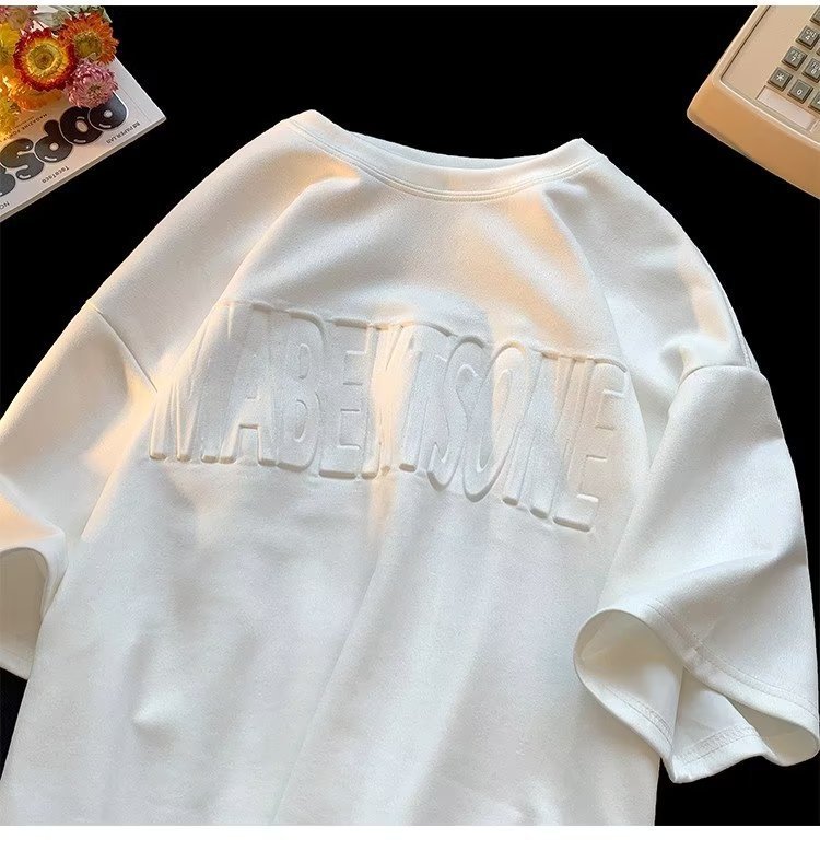 스웨이드 반팔 티셔츠 미국 패션 브랜드 여름 헤비 업그레이드 고급 아메리칸 스틸 프린트 레터 inT 티셔츠스토어 가기
