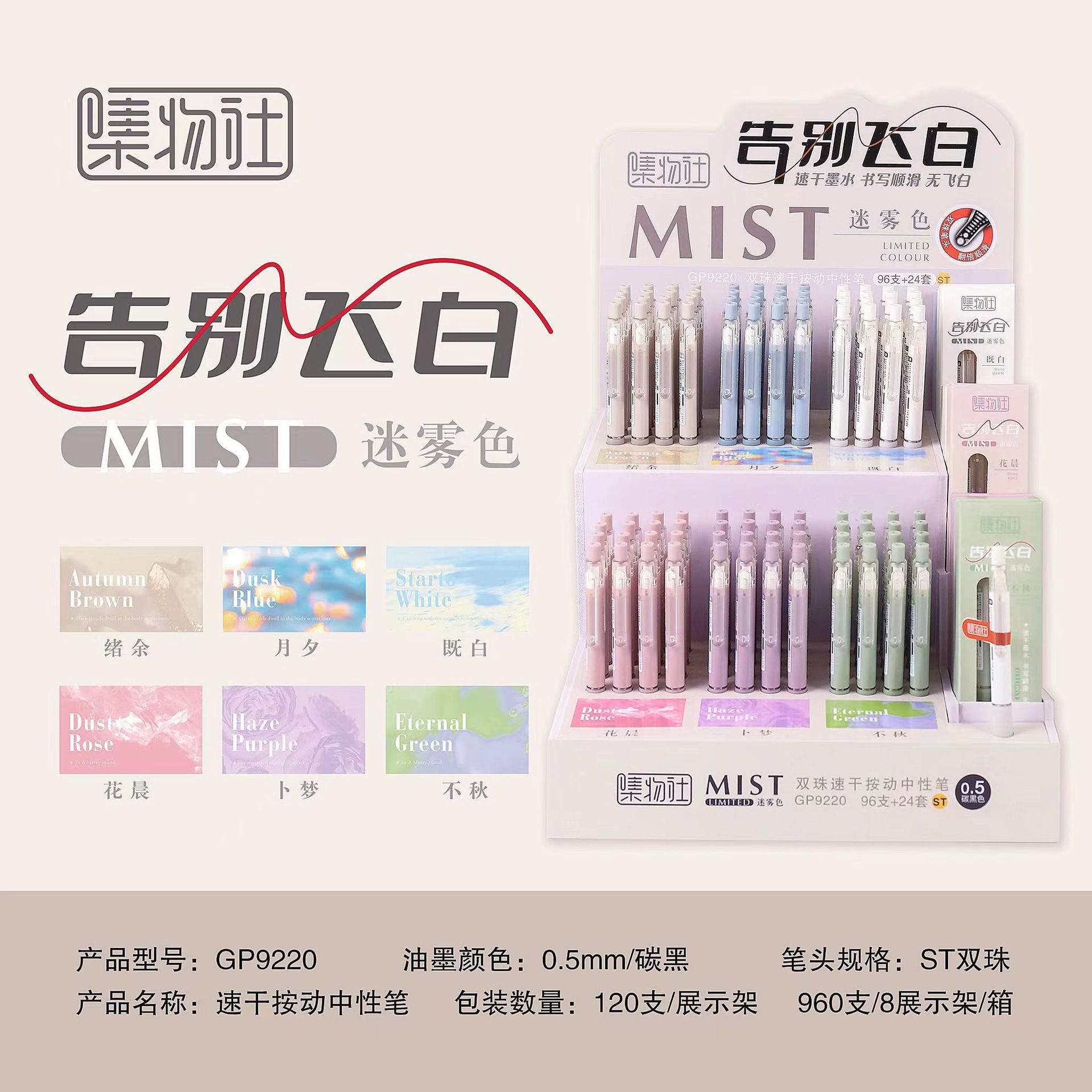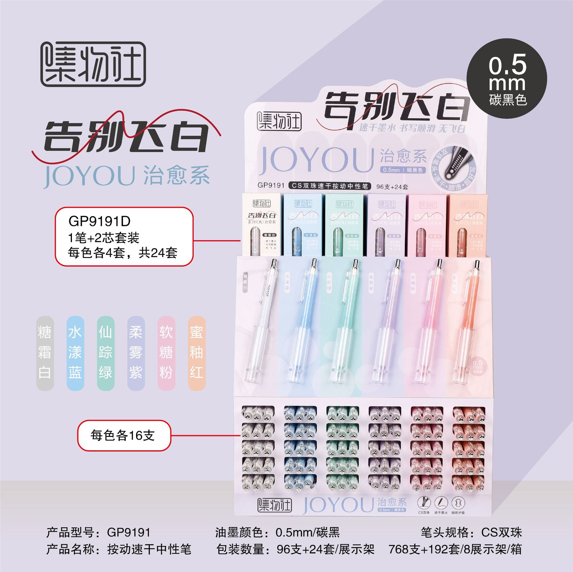 集物社GP9191告别飞白双珠中性笔,架装:96支+24套(1支笔+2支笔芯),8架/箱