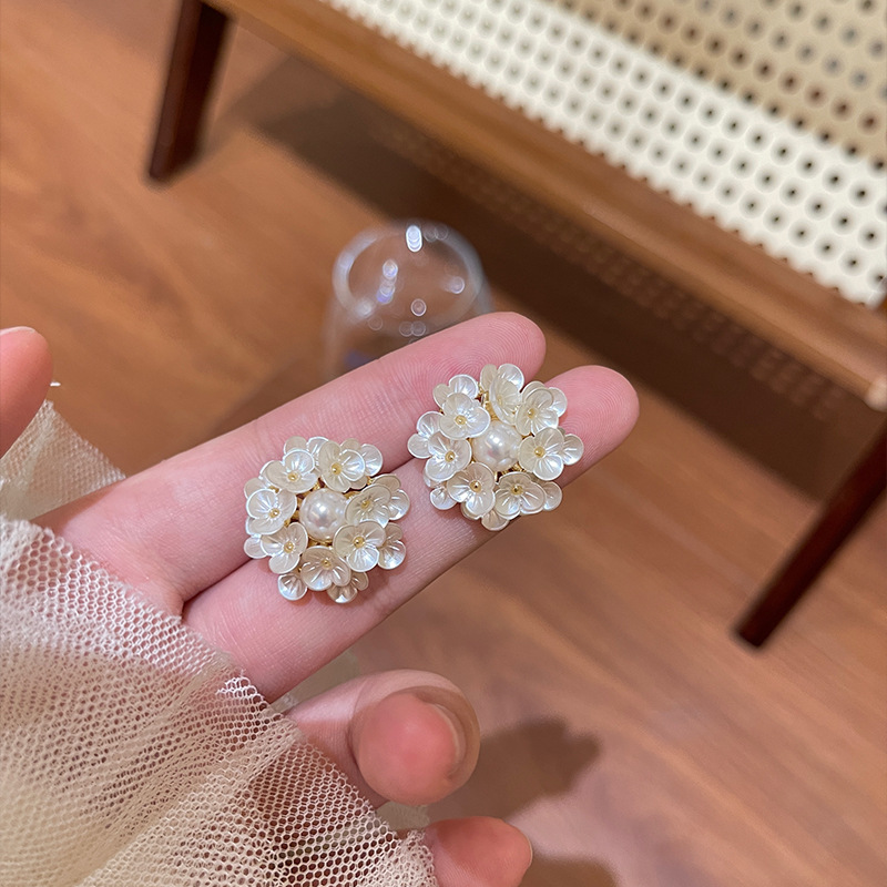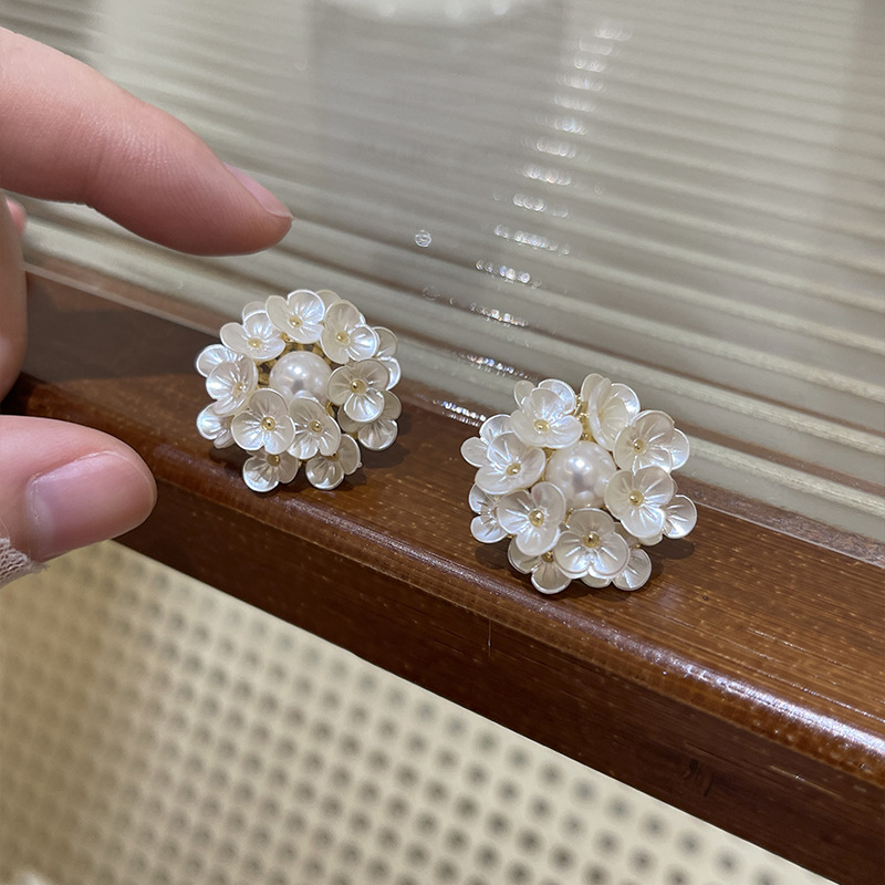 [구리 + 925 실버 바늘] 새로운 쉘 꽃 귀걸이 귀걸이 슈퍼 요정 흰색 귀걸이 여름 기질 조커스토어 가기