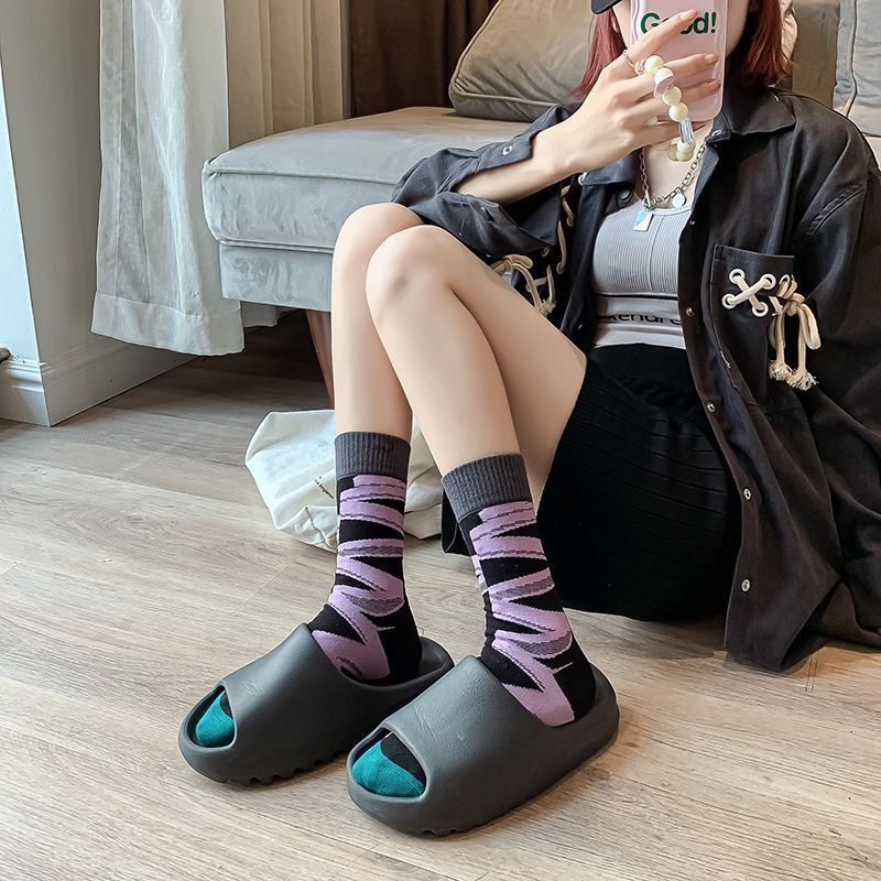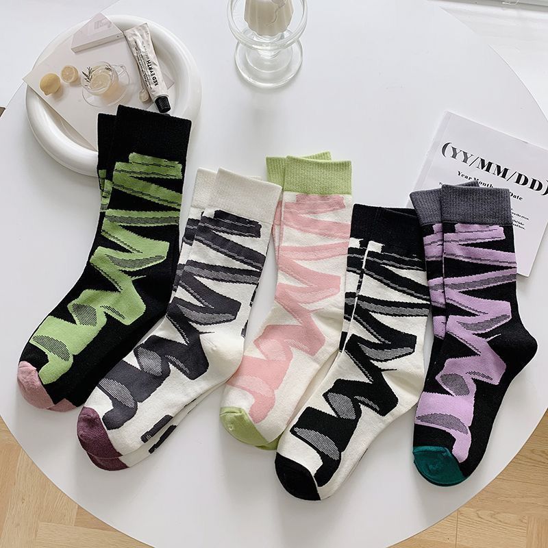 스트라이프 미드 튜브 양말 불규칙한 낙서 숙녀 양말 JK 여자 캐주얼 홈 플로어 양말 스포츠 캐주얼 폴리 에스테르 양말