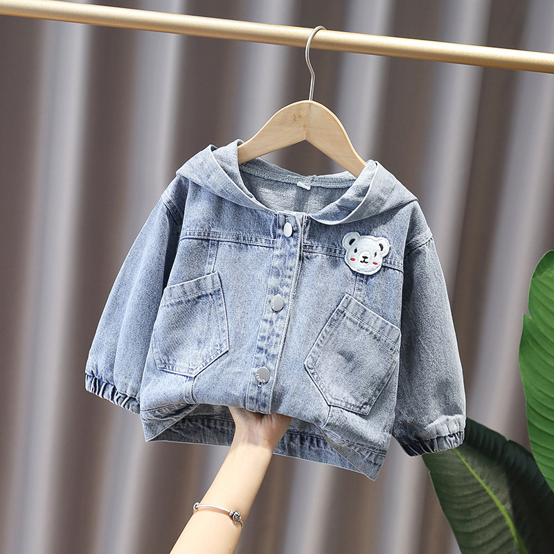 어린이 만화 청바지 코트 2023 가을과 겨울 옷 새로운 어린이 아기 후드 데님 탑스토어 가기