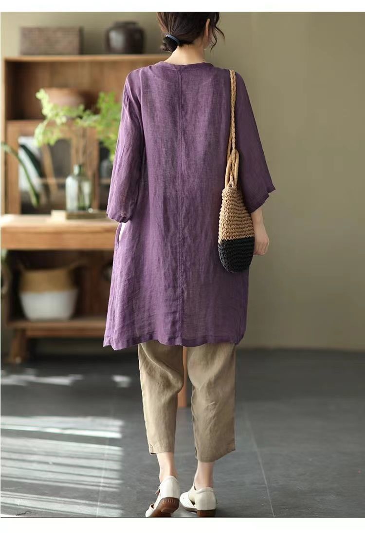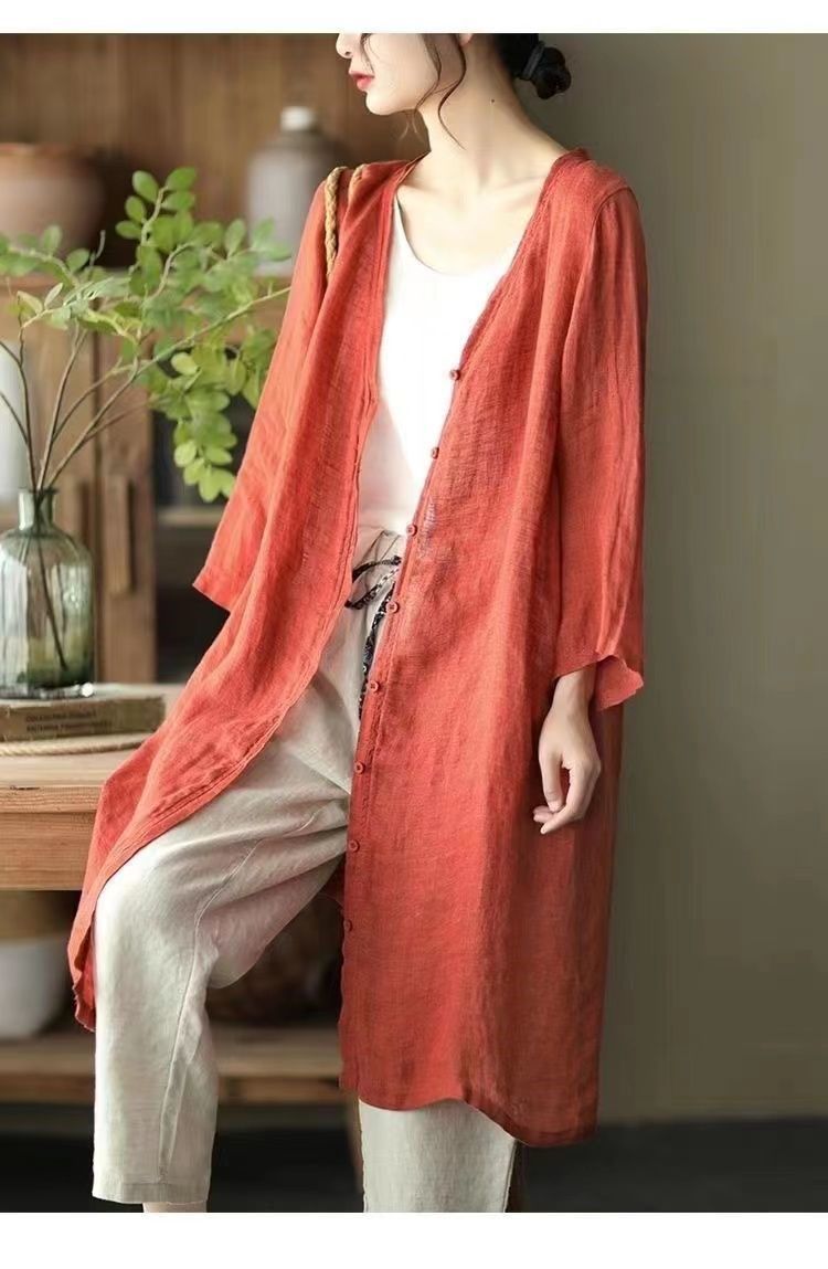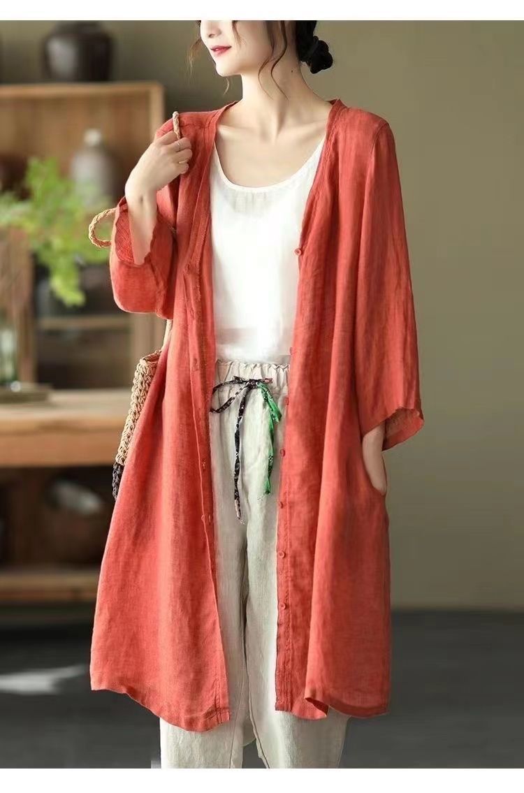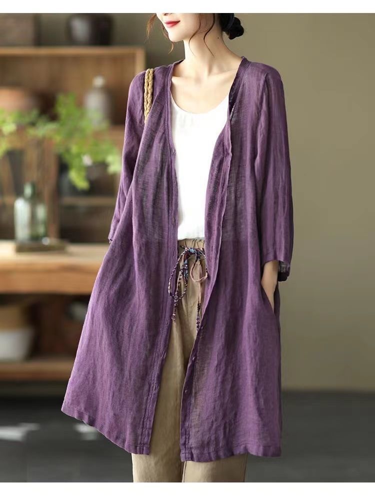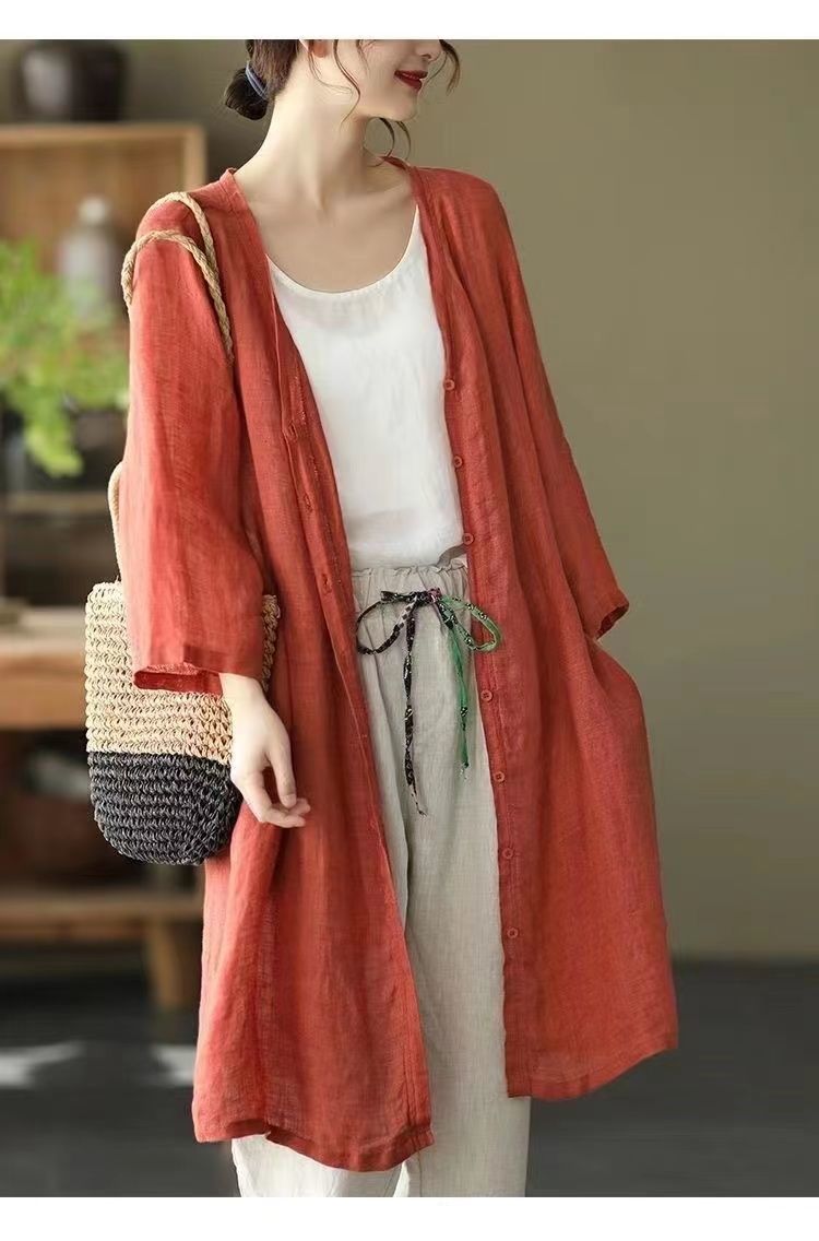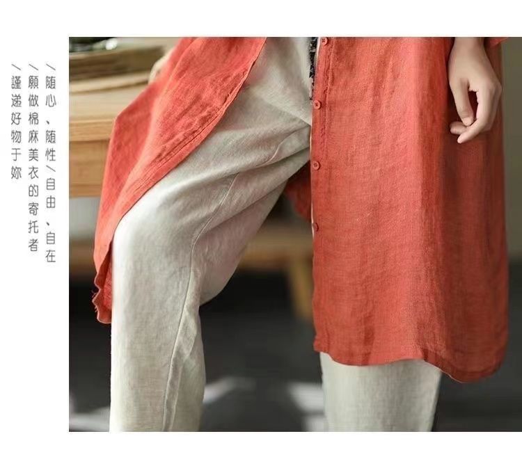 2025 여름 가을 신상 레트로 코튼 린넨 중간 길이 가디건 여성용 루즈핏 예술적 대형 사이즈 캐주얼 에어컨 셔츠 아우터스토어 가기