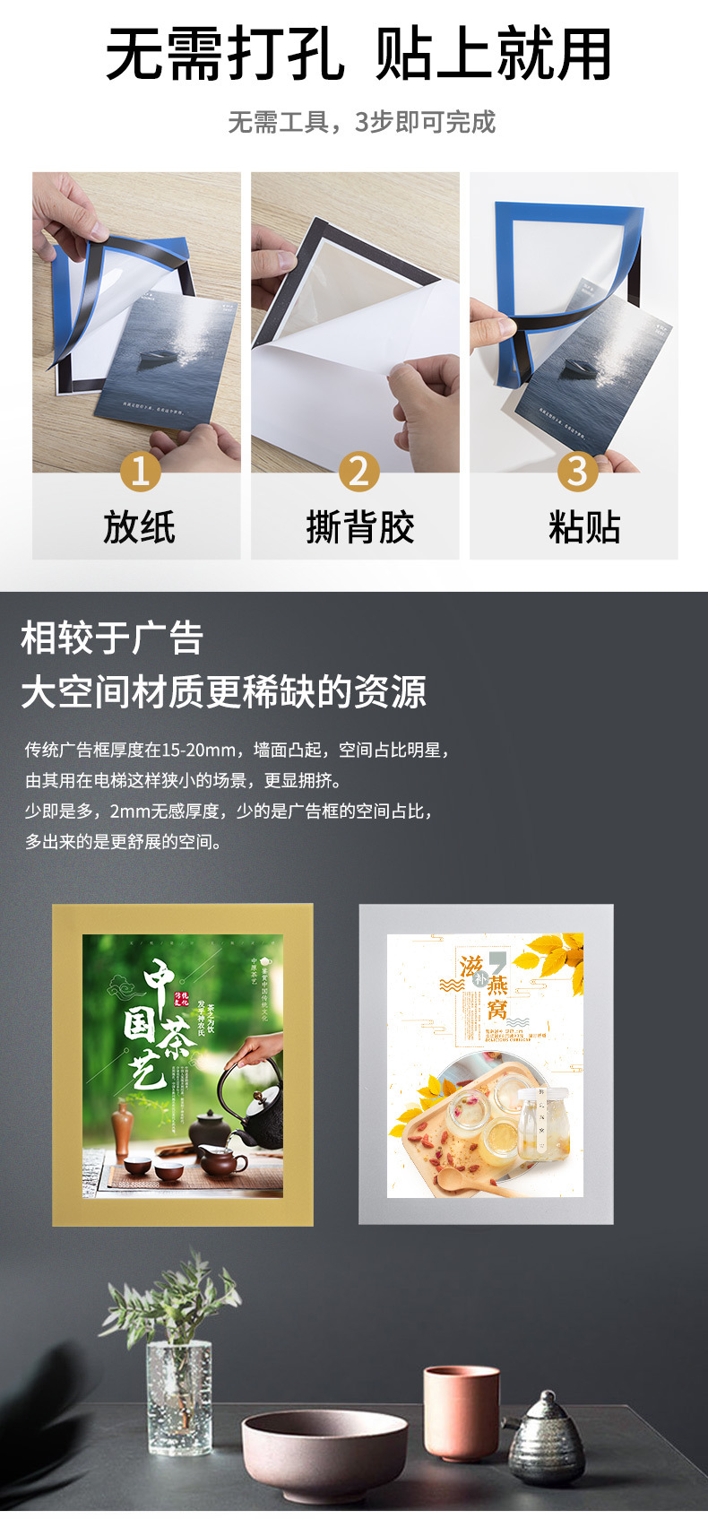 A3A4 재고 자기 사진 프레임 비즈니스 라이센스 프레임 광고 자기 디스플레이 프레임 비 천공 도매