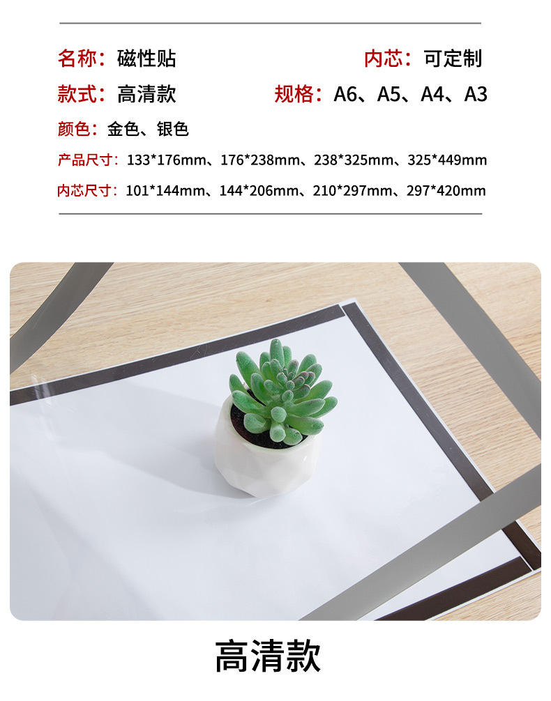 A3A4 재고 자기 사진 프레임 비즈니스 라이센스 프레임 광고 자기 디스플레이 프레임 비 천공 도매스토어 가기