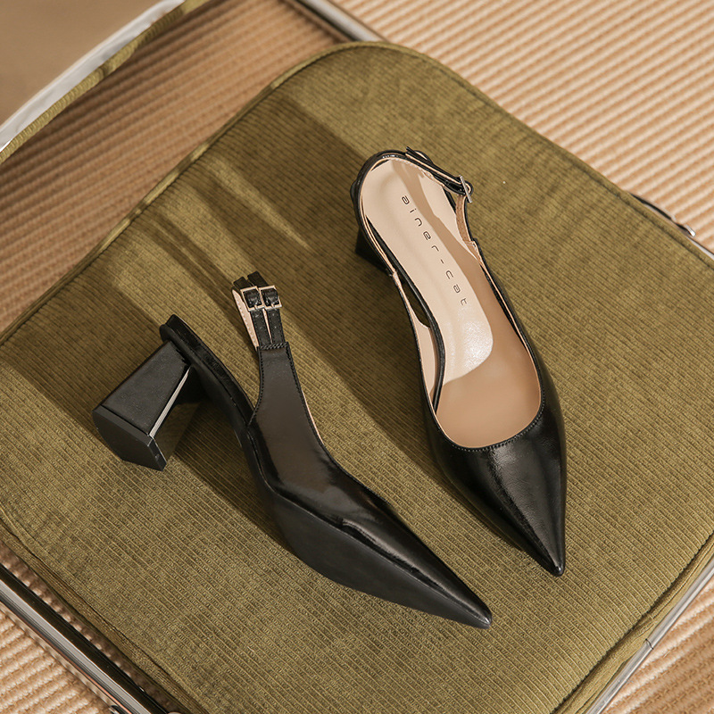 61208 [양가죽] 여성용 뾰족한 굽 하이힐 2025 여름 신작 원라인 토캡 샌들스토어 가기