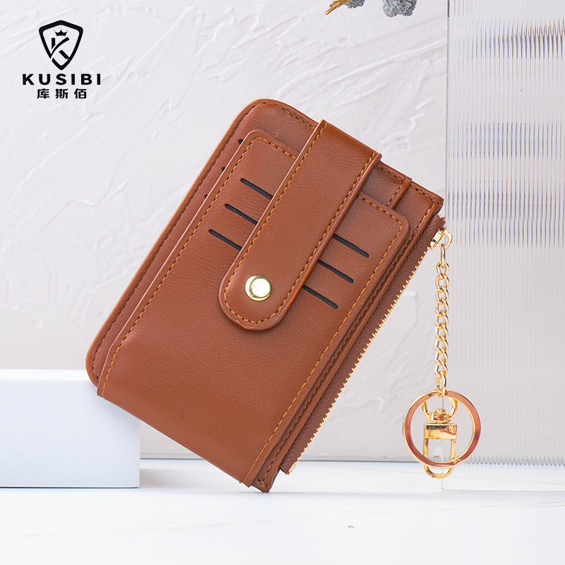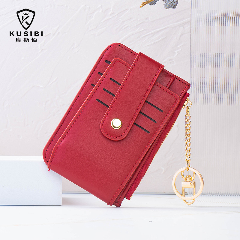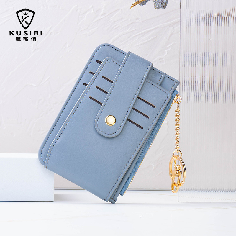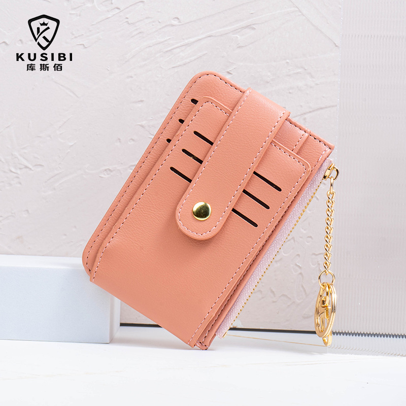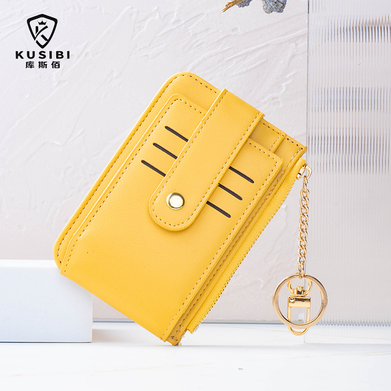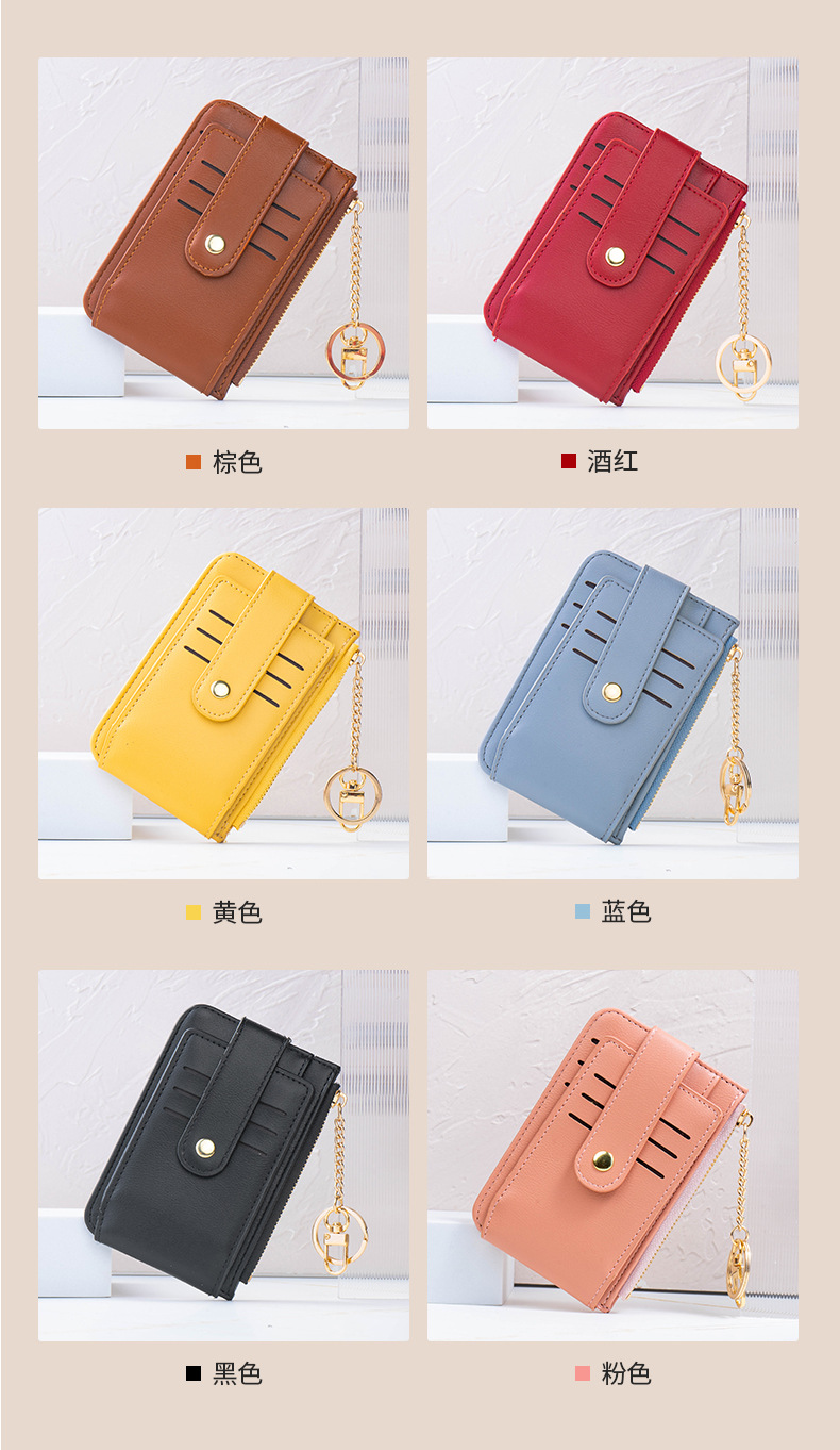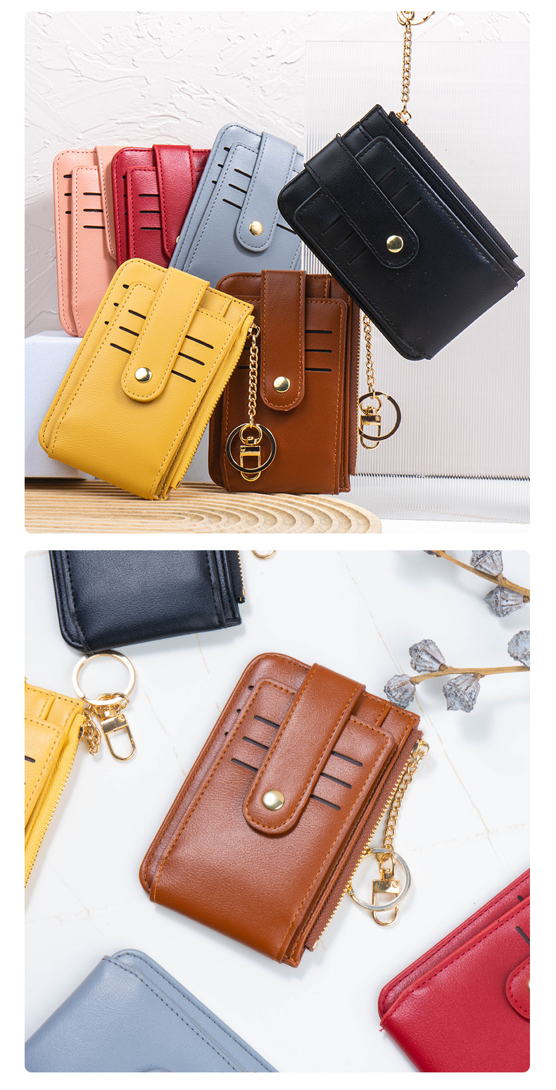 고급스러운 심플한 단색 학생용 다중 카드 슬롯 지퍼 카드 지갑 동전 지갑 여성용 짧은 지갑스토어 가기