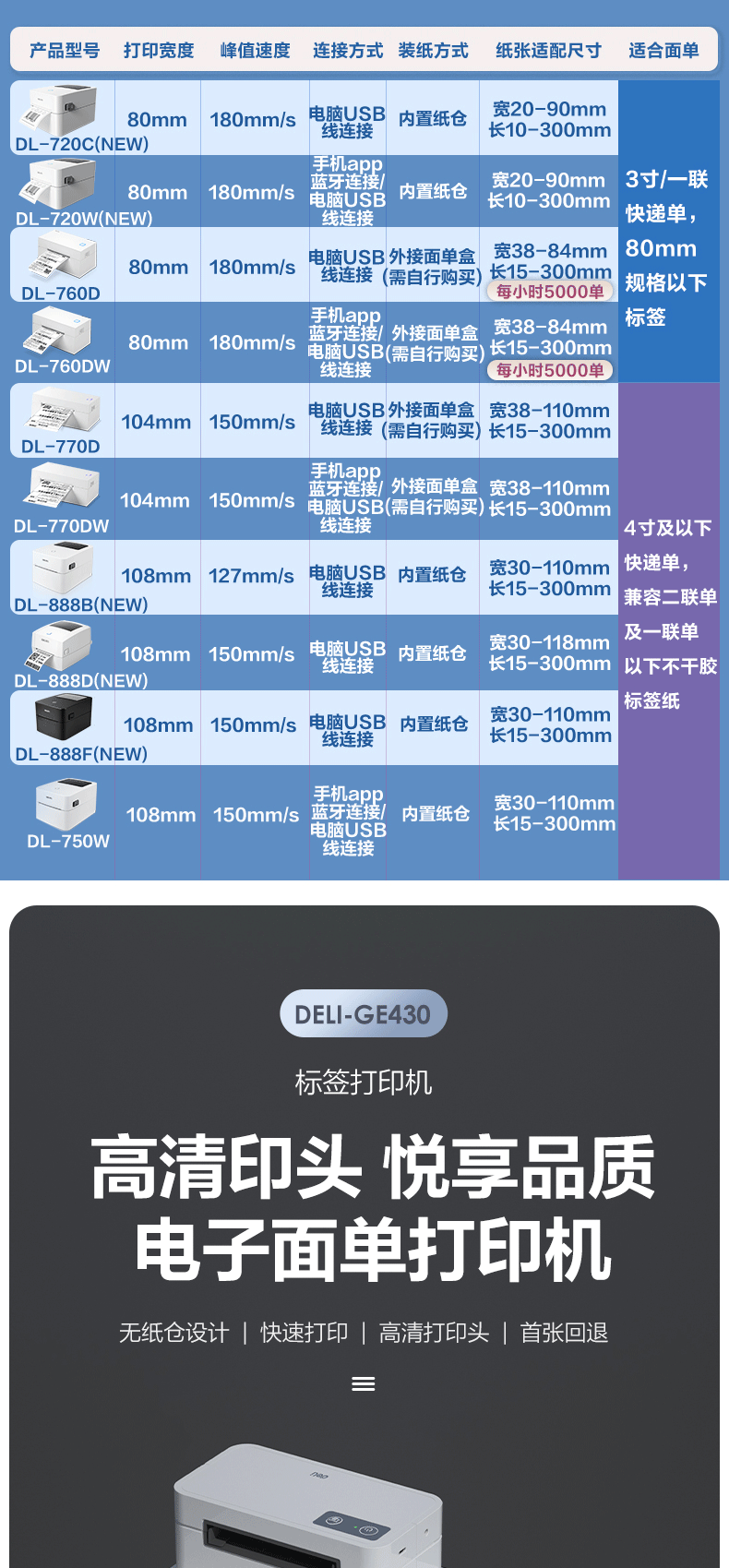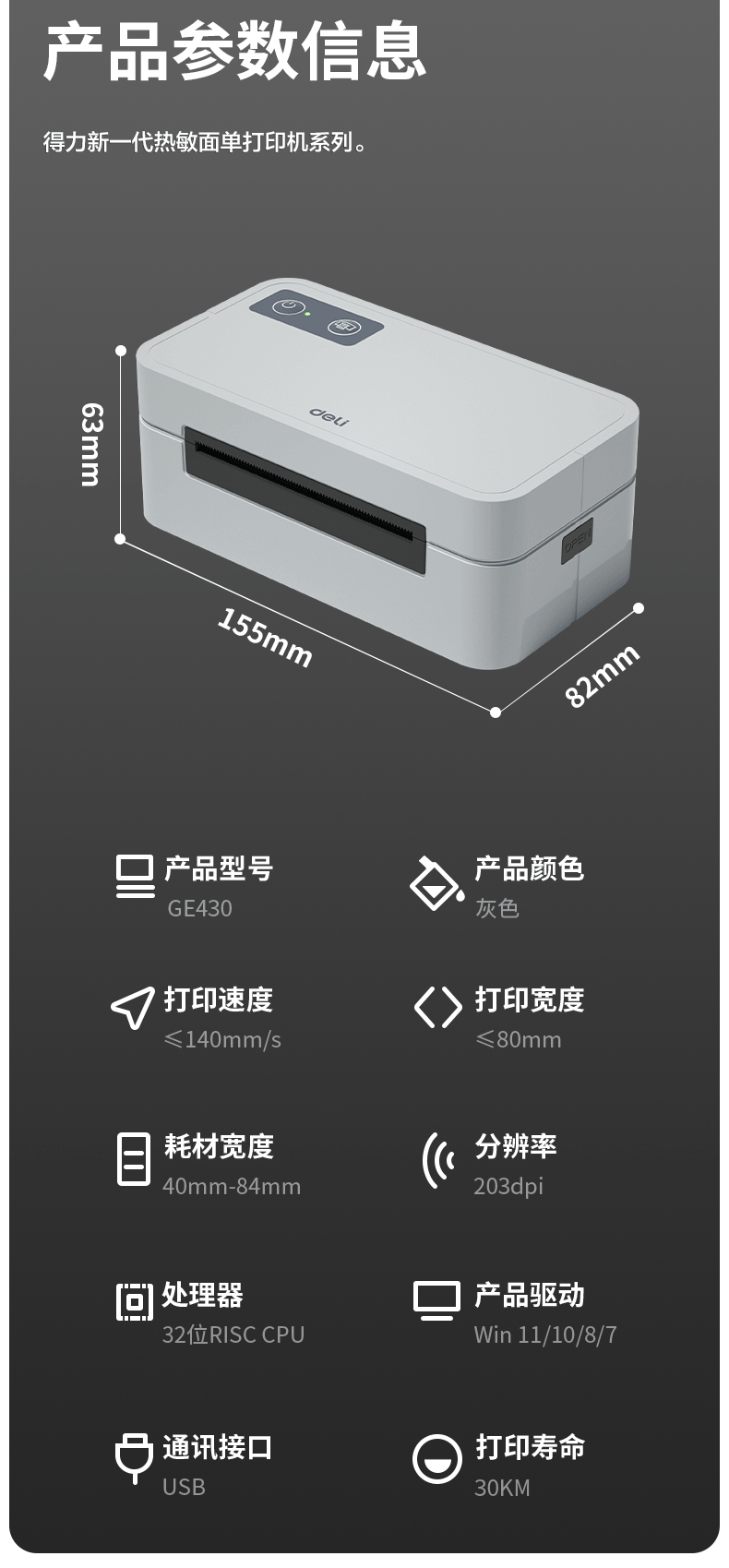 델리 GE430 익스프레스 단일 프린터 하나의 전자 얼굴 단일 열 라벨 바코드 스티커 단일 기계스토어 가기