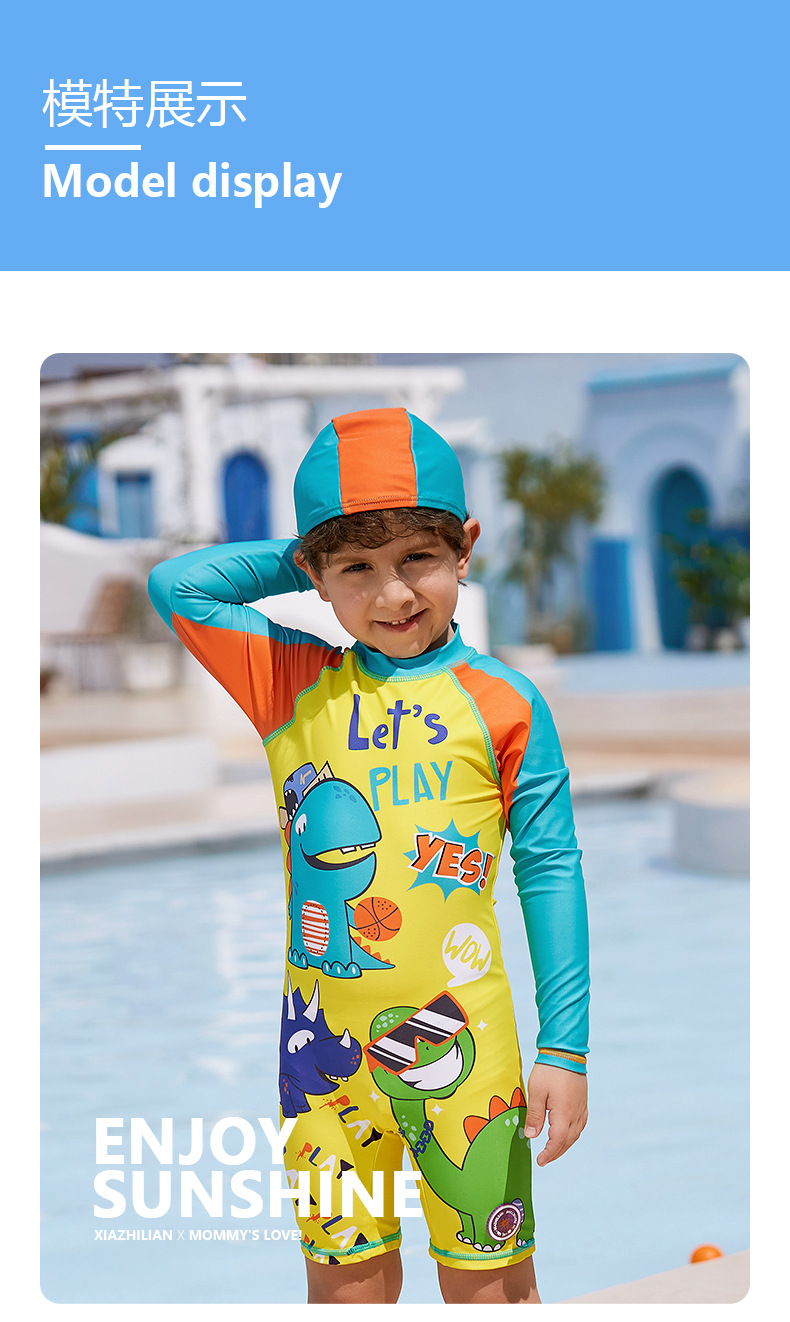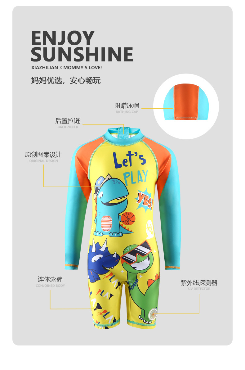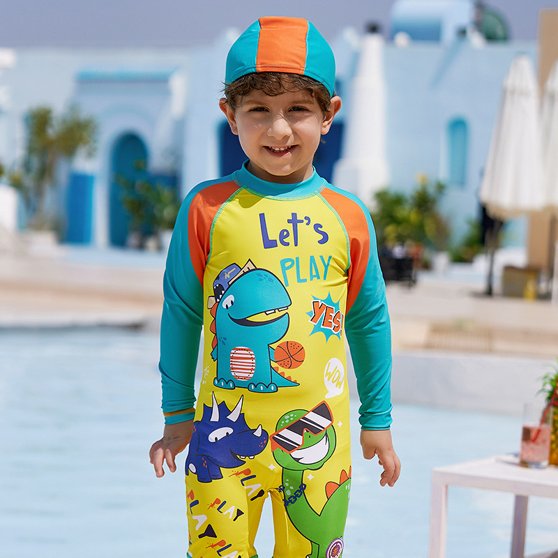 대외 무역 잘 생긴 어린이 수영복 자외선 차단제 긴팔 소년 공룡 원피스 수영복 중소 어린이 아기 서핑 의류 유행스토어 가기