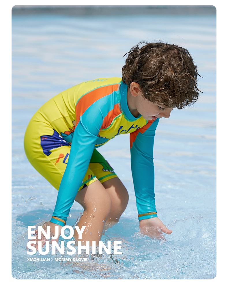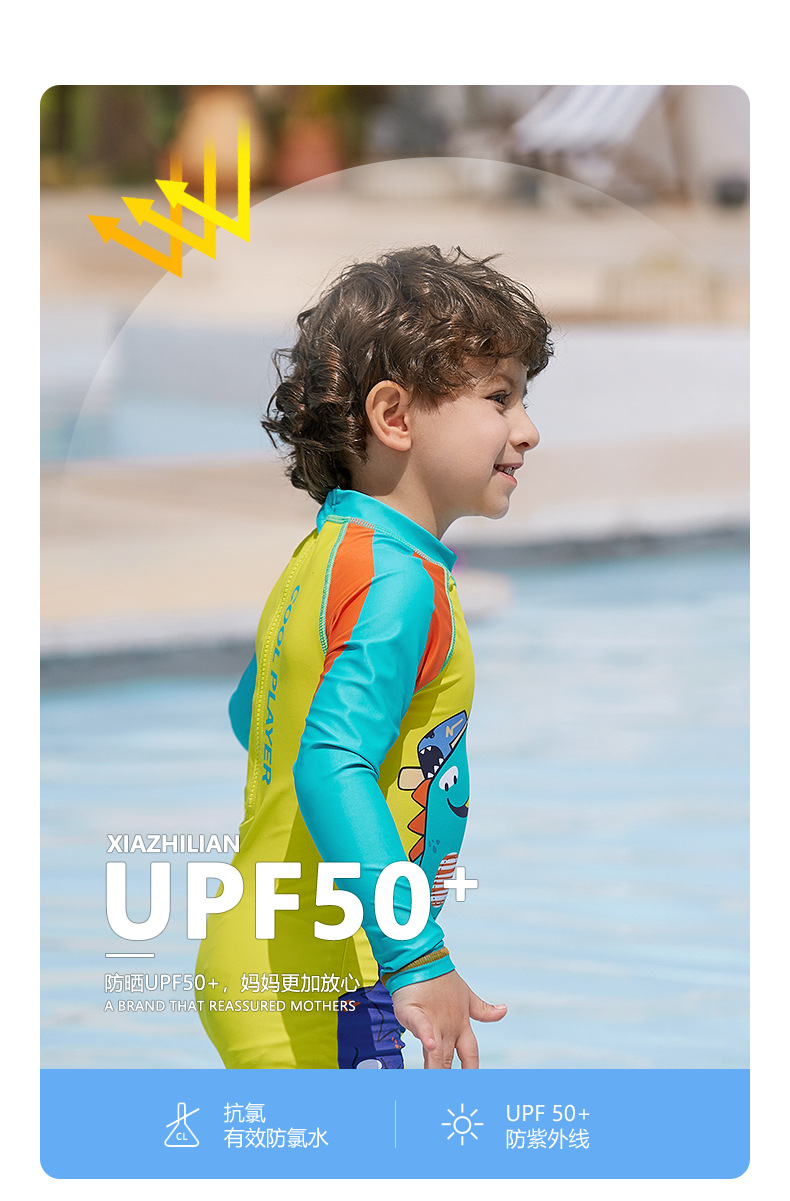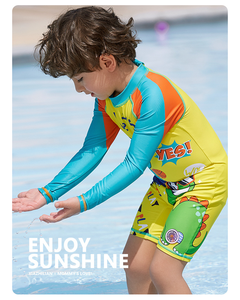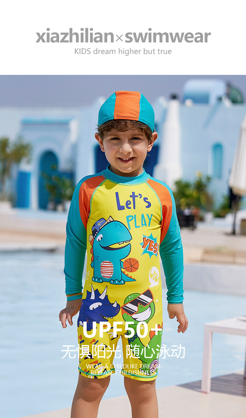 대외 무역 잘 생긴 어린이 수영복 자외선 차단제 긴팔 소년 공룡 원피스 수영복 중소 어린이 아기 서핑 의류 유행스토어 가기