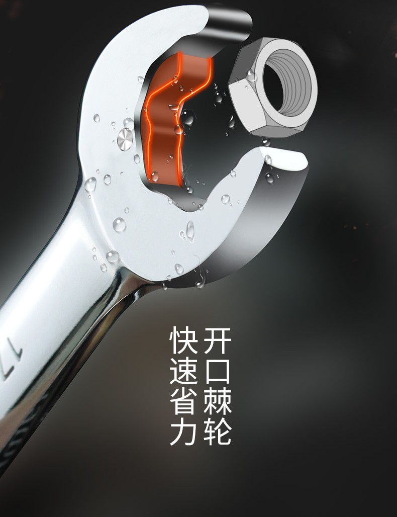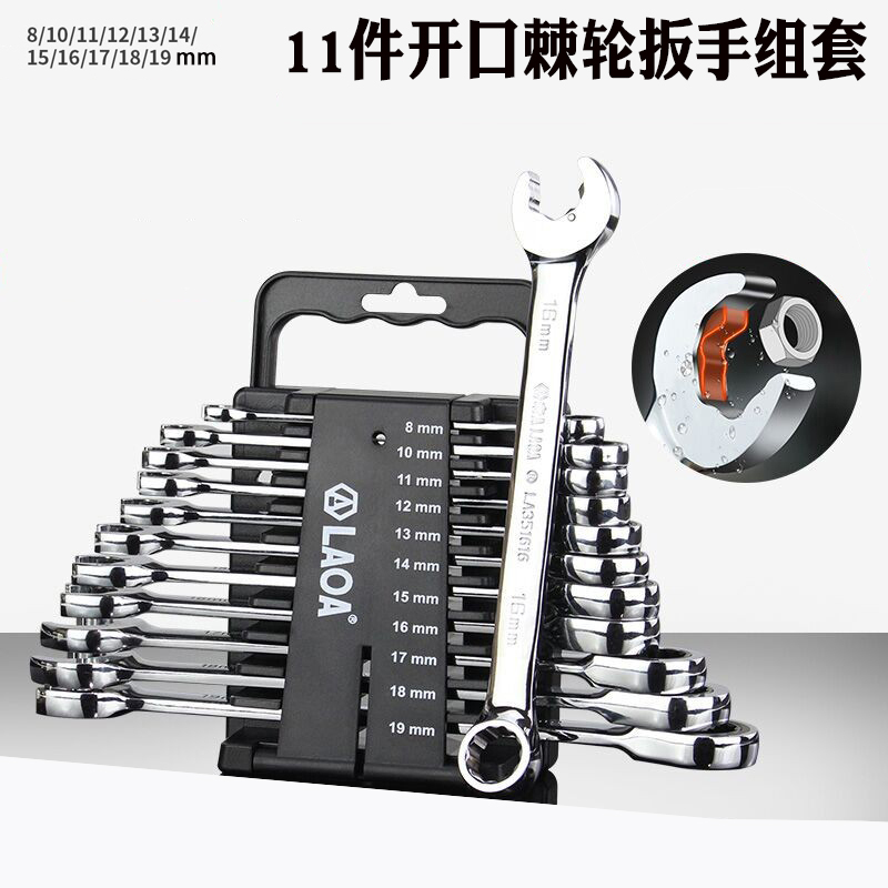 오래된 11-in -1 퀵 래칫 렌치 세트 오픈 래칫 다기능 양방향 래칫 이중 목적 렌치