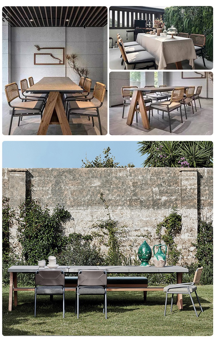 야외 발코니 등나무 테이블과 의자 정원 안뜰 야외 레스토랑 식탁 및 의자 호텔 빌라 레저 가구 조합